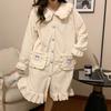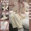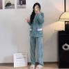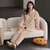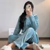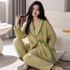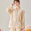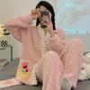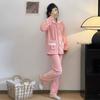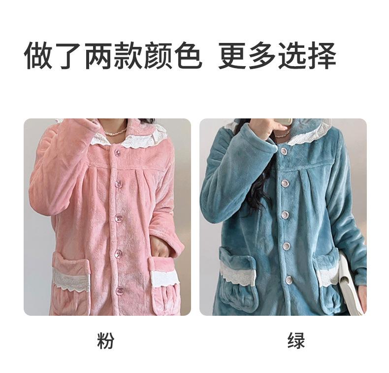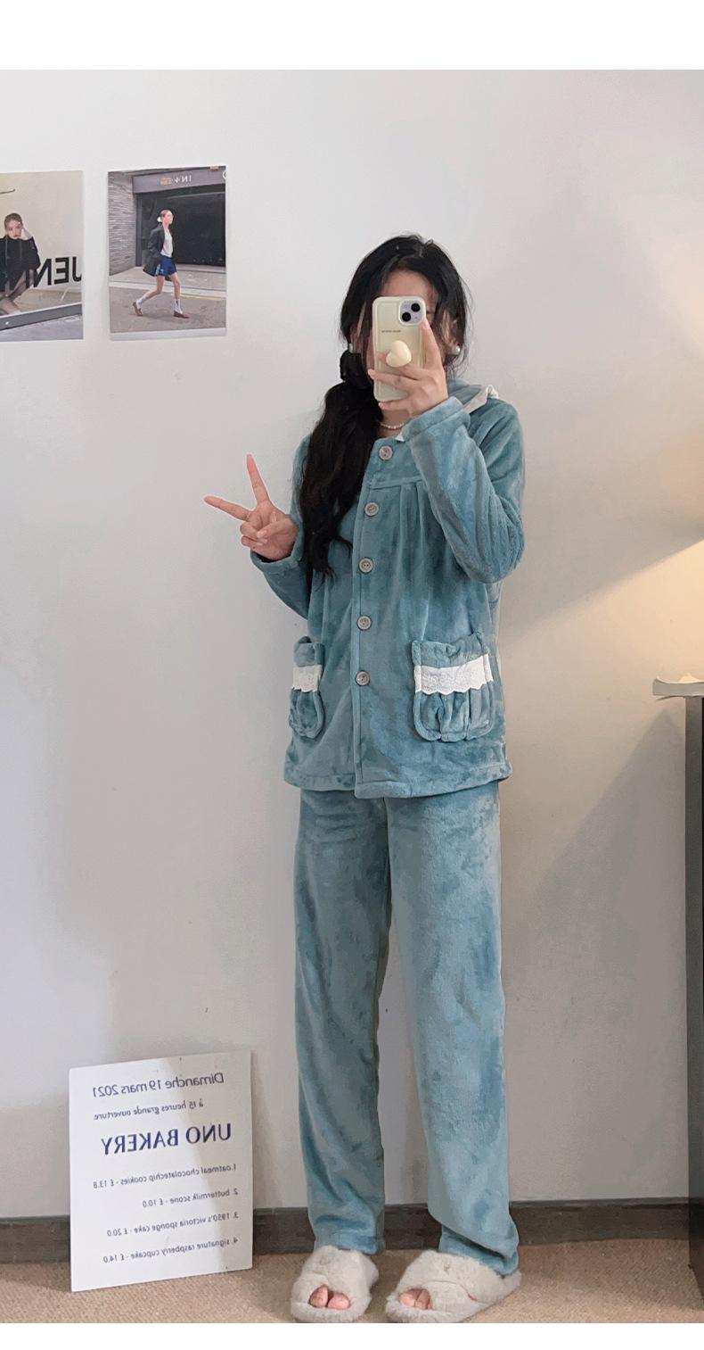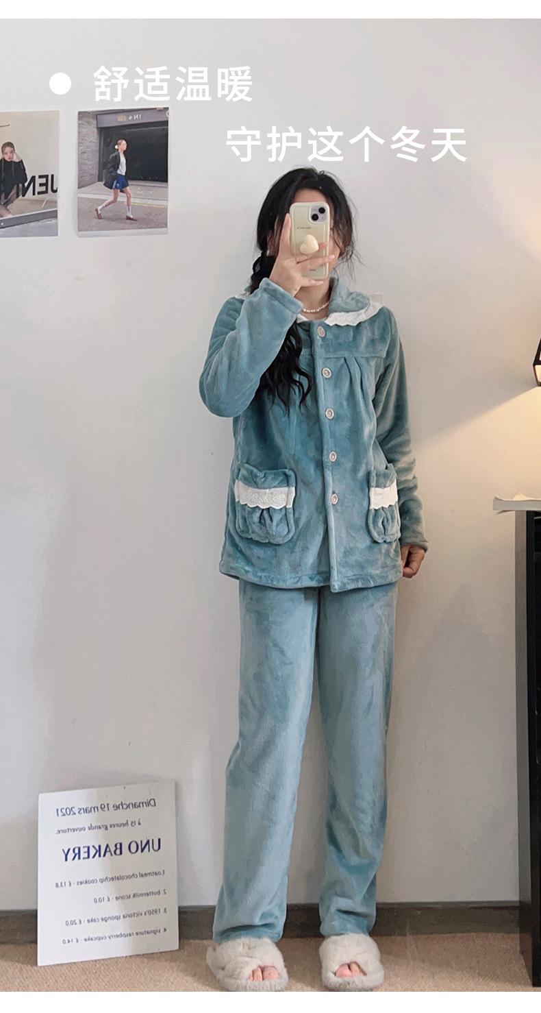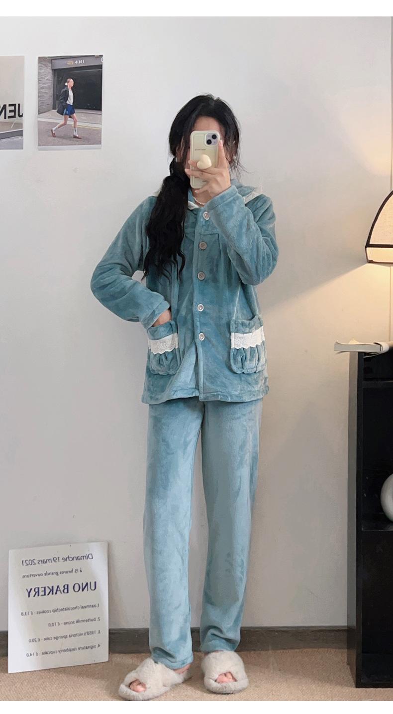 Pijamas de Terciopelo Coral para Mujer Invierno Nuevo Encaje Dulce Solapa Cárdigan Conjunto Franela Espesado Cálido Ropa para el Hogar