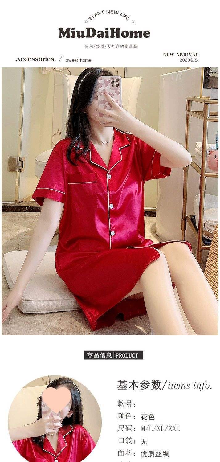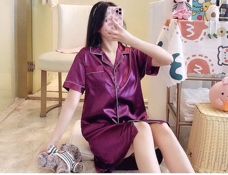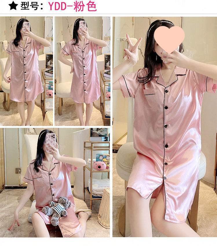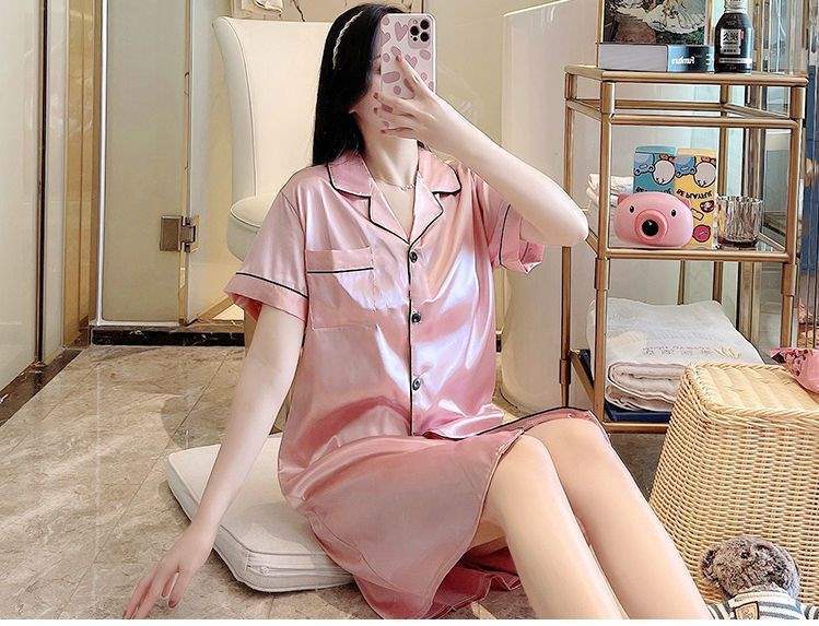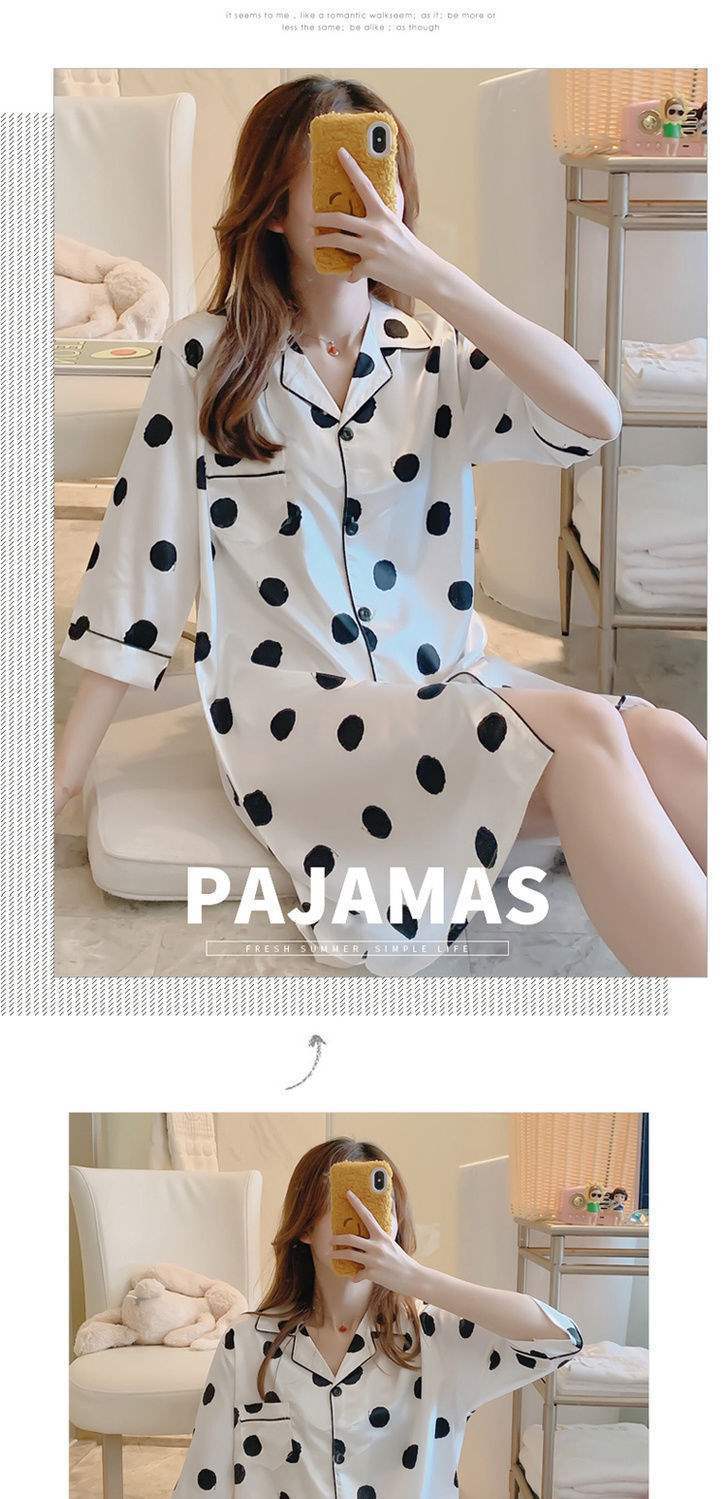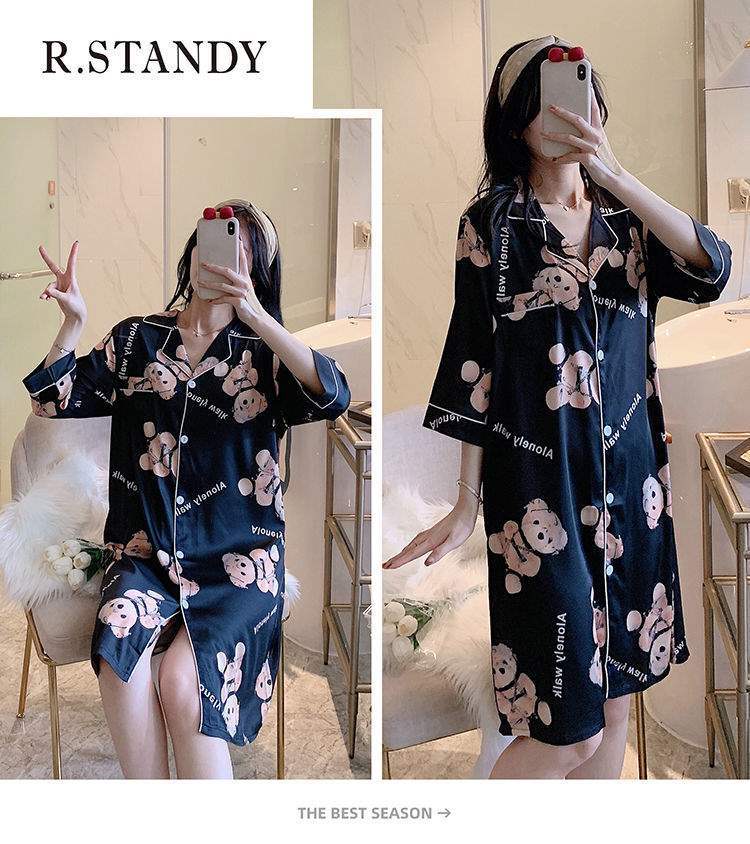 Camisón de Verano de Seda de Hielo para Mujer Cárdigan Fino de Lujo Verano Casual Holgado Pijama de Estudiante Ropa de Casa Estilo Largo