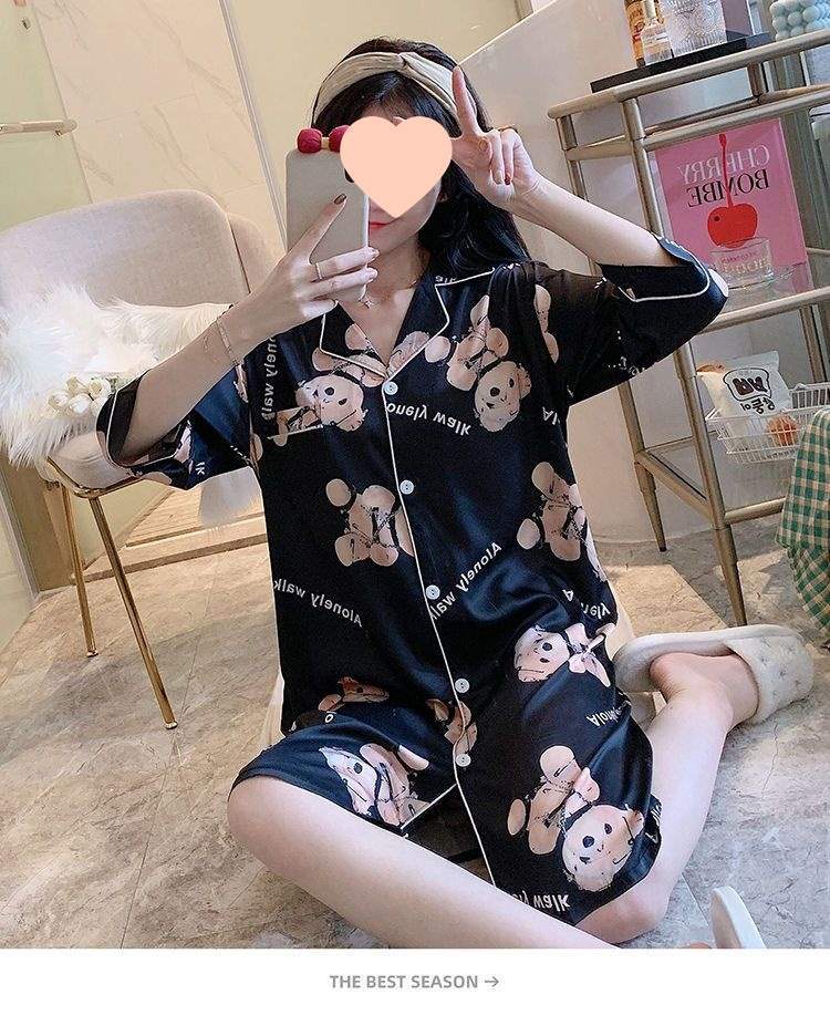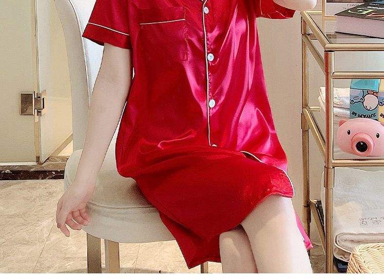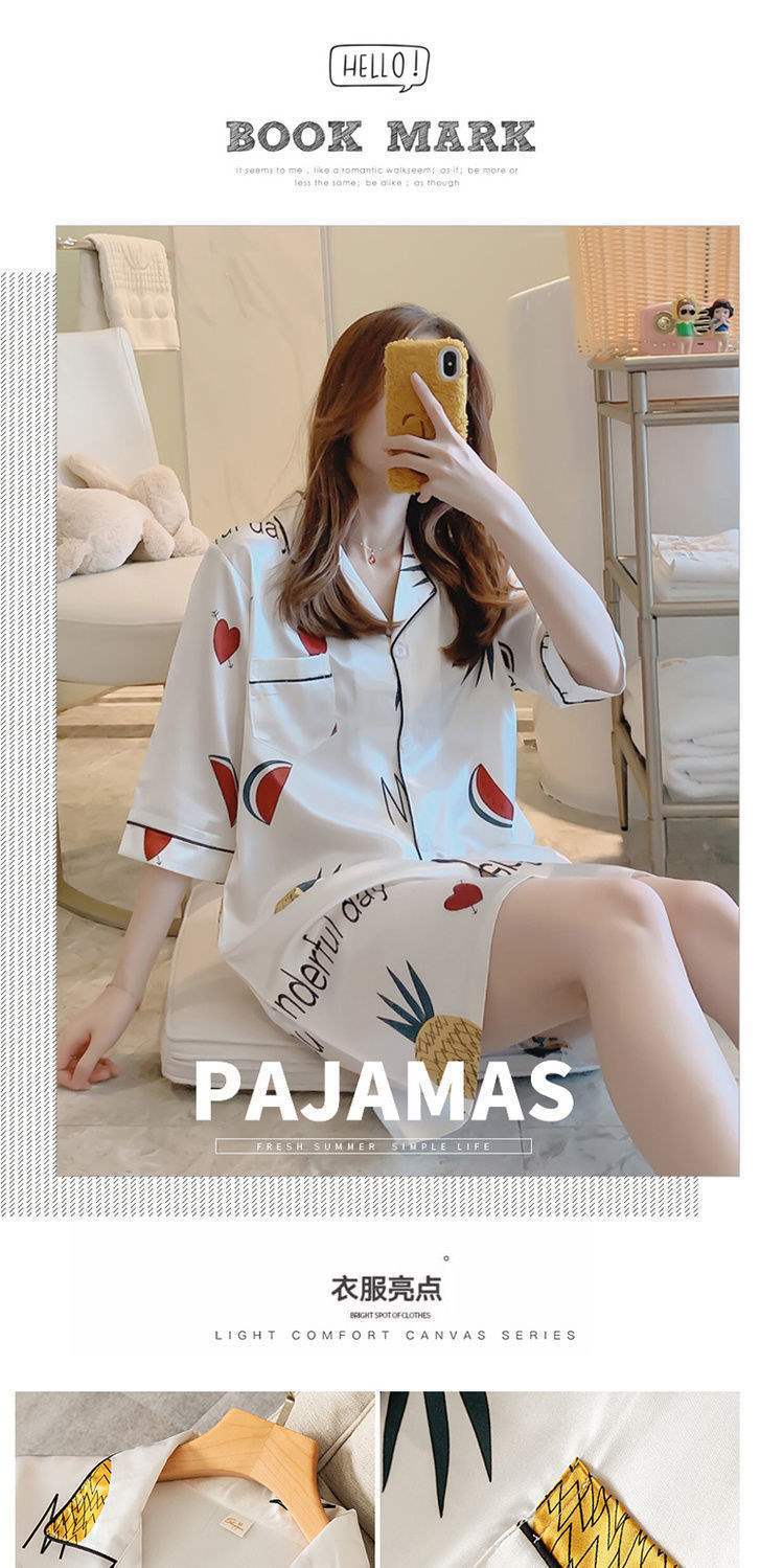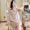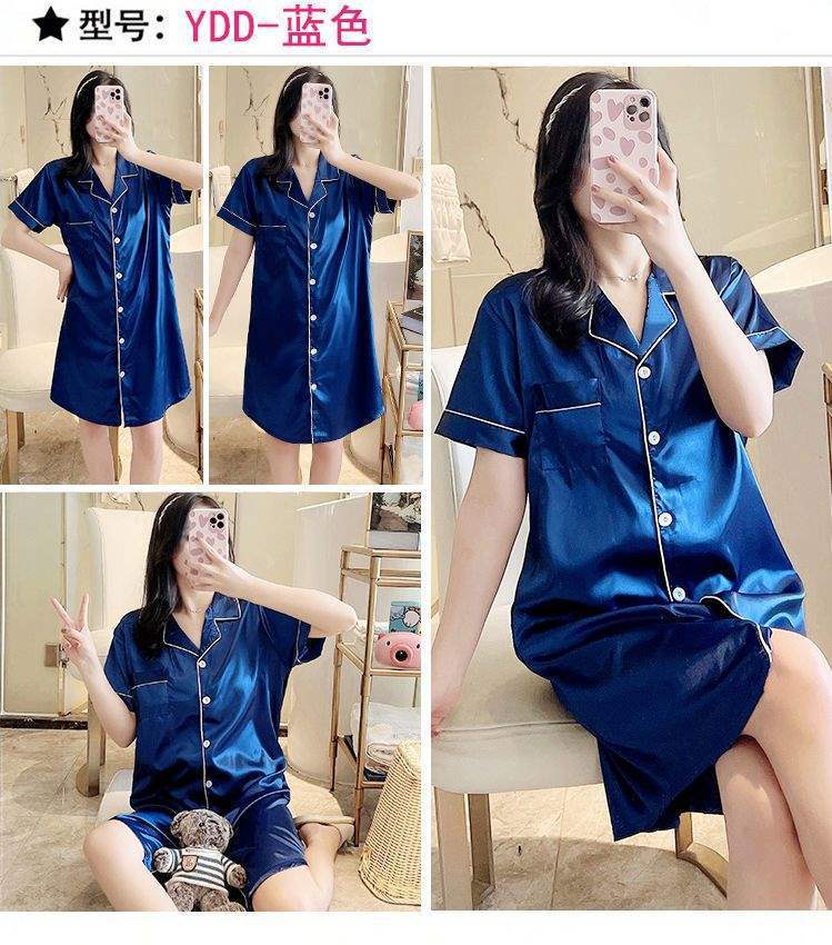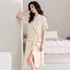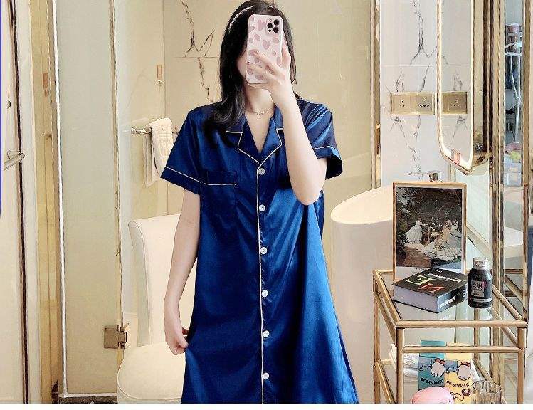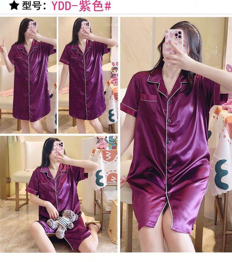 Camisón de Verano de Seda de Hielo para Mujer Cárdigan Fino de Lujo Verano Casual Holgado Pijama de Estudiante Ropa de Casa Estilo Largo