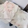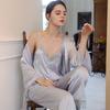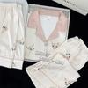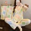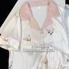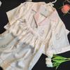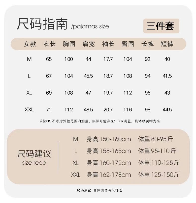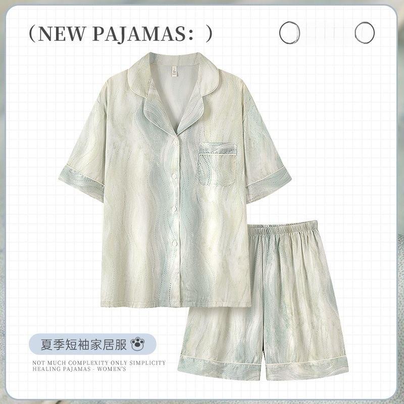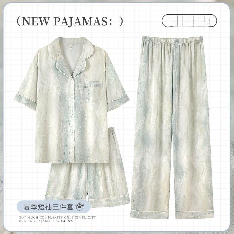 Pijama de Verano de Tres Piezas de Seda de Hielo Fresca para Mujer Primavera y Otoño Manga Corta Delgada Dulce y Lindo Set de Ropa para el Hogar de Mujer