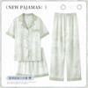 Three-piece set-streaming green short-sleeved shorts and trousers, Short-sleeved shorts-streaming green, Long-...