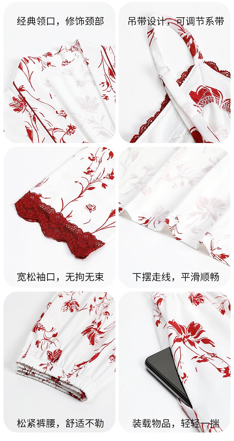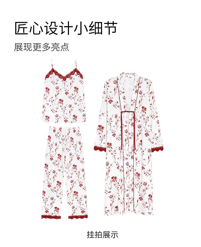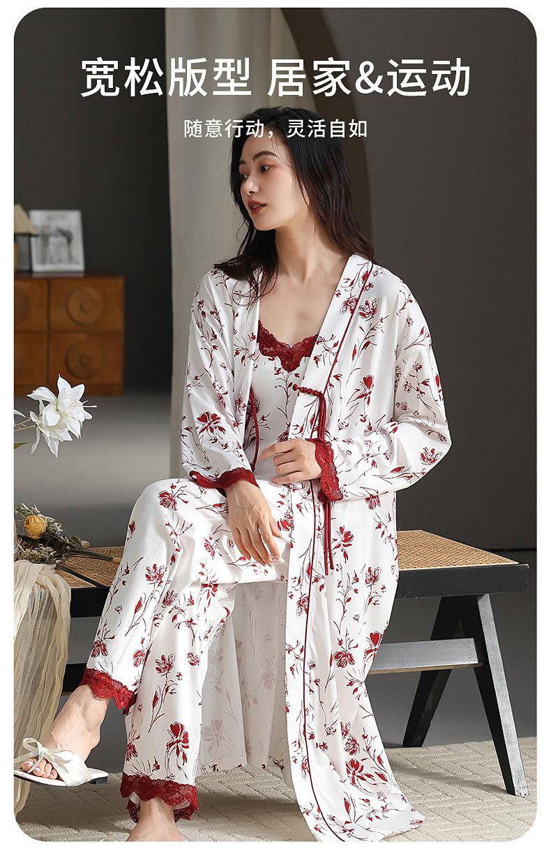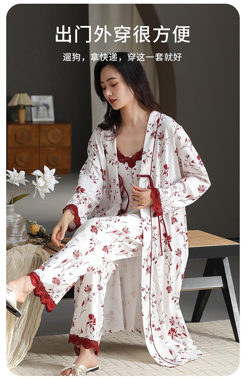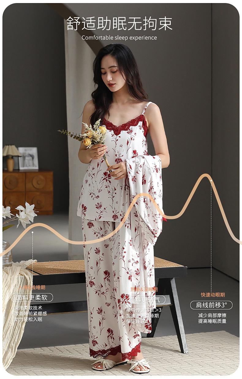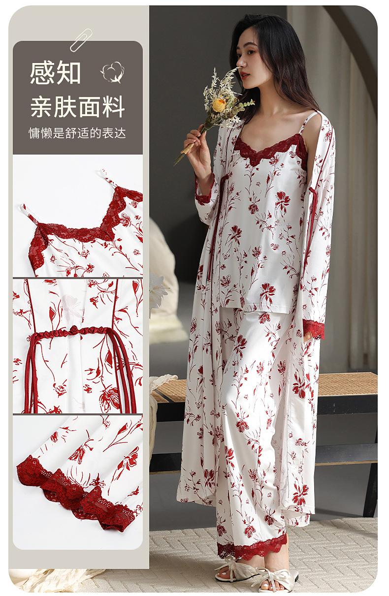7A Pijama Antibacterial Rojo para Mujer Primavera y Otoño Algodón Tencel 2025 Tirantes Camisón Sexy Puro Lujuria Ropa para el Hogar Conjunto de Tres Piezas