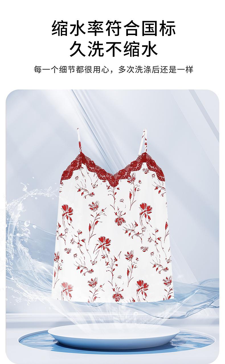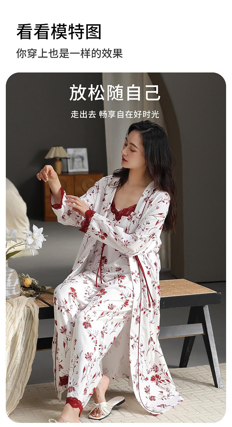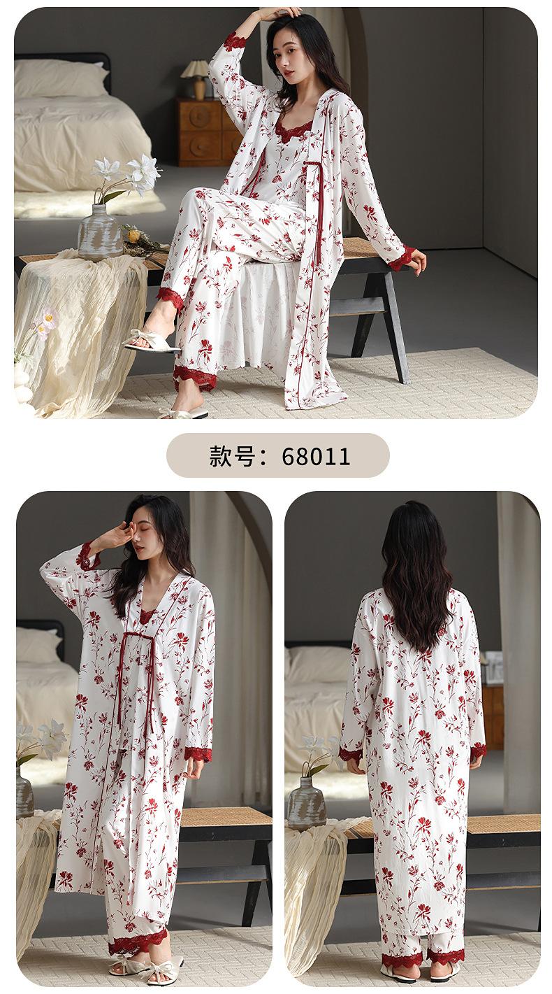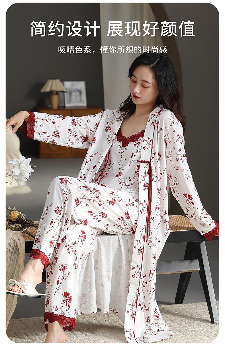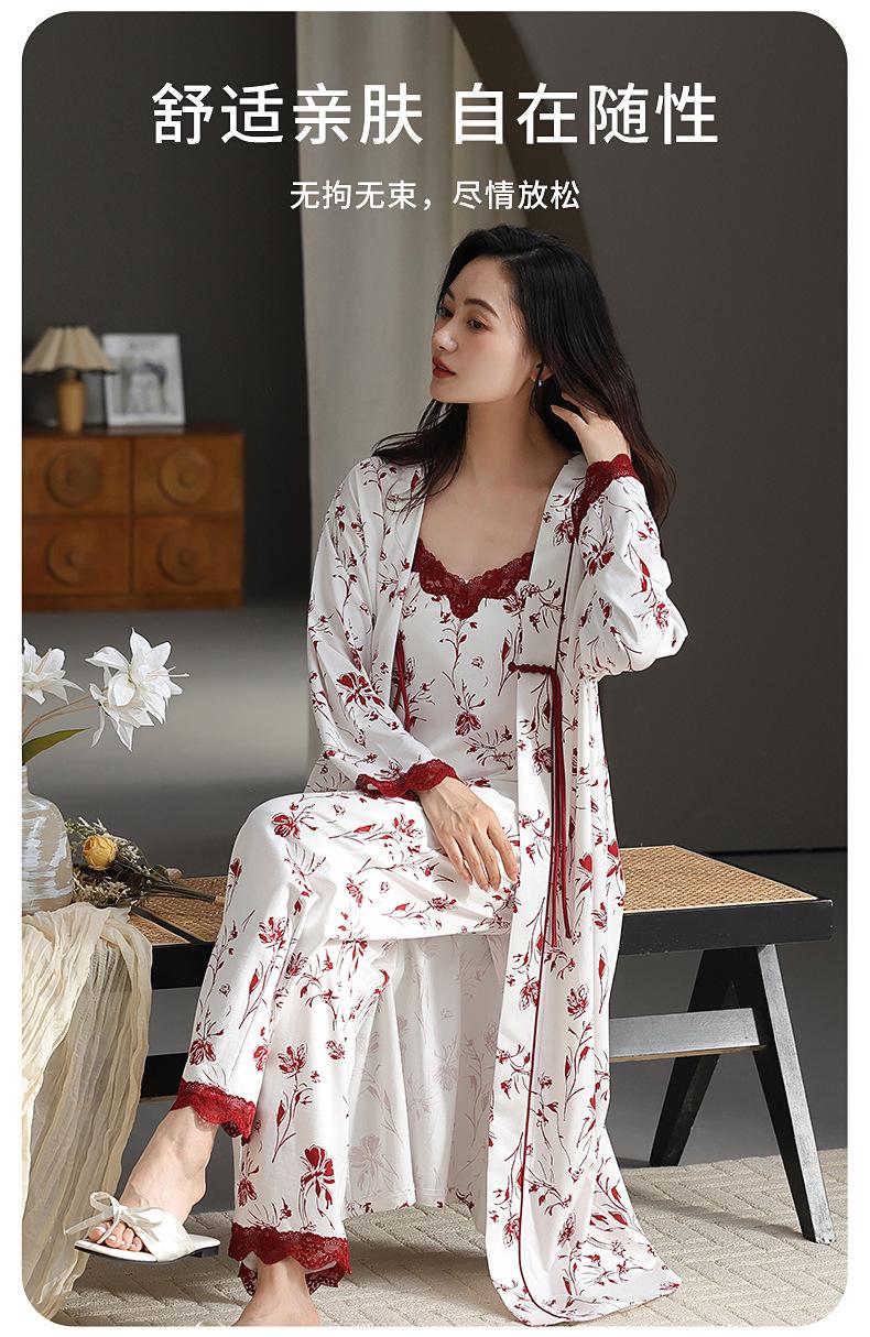 7A Pijama Antibacterial Rojo para Mujer Primavera y Otoño Algodón Tencel 2025 Tirantes Camisón Sexy Puro Lujuria Ropa para el Hogar Conjunto de Tres Piezas