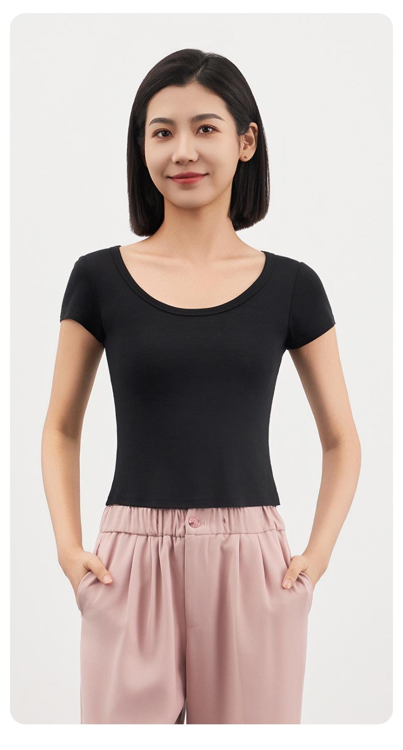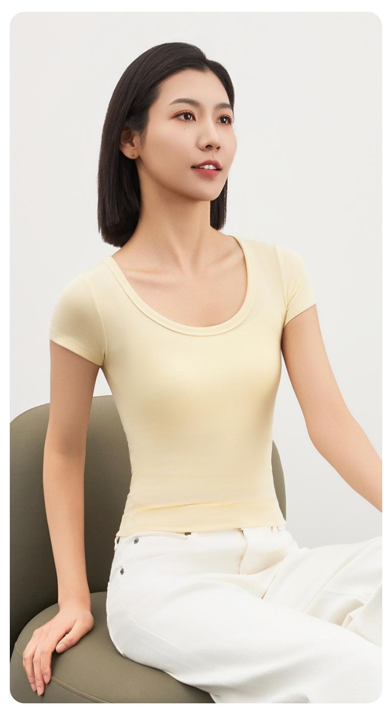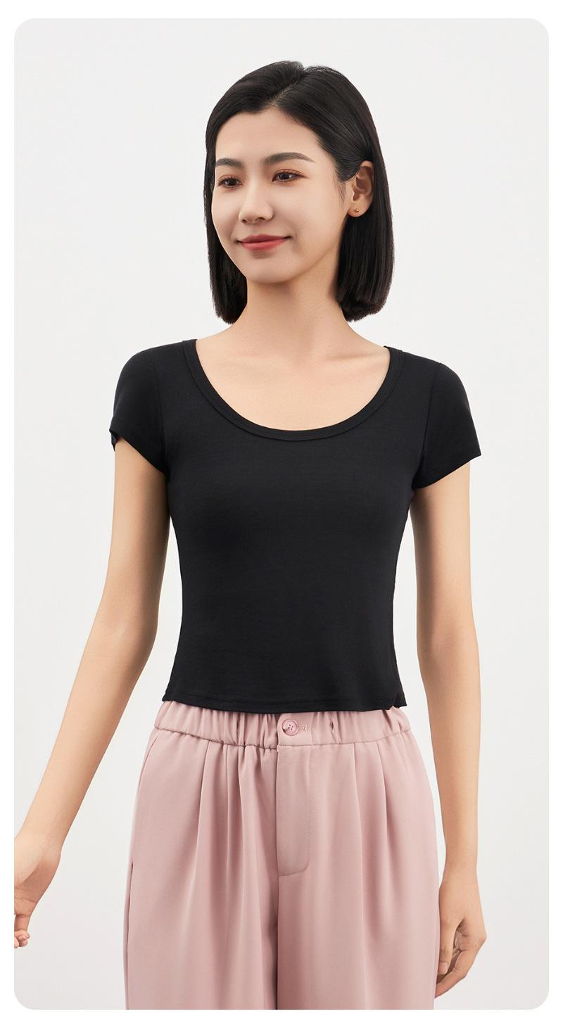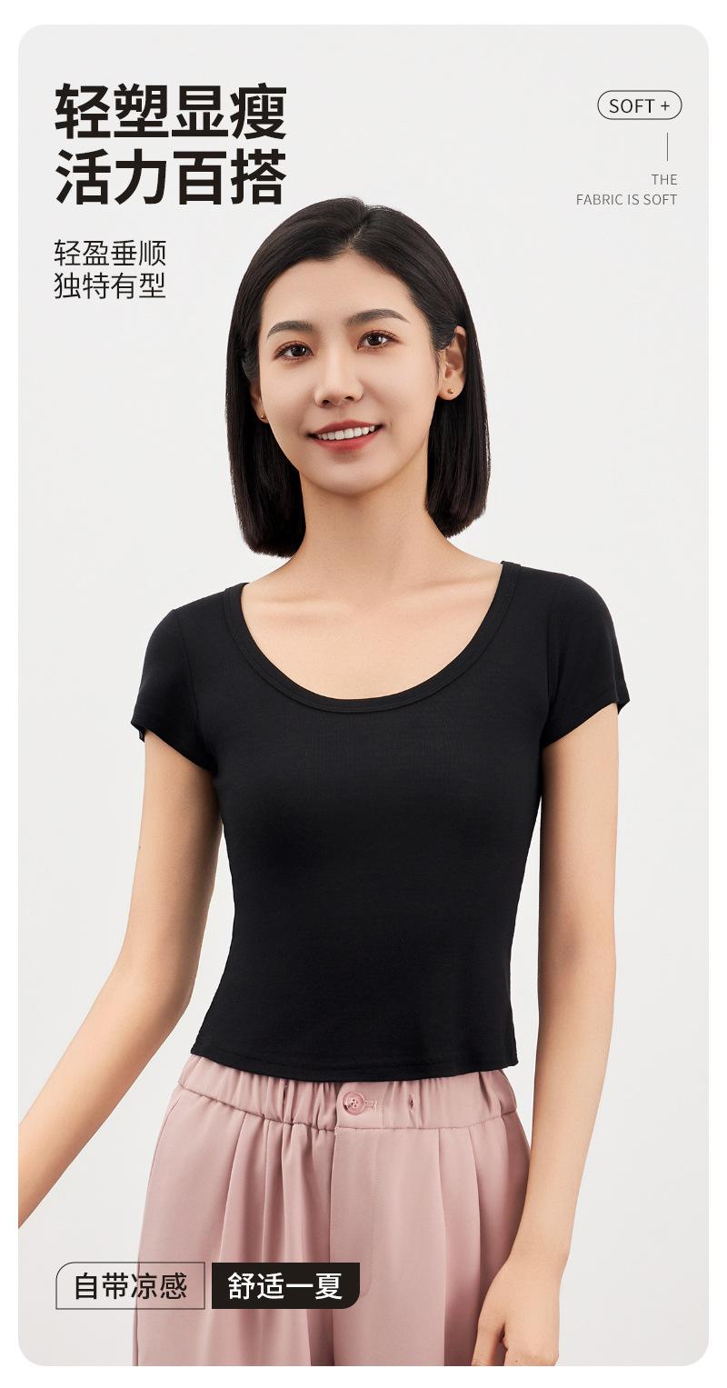 Camiseta de Mujer Primavera y Verano Nuevo Estilo Lenzing Modal Fresca Antibacteriana Desodorante Ropa Interior Ajustada Manga Corta