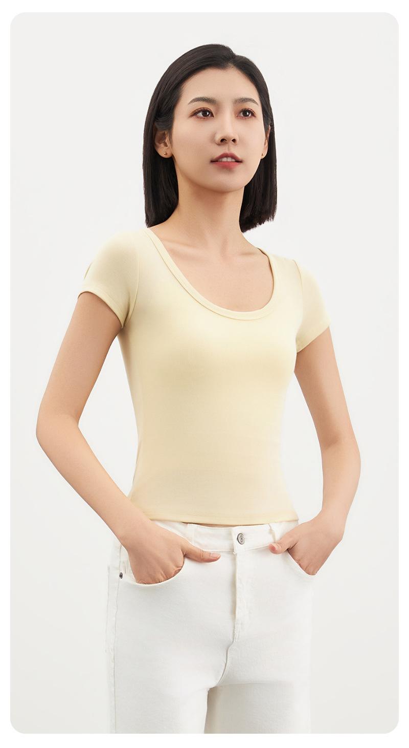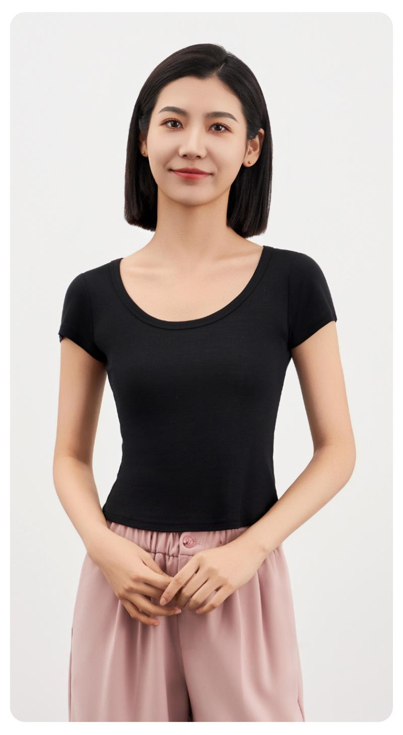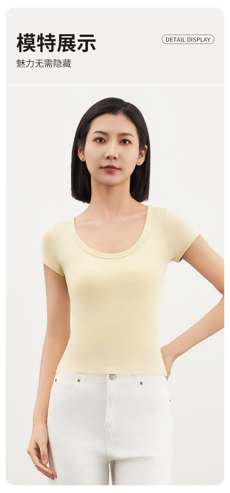 Camiseta de Mujer Primavera y Verano Nuevo Estilo Lenzing Modal Fresca Antibacteriana Desodorante Ropa Interior Ajustada Manga Corta
