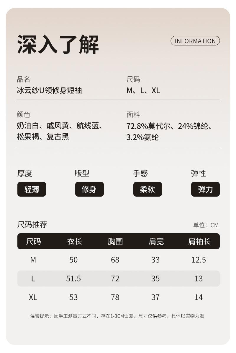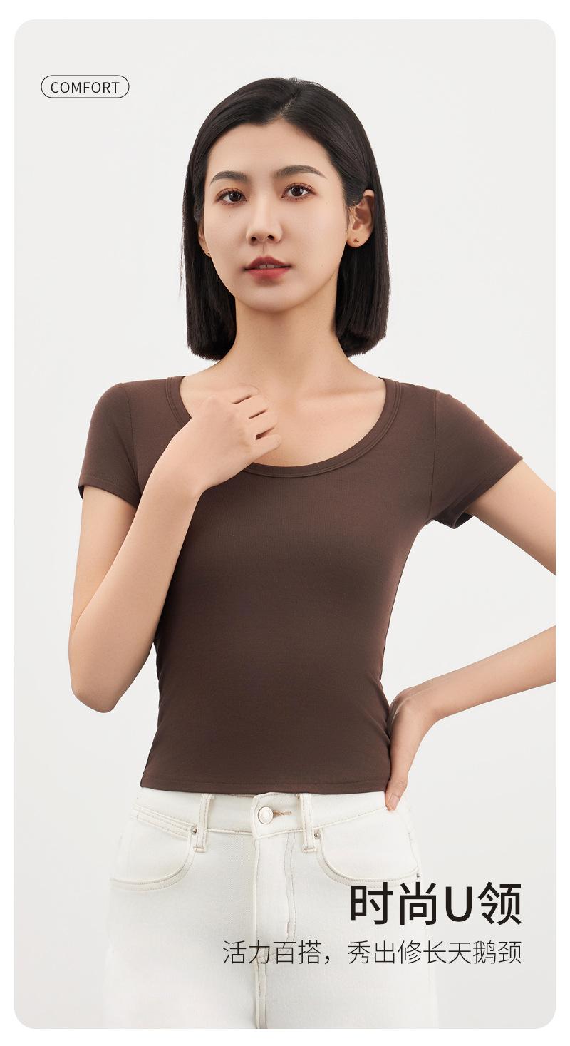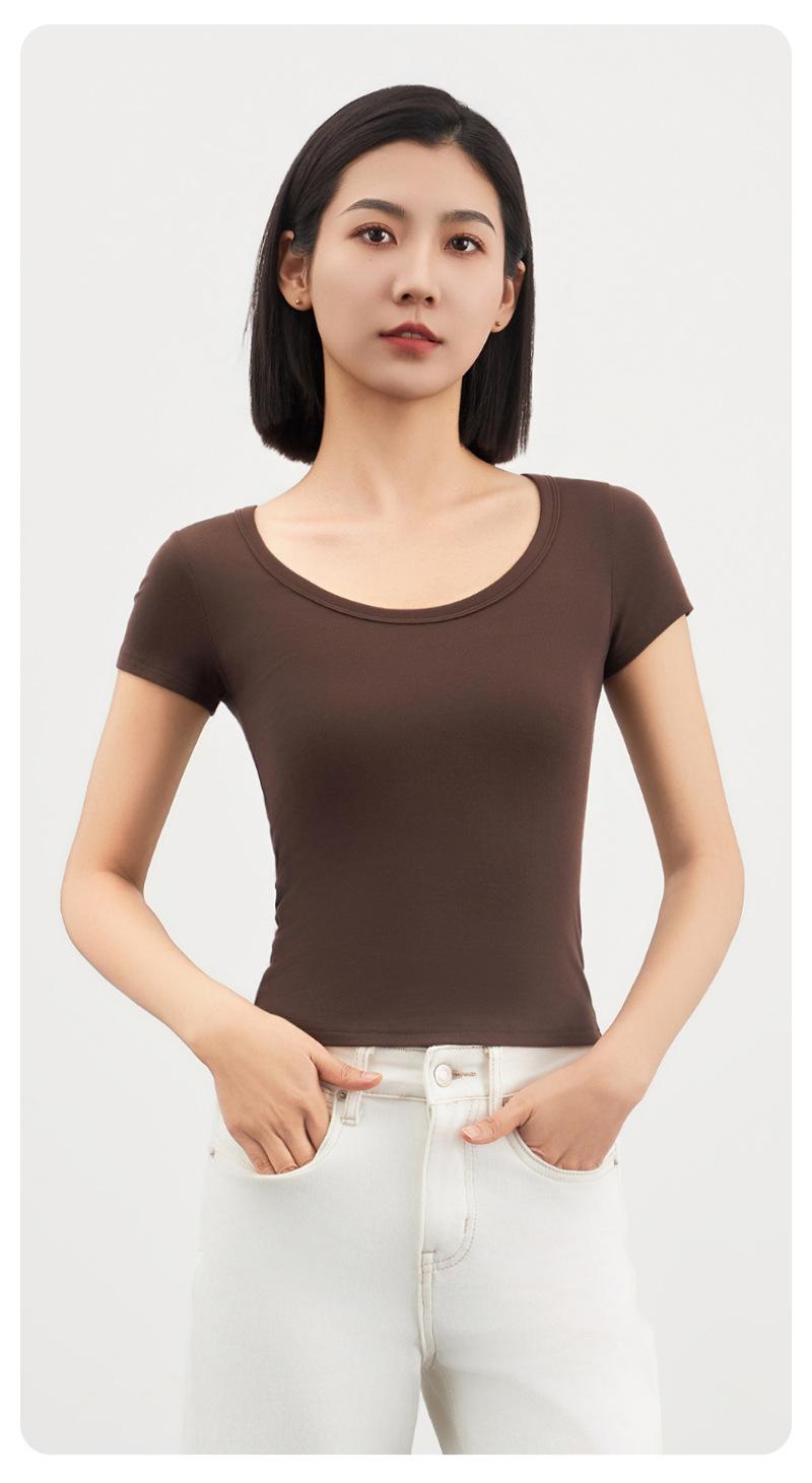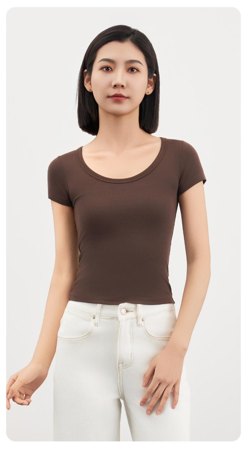 Camiseta de Mujer Primavera y Verano Nuevo Estilo Lenzing Modal Fresca Antibacteriana Desodorante Ropa Interior Ajustada Manga Corta