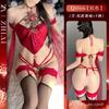 Red bellyband [bellyband + underwear], Red cheongsam [cheongsam + t pants], Red bellyband + red lace black soc...