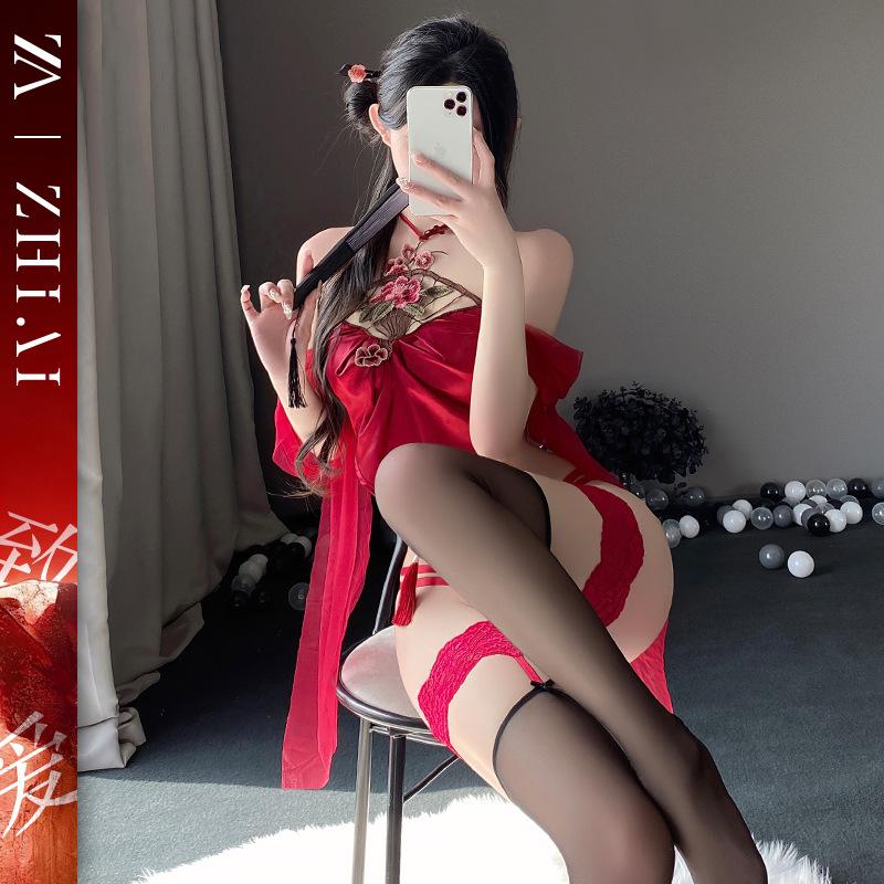 Lencería Sexy, Uniforme Sexy, Faja Roja Estilo Antiguo, Cheongsam Chino, Atuendo Transparente Tentador, Traje Apasionado Sin Quitar, Sexy