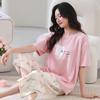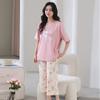 Pijama de Verano para Mujer Modal Manga Corta Pantalón Capri Talla Grande Traje Delgado Estilo Nuevo Ropa para Estar en Casa Dulce