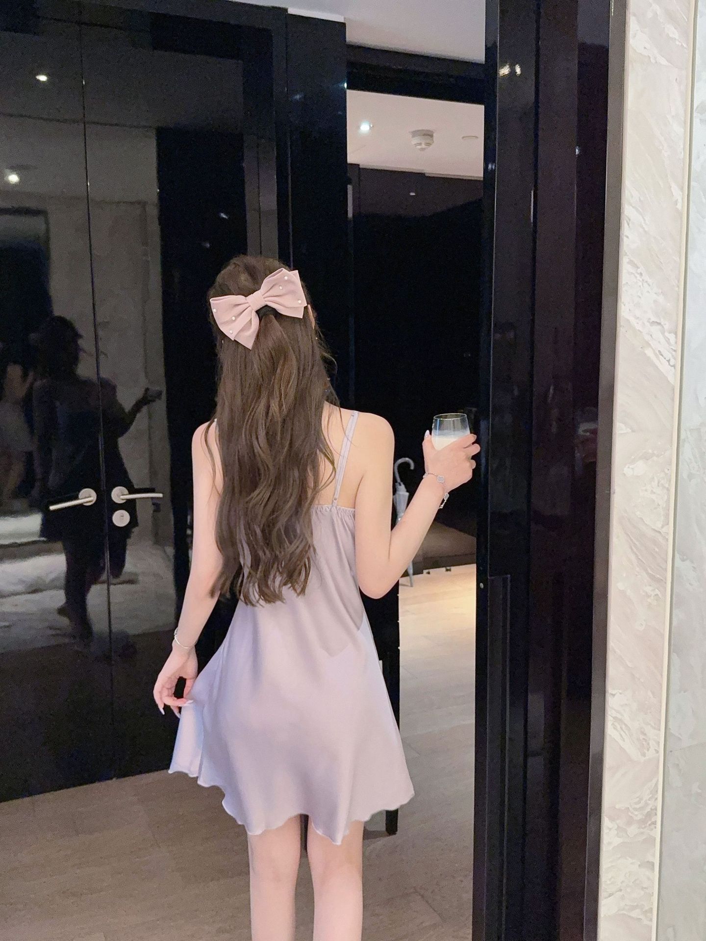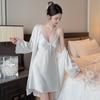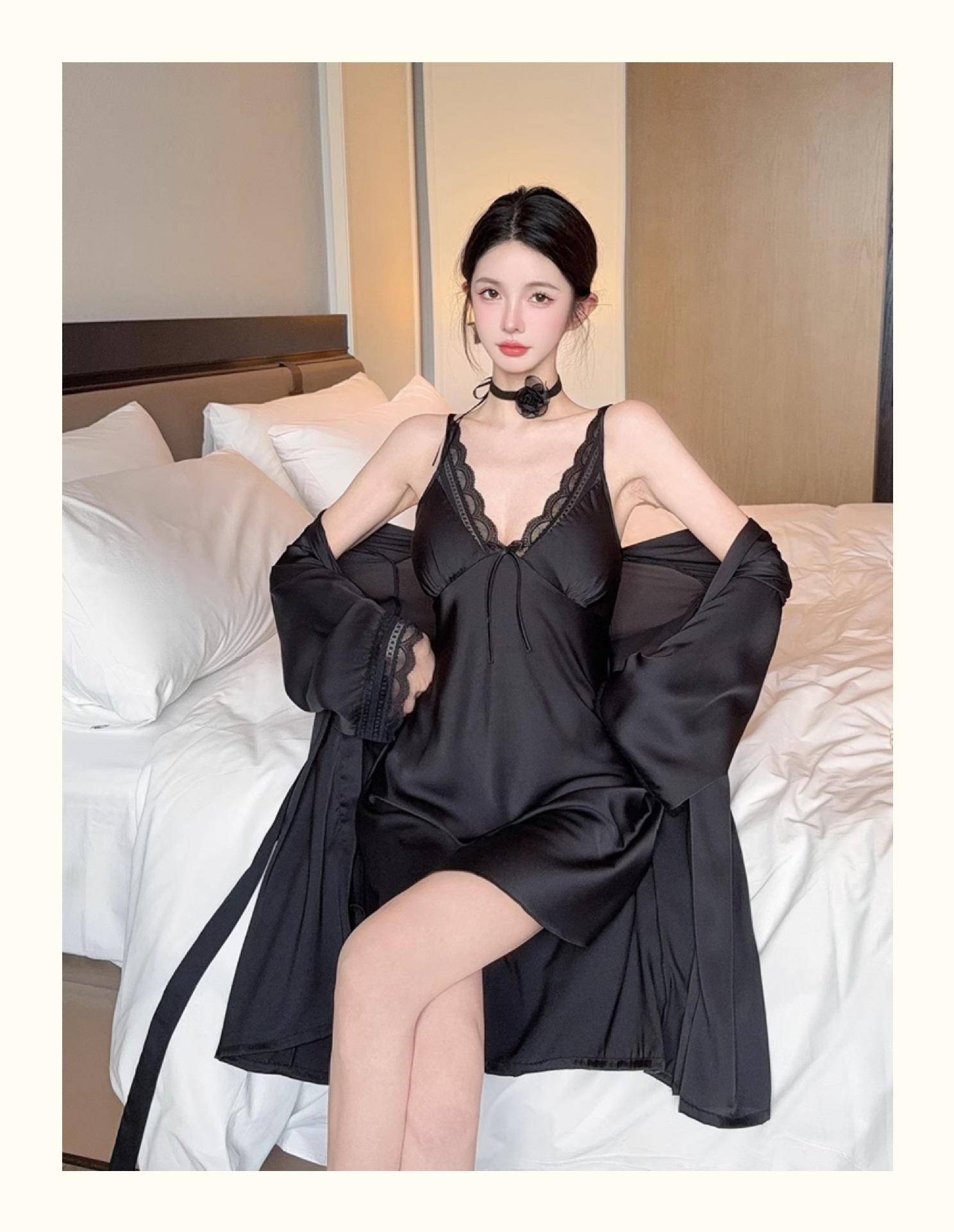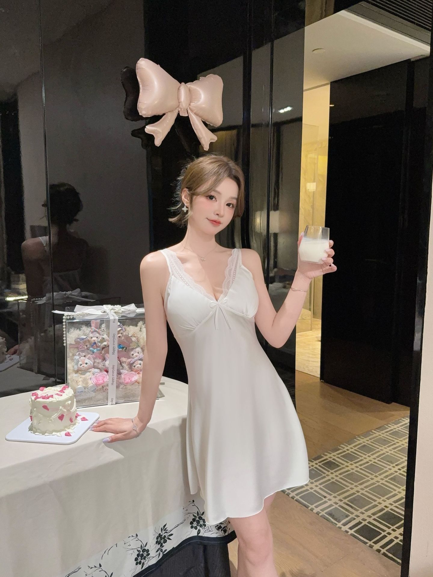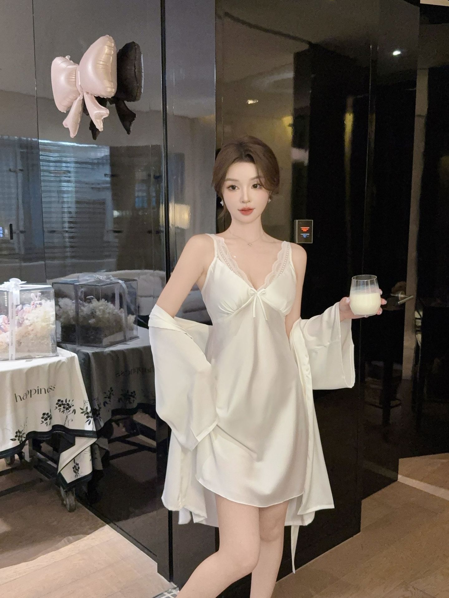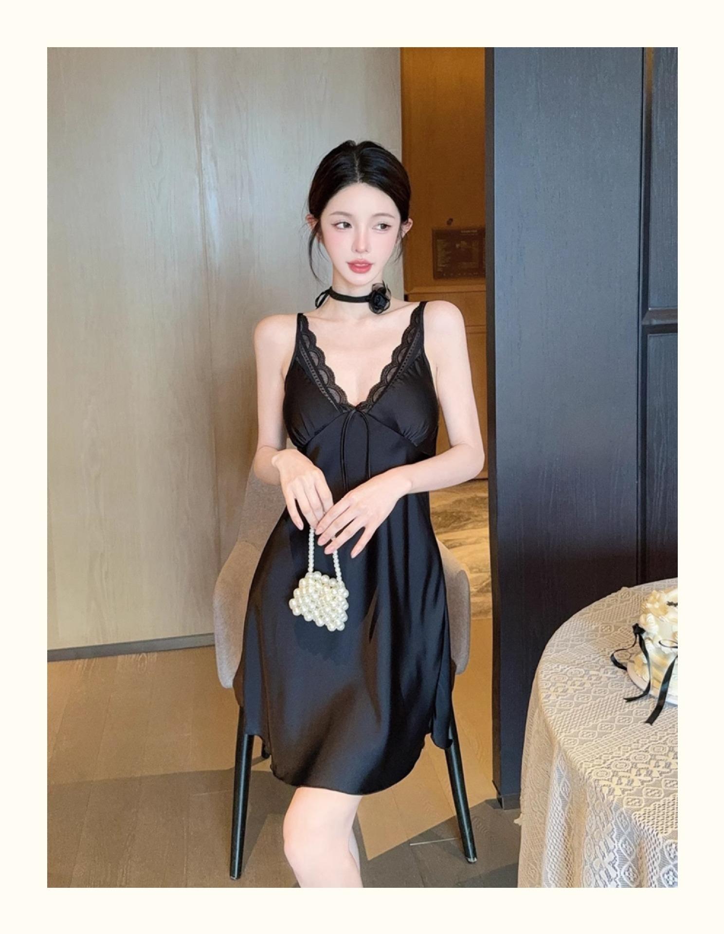 Pijamas Sexy para Mujer Verano Cinta de Hielo Almohadilla para el Busto 2025 Nuevo Encaje de Alta Gama Estilo Lujuria Pura Camisón con Tirantes Ropa para el Hogar
