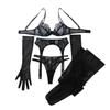 Conjunto de Cinco Piezas Dividido de Lencería Sexy Ajustada Transparente de Malla Bordada Floral de Alta Calidad para Exportación Europea y Americana