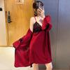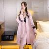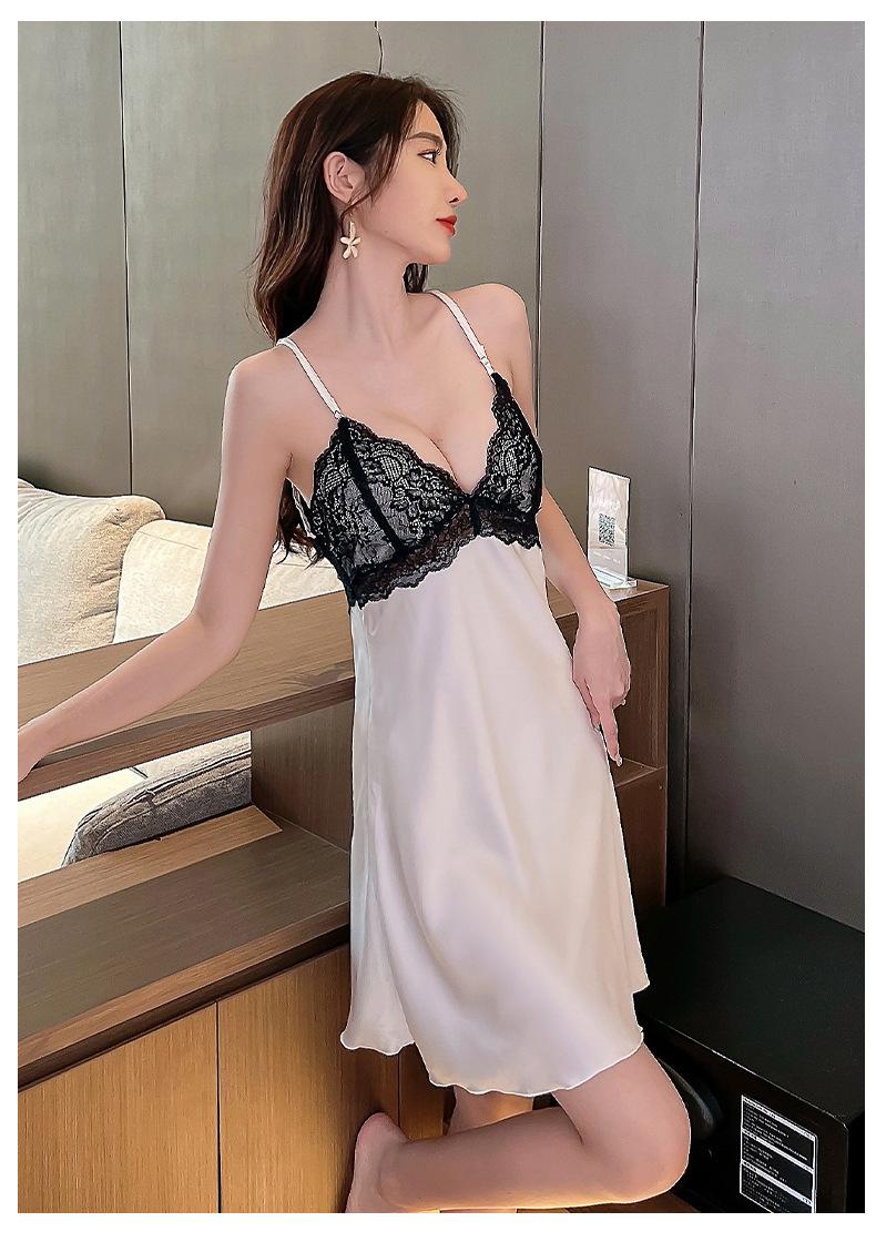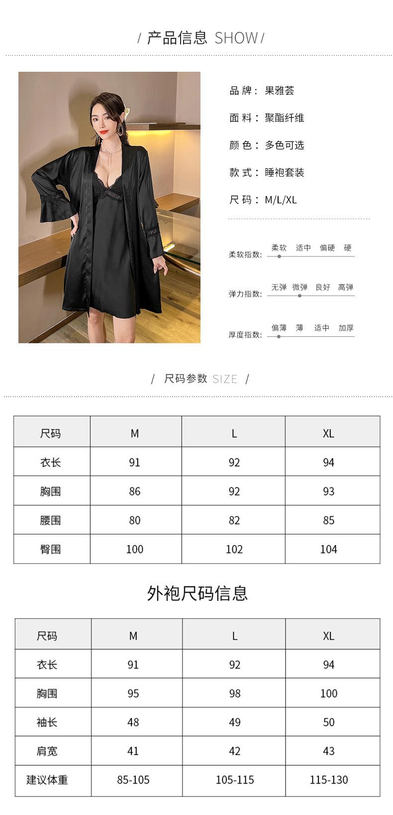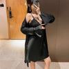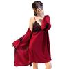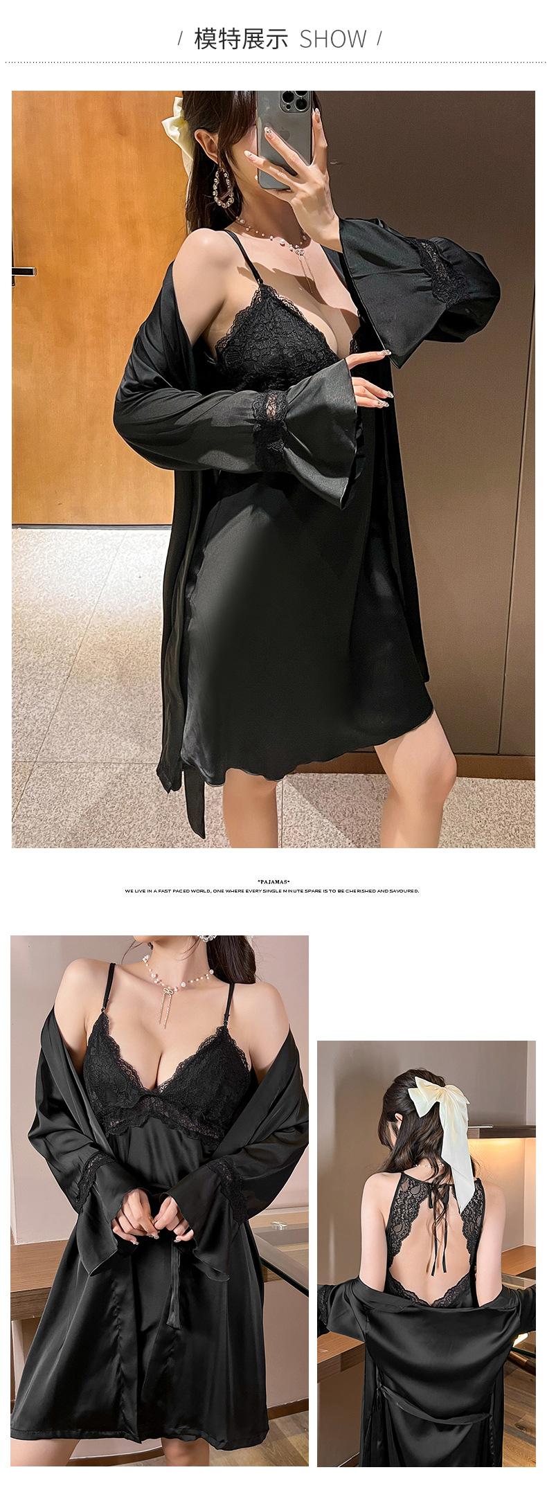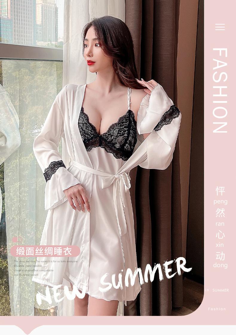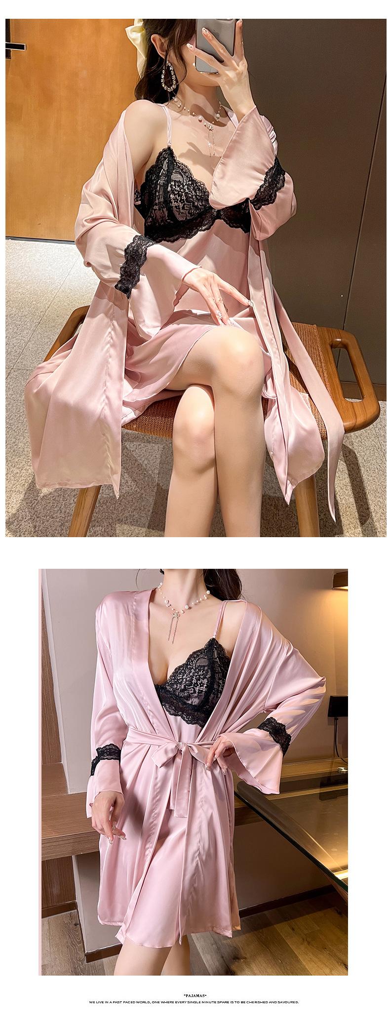 Primavera y Verano Camisón Sexy de Tirantes de Encaje con Bata Conjunto de Dos Piezas Ropa para el Hogar Pijama de Seda de Hielo para Mujer