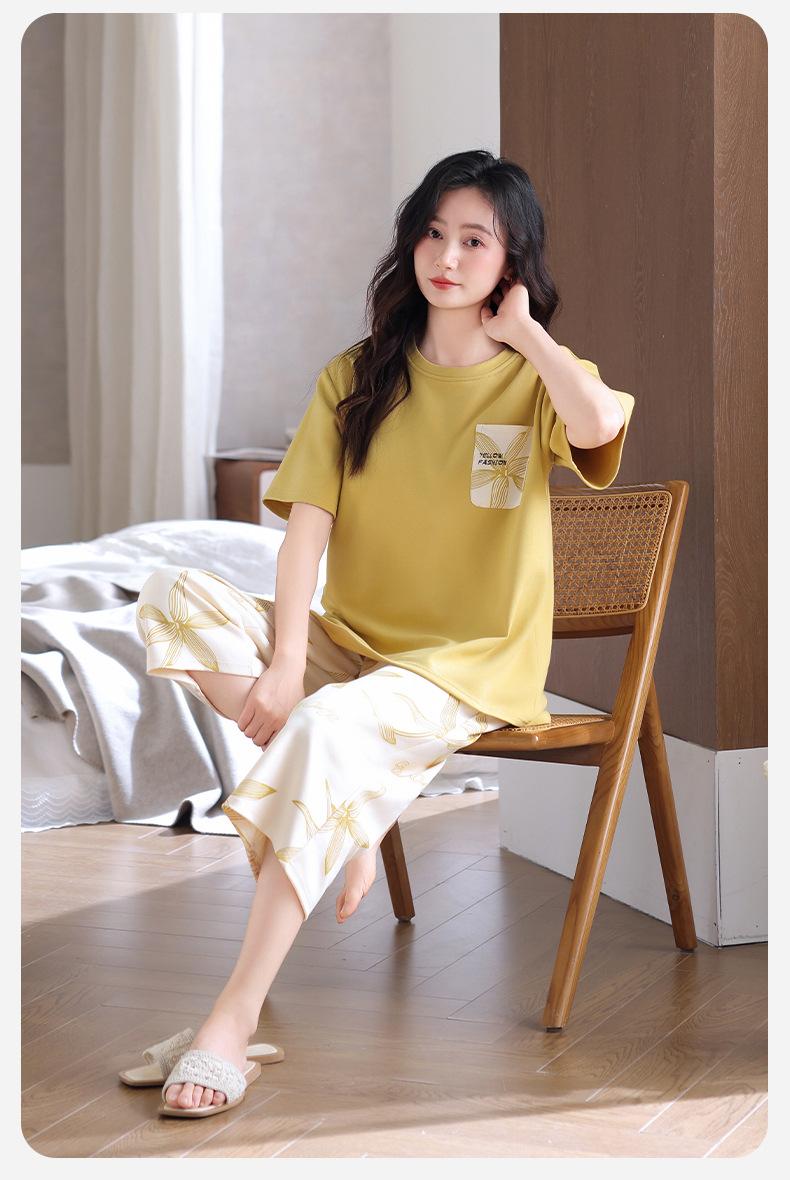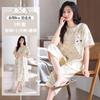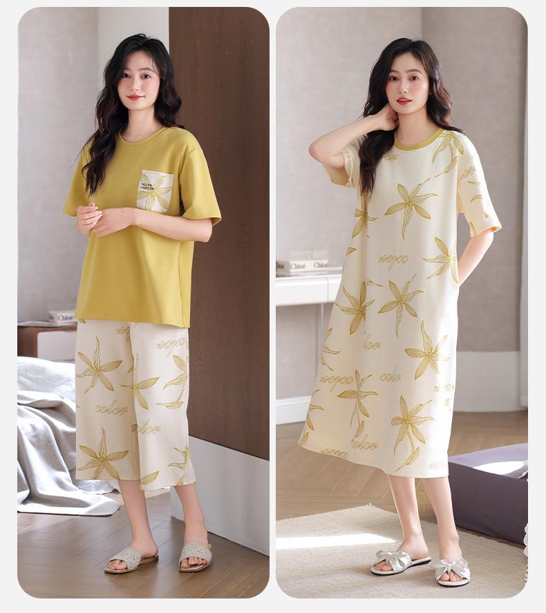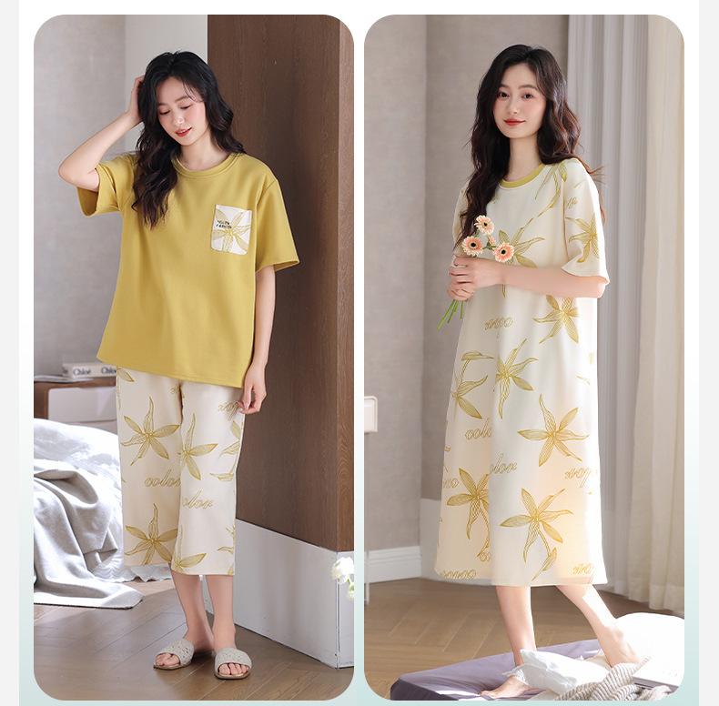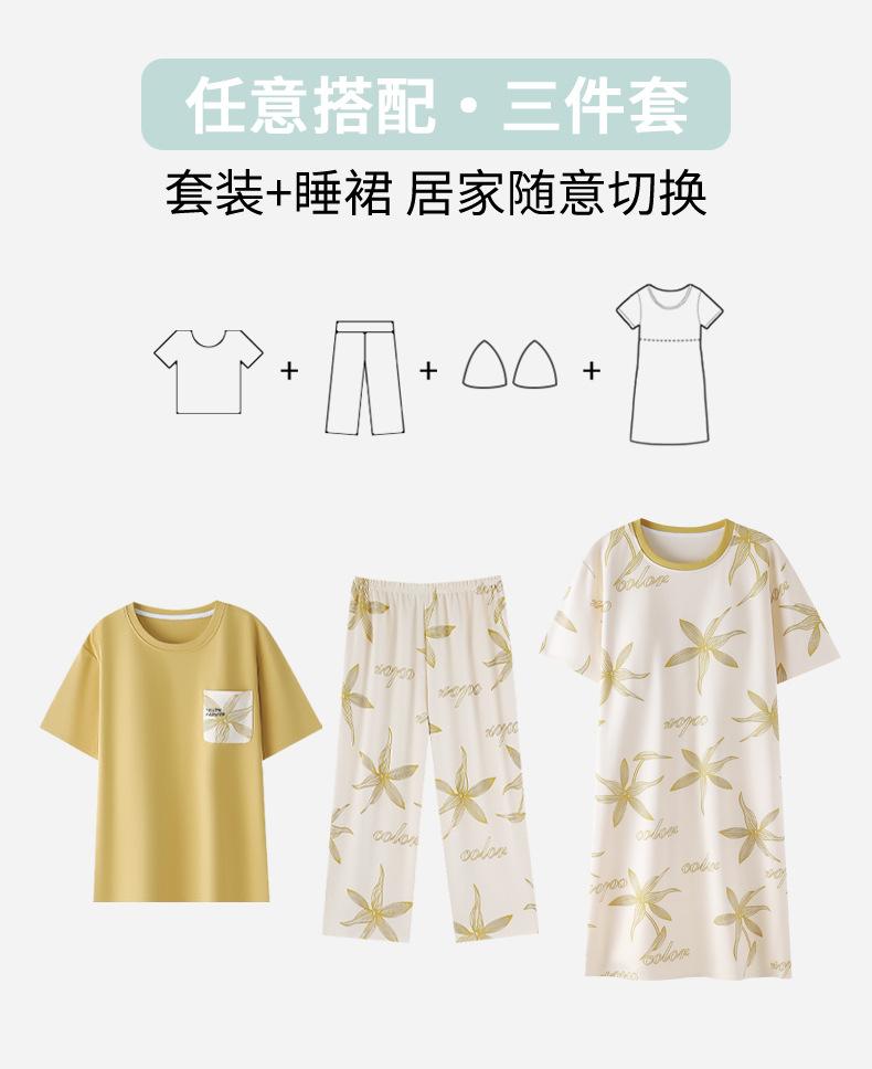 Pijama de Verano de Algodón de Manga Corta y Pantalón Capri para Mujer, Camisón de Verano de Largo Medio con Almohadilla en el Pecho, Ropa para el Hogar, Conjunto de Tres Piezas