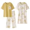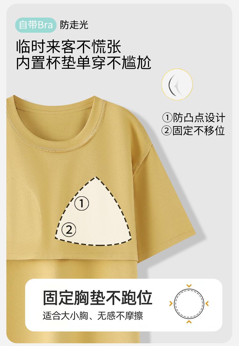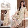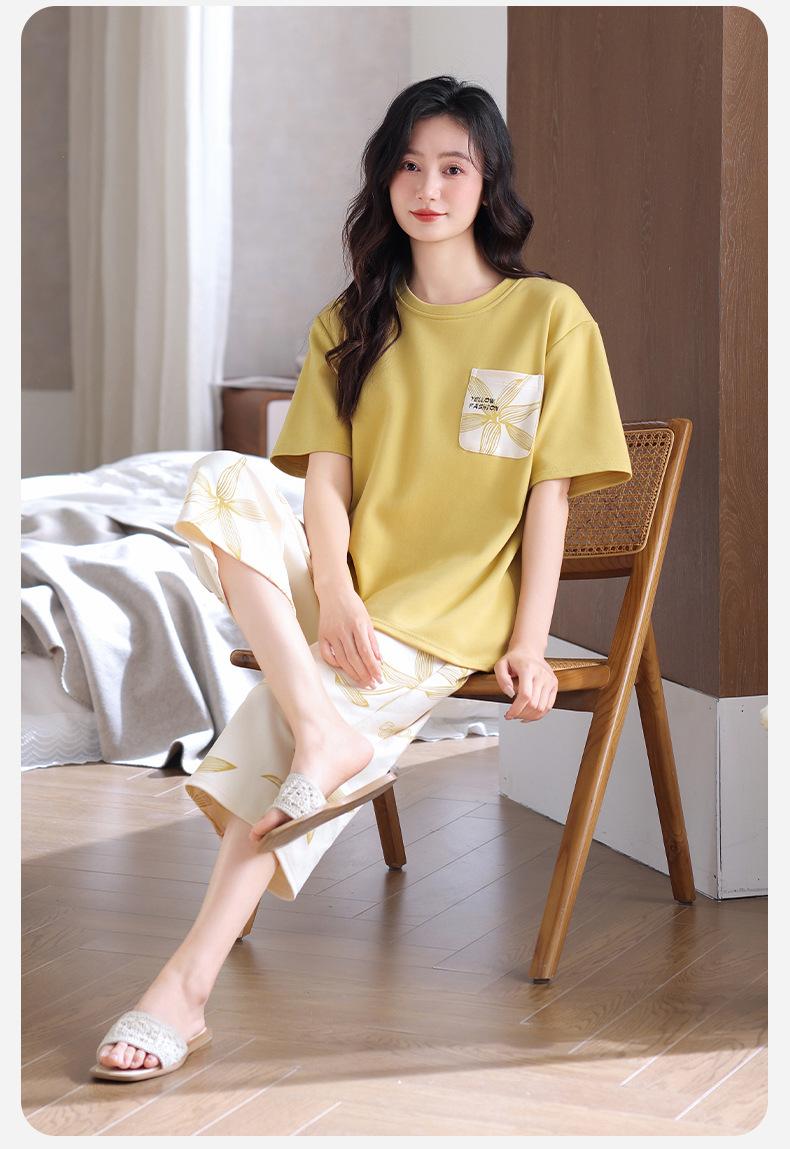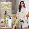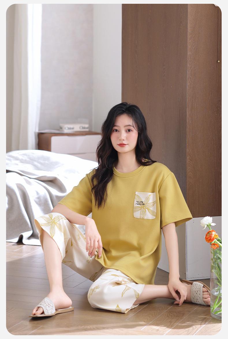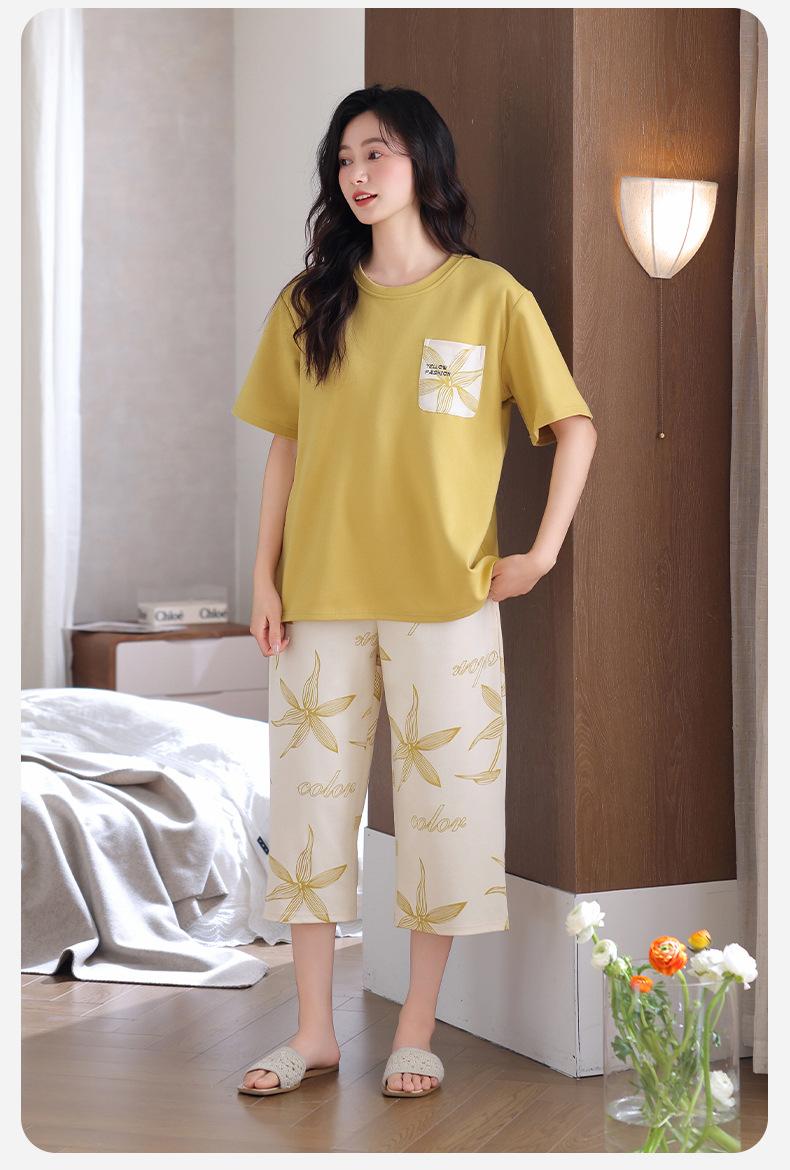 Pijama de Verano de Algodón de Manga Corta y Pantalón Capri para Mujer, Camisón de Verano de Largo Medio con Almohadilla en el Pecho, Ropa para el Hogar, Conjunto de Tres Piezas