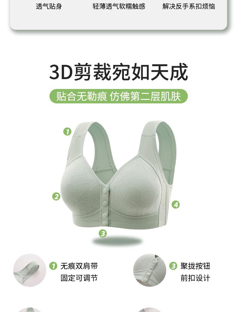 Íntimos para mujer Ropa de mujer Sujetador fino push-up con hebilla delantera sin aros estilo chaleco para mujeres de mediana edad y mayores Talla grande