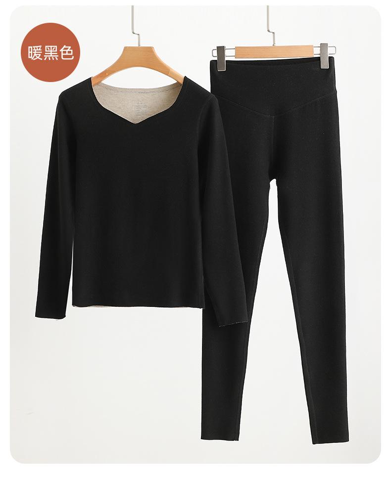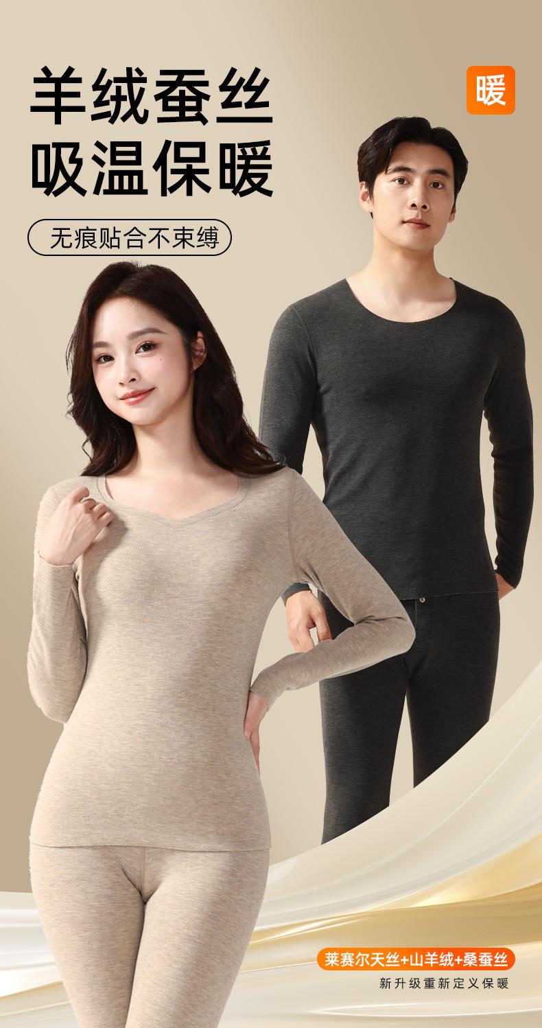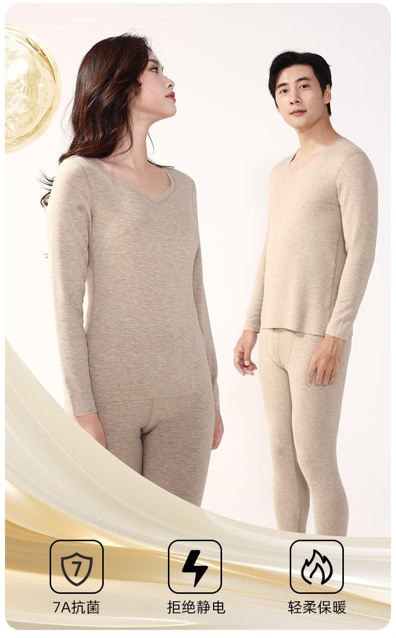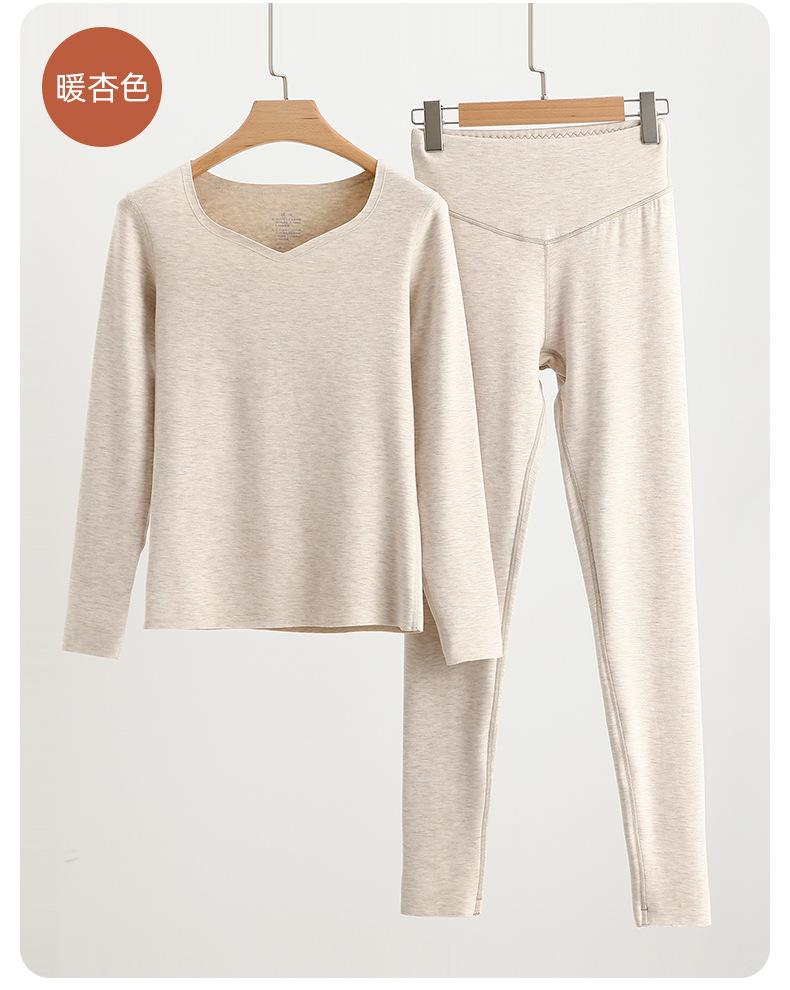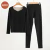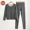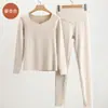 Set de Ropa Interior Térmica de Cachemira y Seda para Mujer Otoño e Invierno Nuevo Sin Costuras Terciopelo Alemán Pantalones Térmicos de Cintura Alta Ropa de Otoño y Pantalones Largos para Hombre