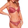 Conjunto de Lencería de Encaje Personalizado Transparente Sexy Push-Up y Tanga con Lazo Conjunto de 2 Piezas