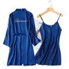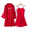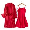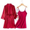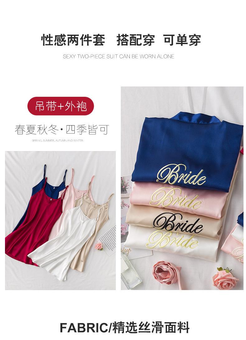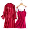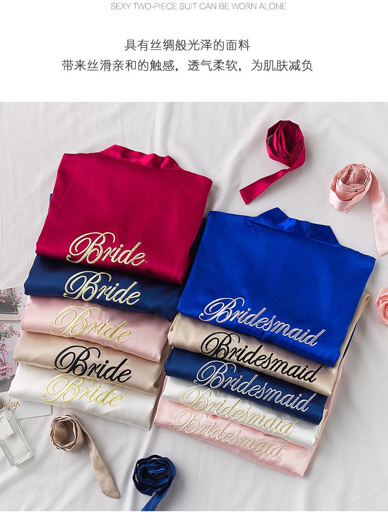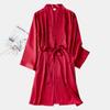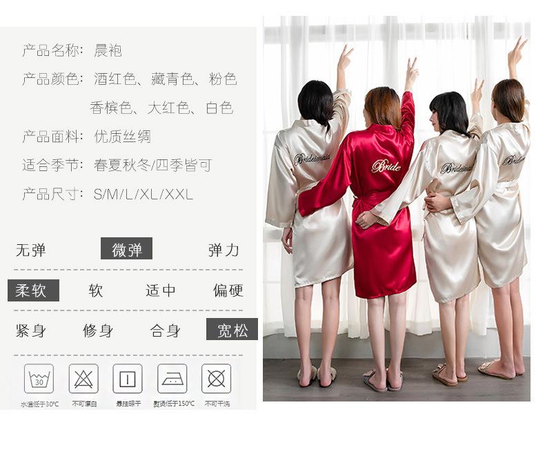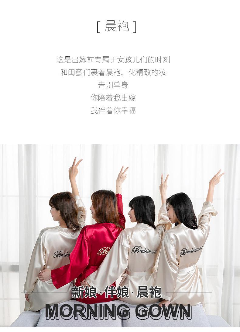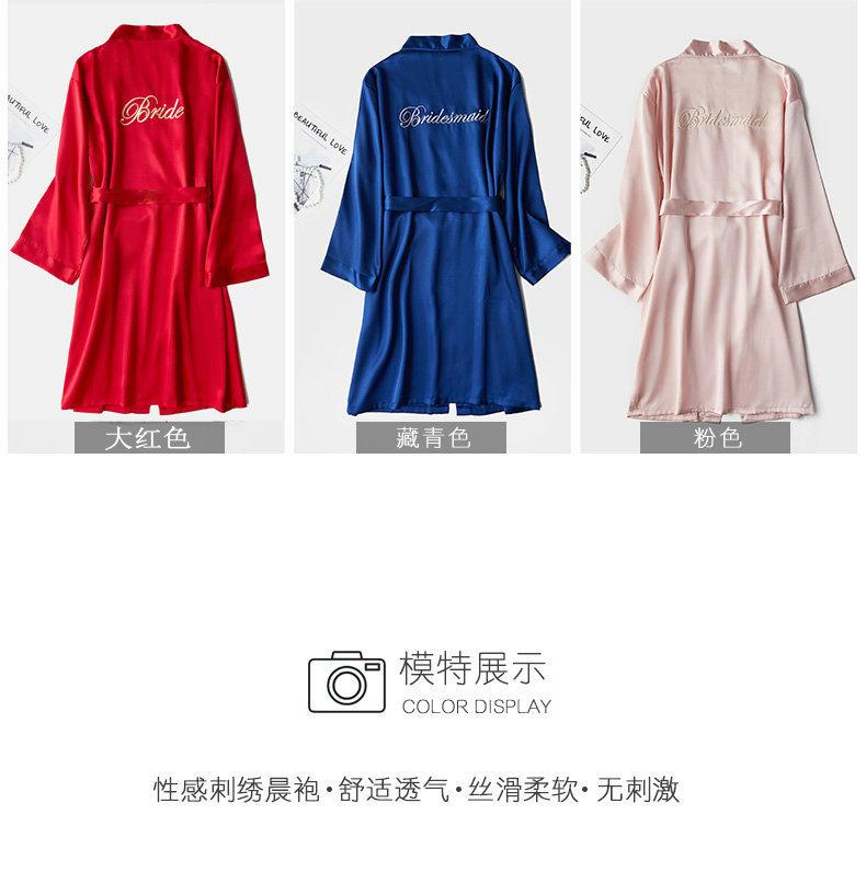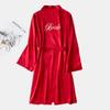 Bata de Mañana Femenina Novia Boda Dama de Honor Seda Seda Hielo Boda Pijama Sexy Batín Delgado de Manga Larga Souvenir
