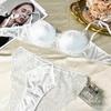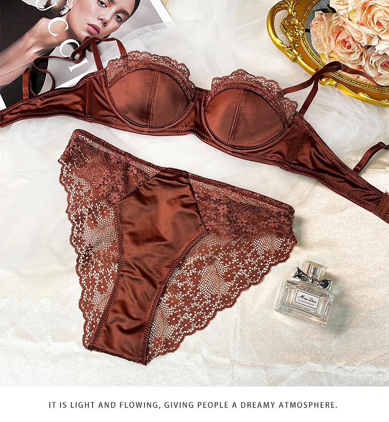 Lencería Francesa Europea y Americana Transfronteriza, Sujetador Femenino Delgado de Encaje y Satén, Busto Grande, Set de Sujetador Pequeño Anticaída