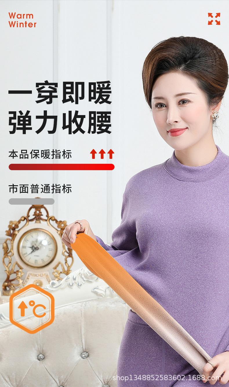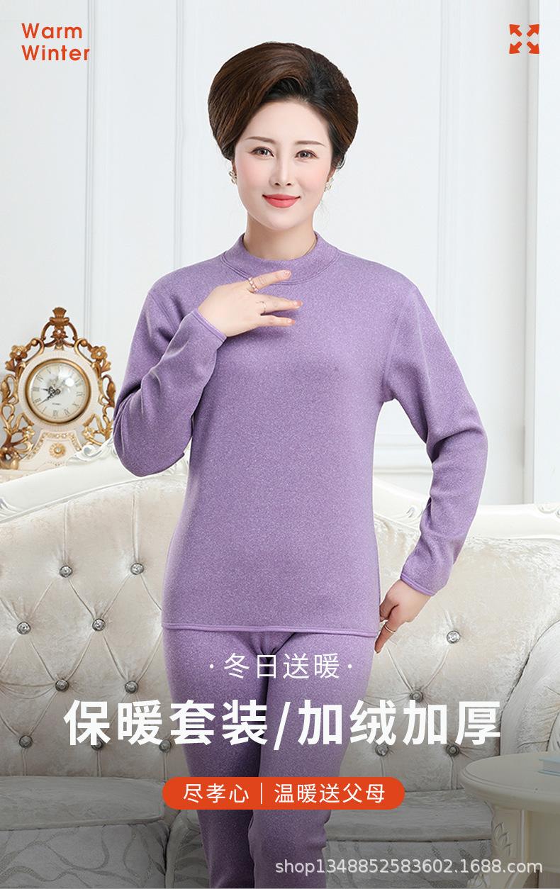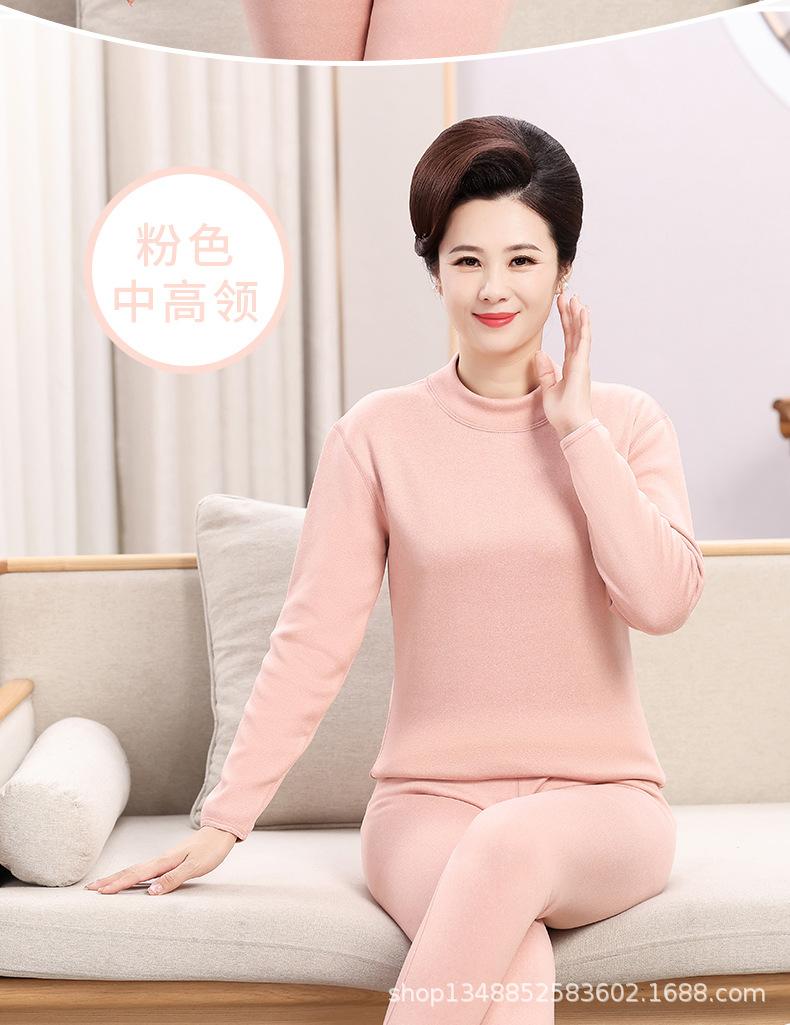 Conjunto de Ropa Interior Térmica para Mujeres de Mediana Edad y Ancianas con Forro Polar, Cuello Medio Alto, Talla Grande, Grueso para Mayor Calidez, Envío Gratis
