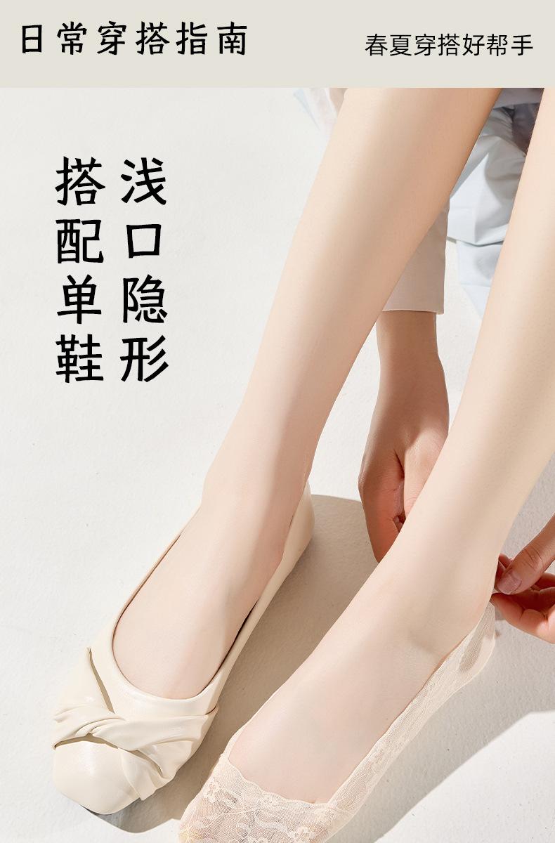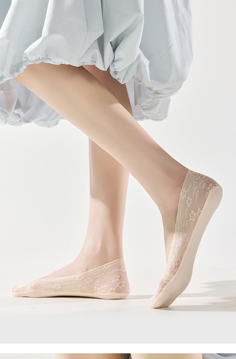 Calcetines Invisibles de Encaje para Mujer, Calcetines de Barco Ultradelgados Sin Costuras de Seda de Hielo de Corte Bajo, Verano Algodón con Suela de Silicona Antideslizante Absorbente del Sudor Calcetines para Tacones Altos