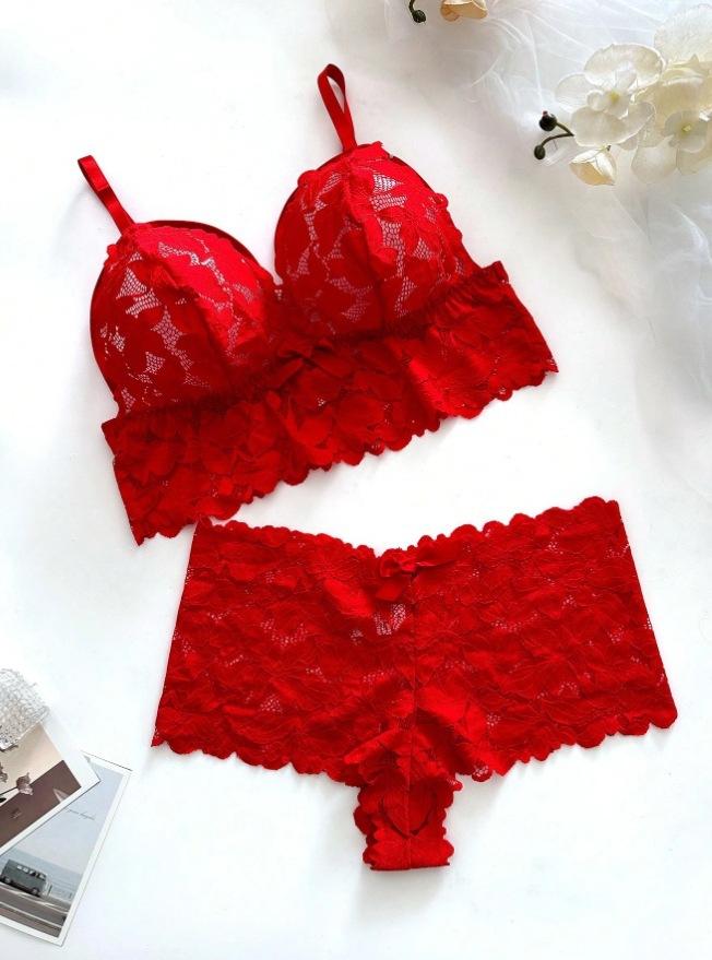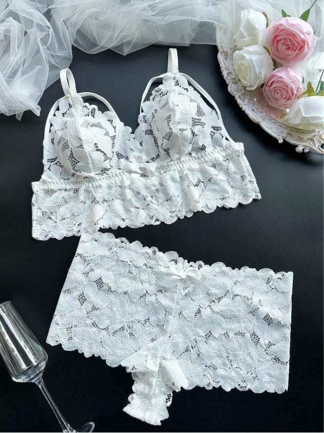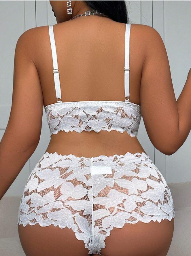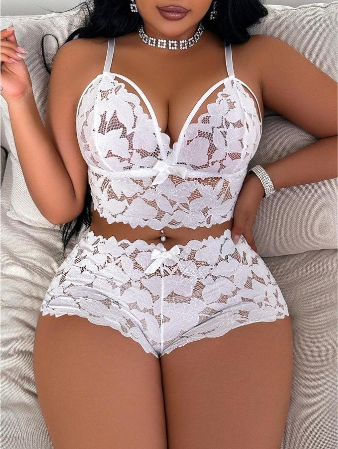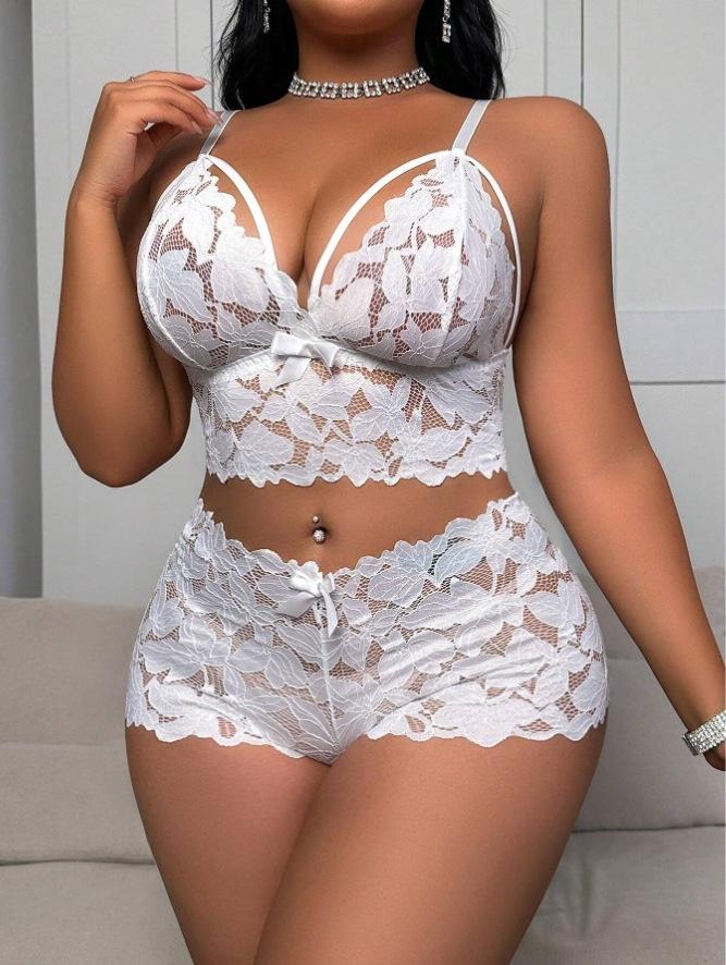 Conjunto de Sujetador Delgado de Encaje Europeo y Americano Transfronterizo de Amazon, Pijama Transparente, Ropa Interior de Tentación, Talla Grande, Ropa para el Hogar para Mujer