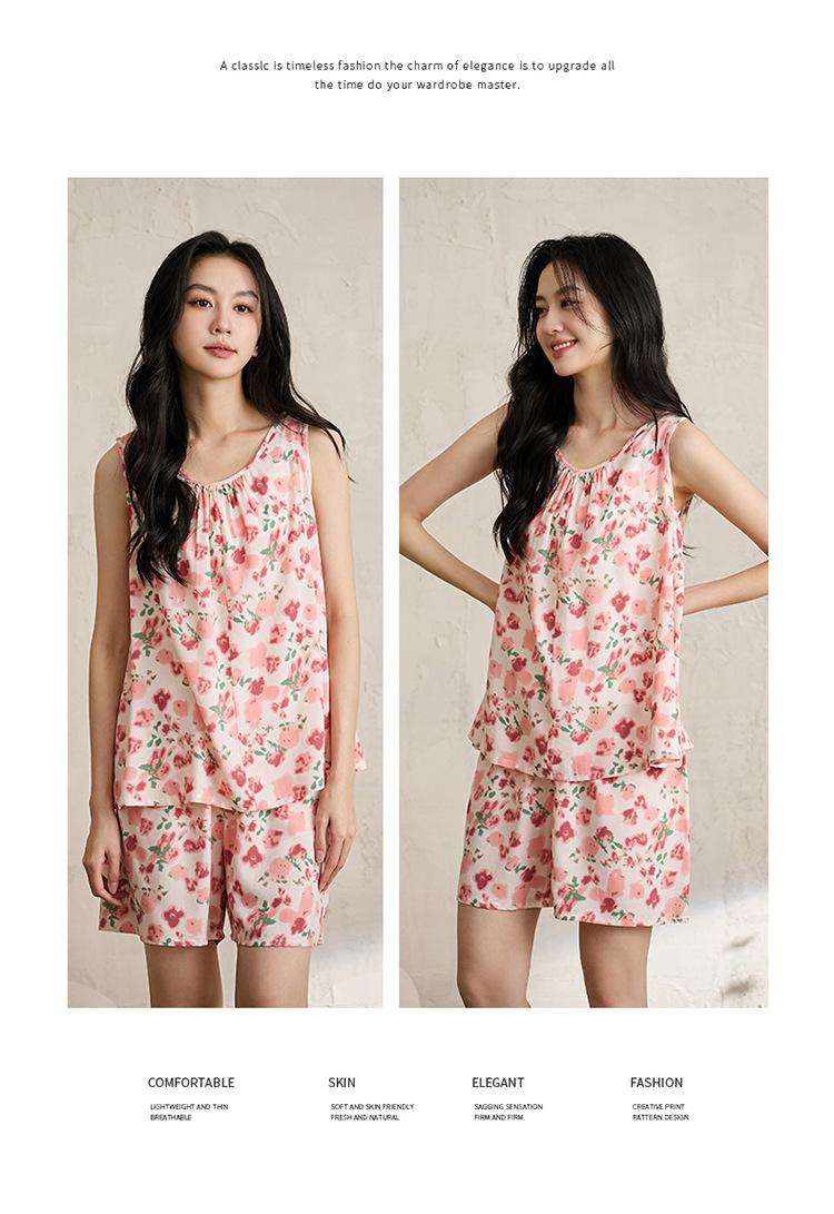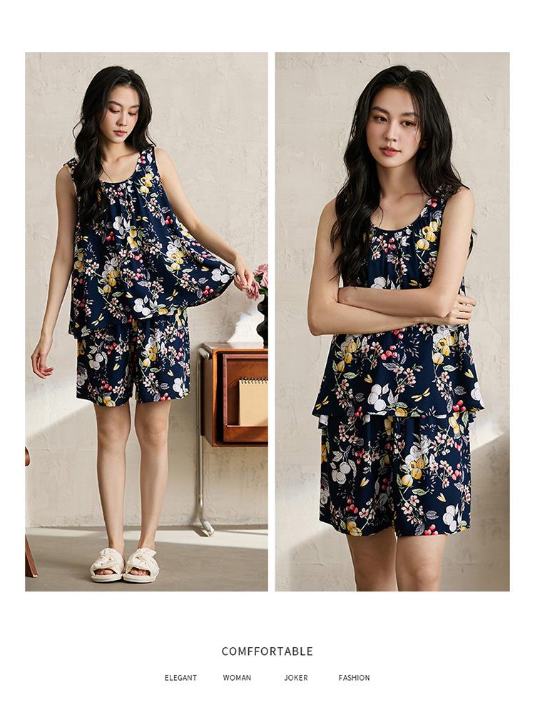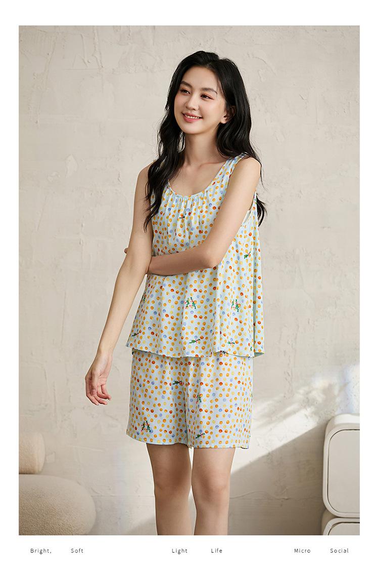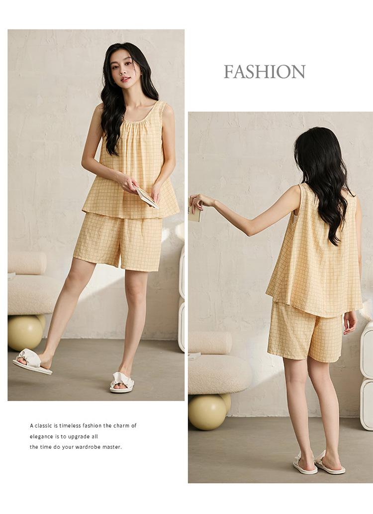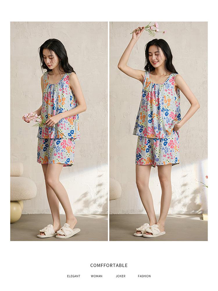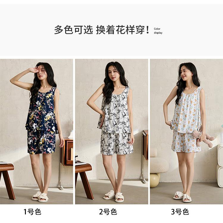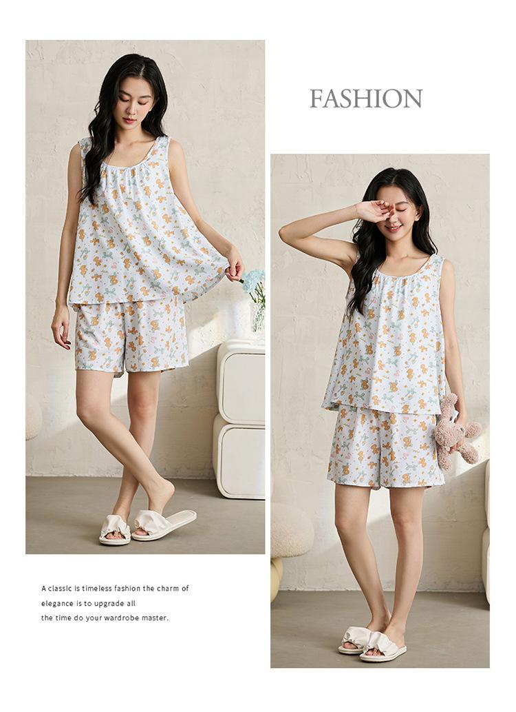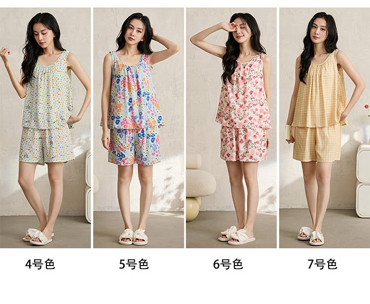 Pijamas para Mujer Verano Algodón Seda Dos Piezas Estilo Coreano Chaleco para Mujer Verano Estudiante Chica Algodón Artificial Conjunto de Ropa para el Hogar