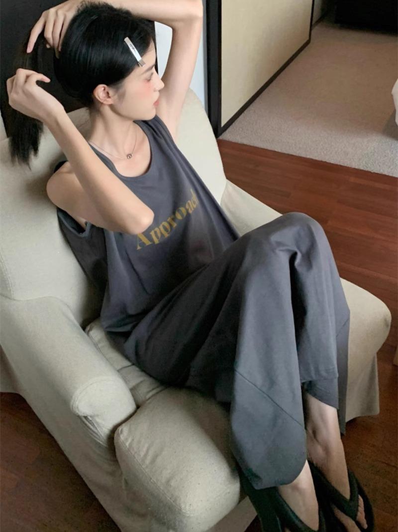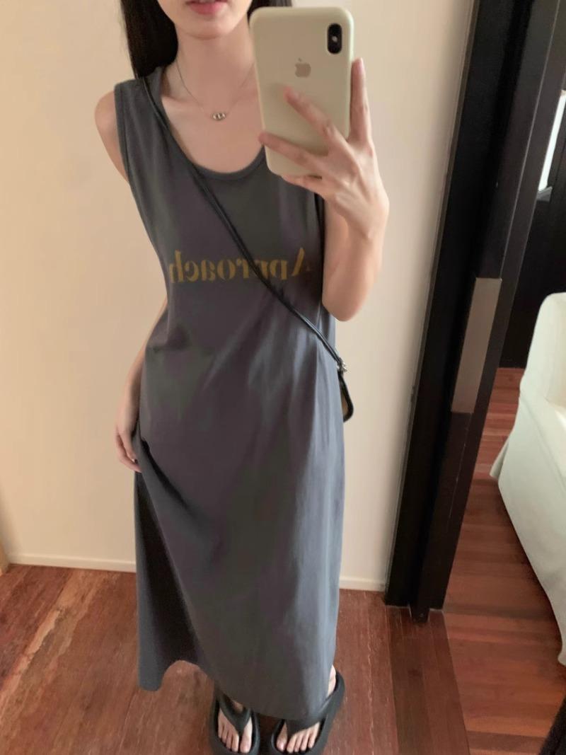 ✿100% cotton sleeveless letter style [iron gray]