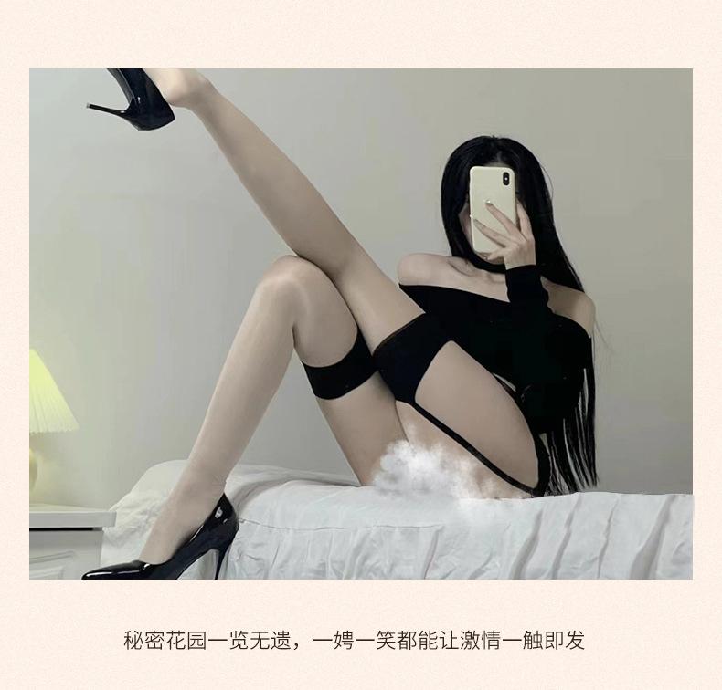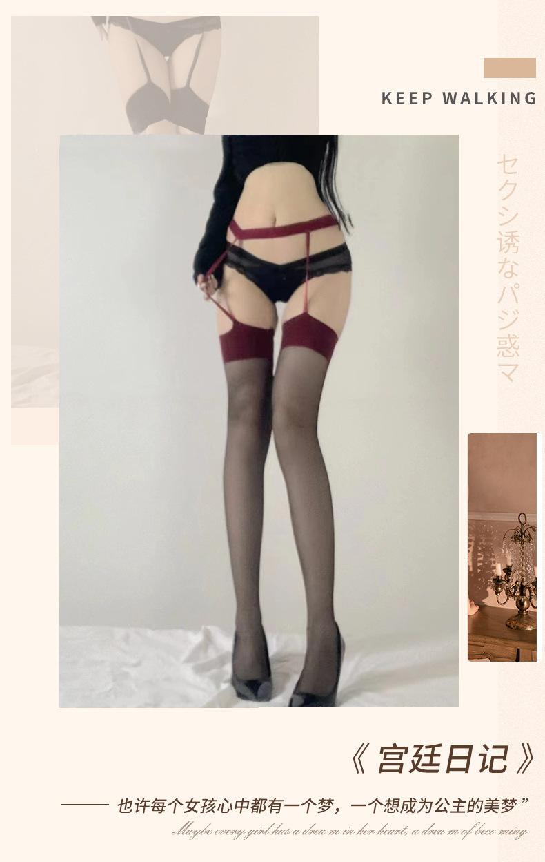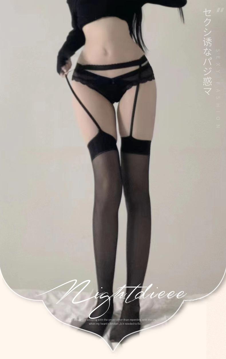 Medias de seda negras con tirantes largos japoneses para mujer, ropa interior sexy para discoteca, calcetines todo en uno A68