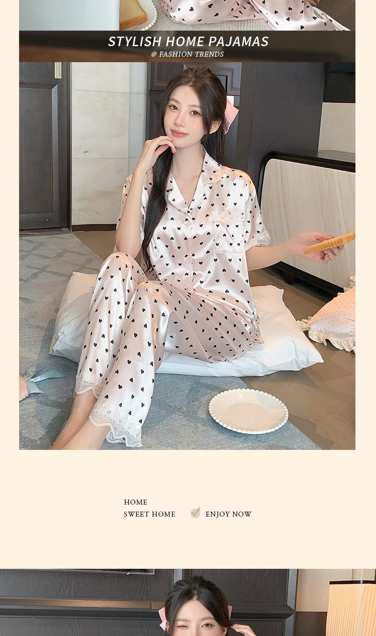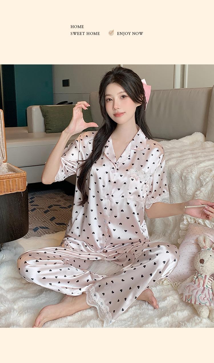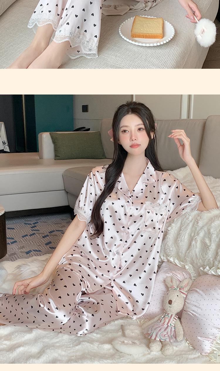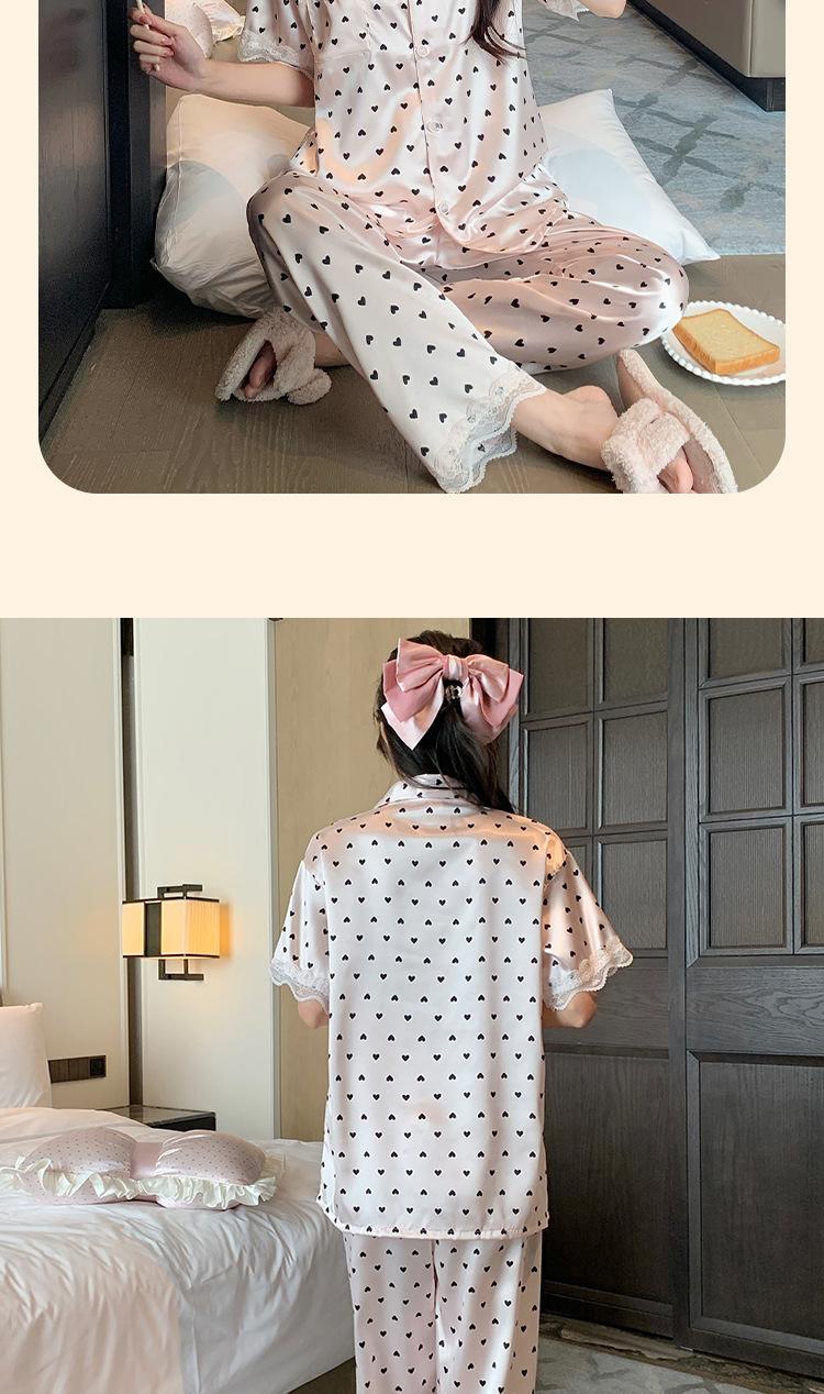 Pijama pequeño de estilo hada francés de amor de seda de hielo para mujer, verano nuevo, encaje de encaje, manga corta, pantalones, ropa para el hogar al por mayor