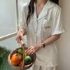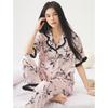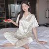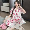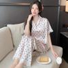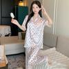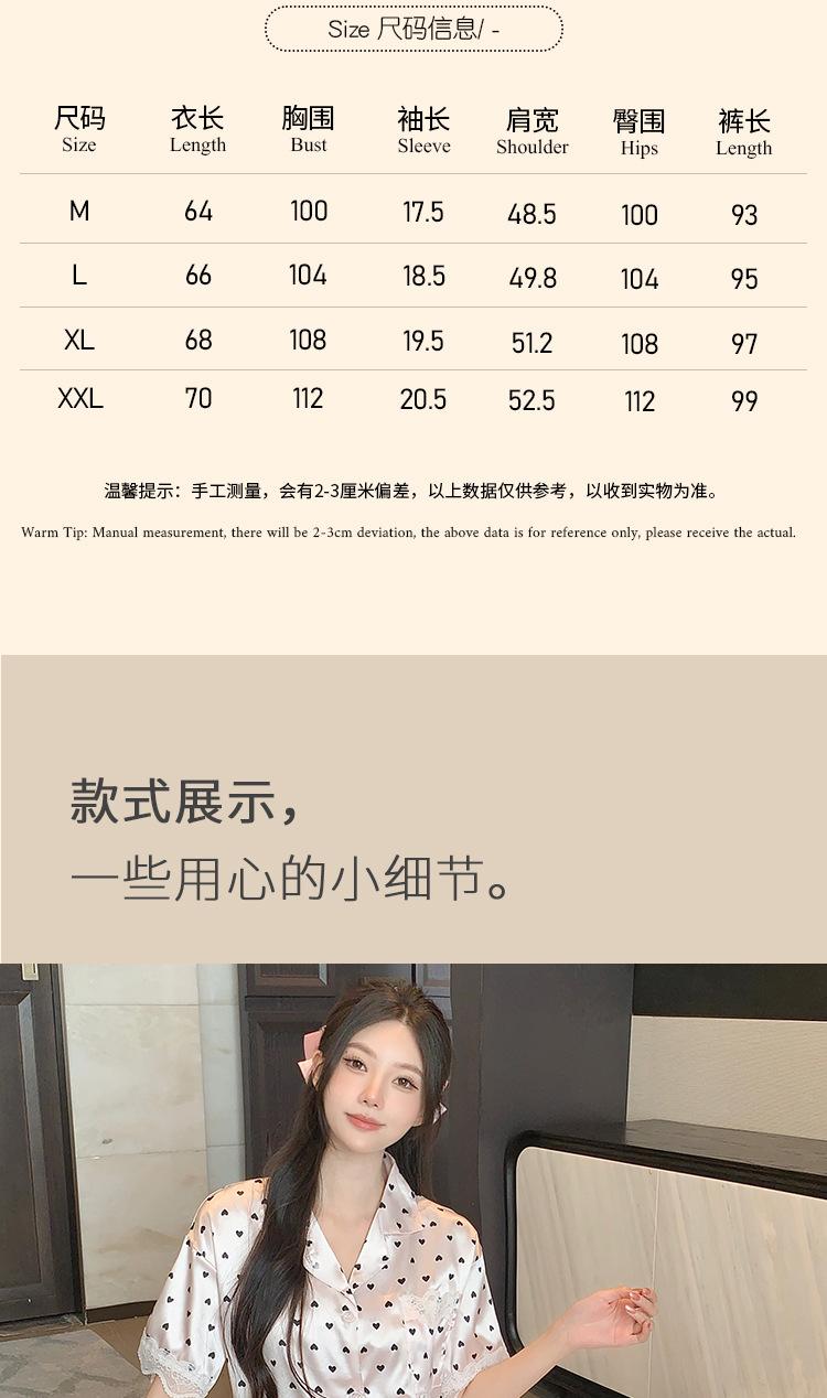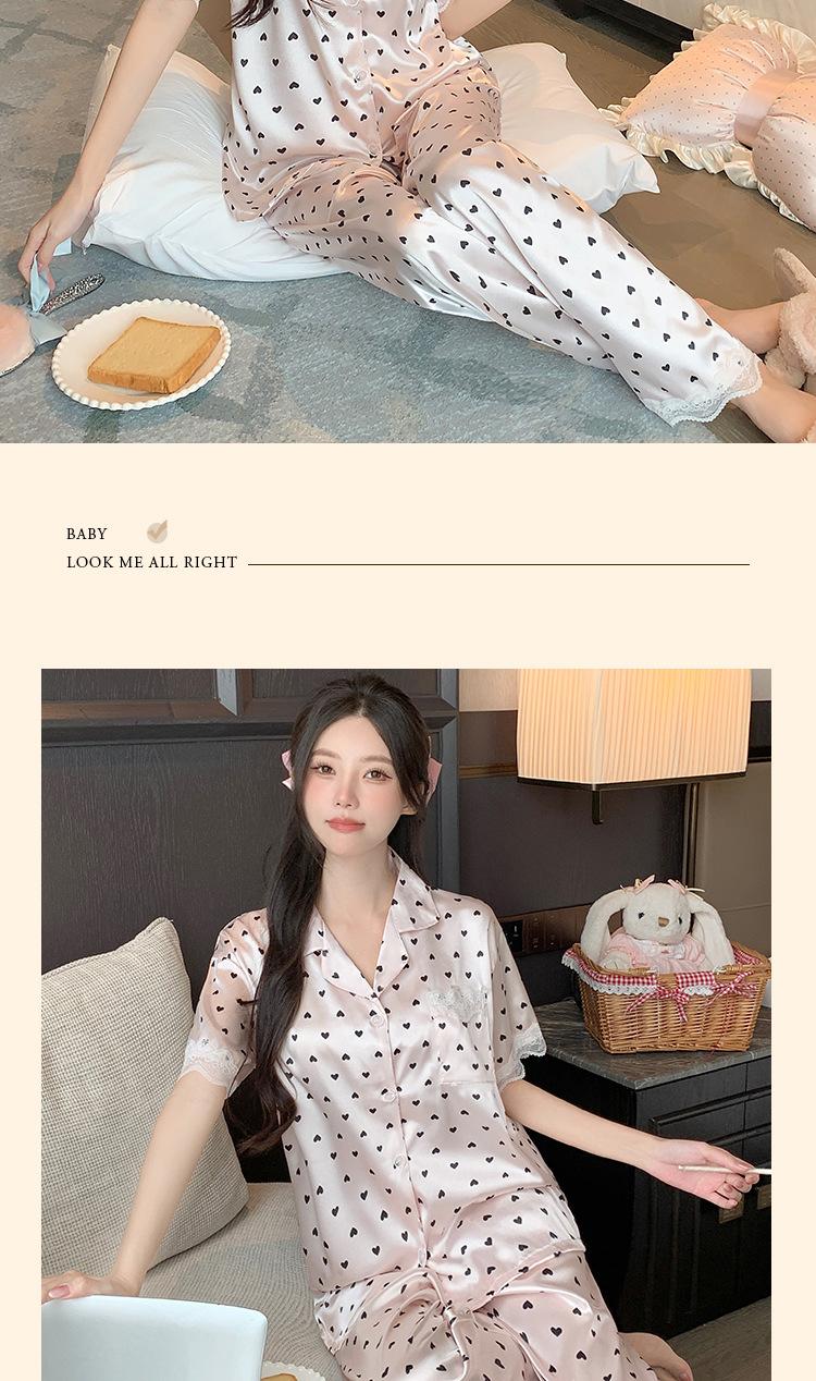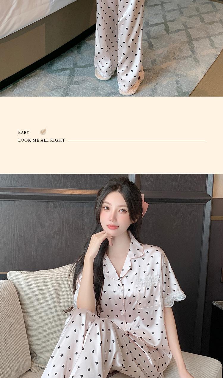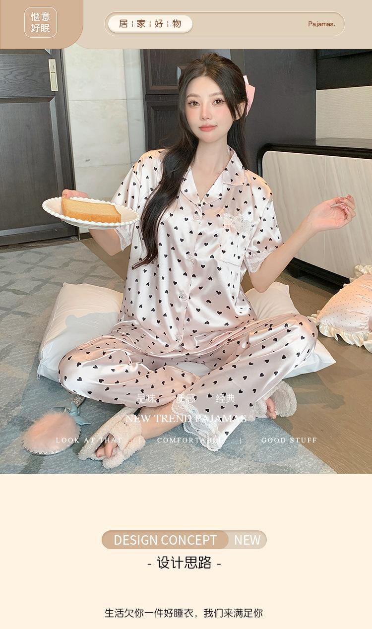 Pijama pequeño de estilo hada francés de amor de seda de hielo para mujer, verano nuevo, encaje de encaje, manga corta, pantalones, ropa para el hogar al por mayor