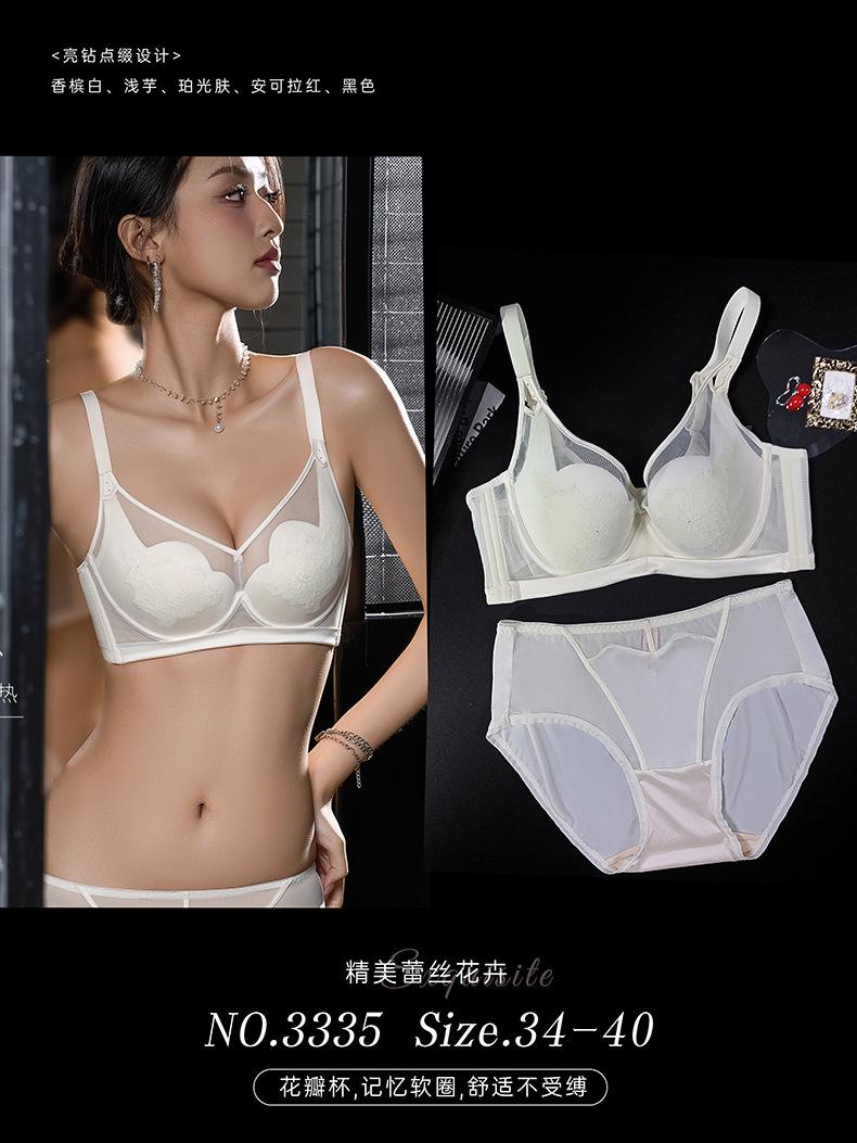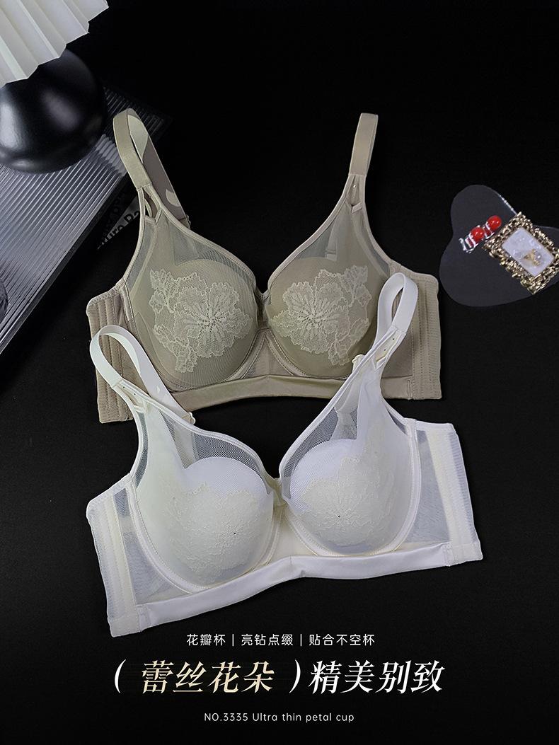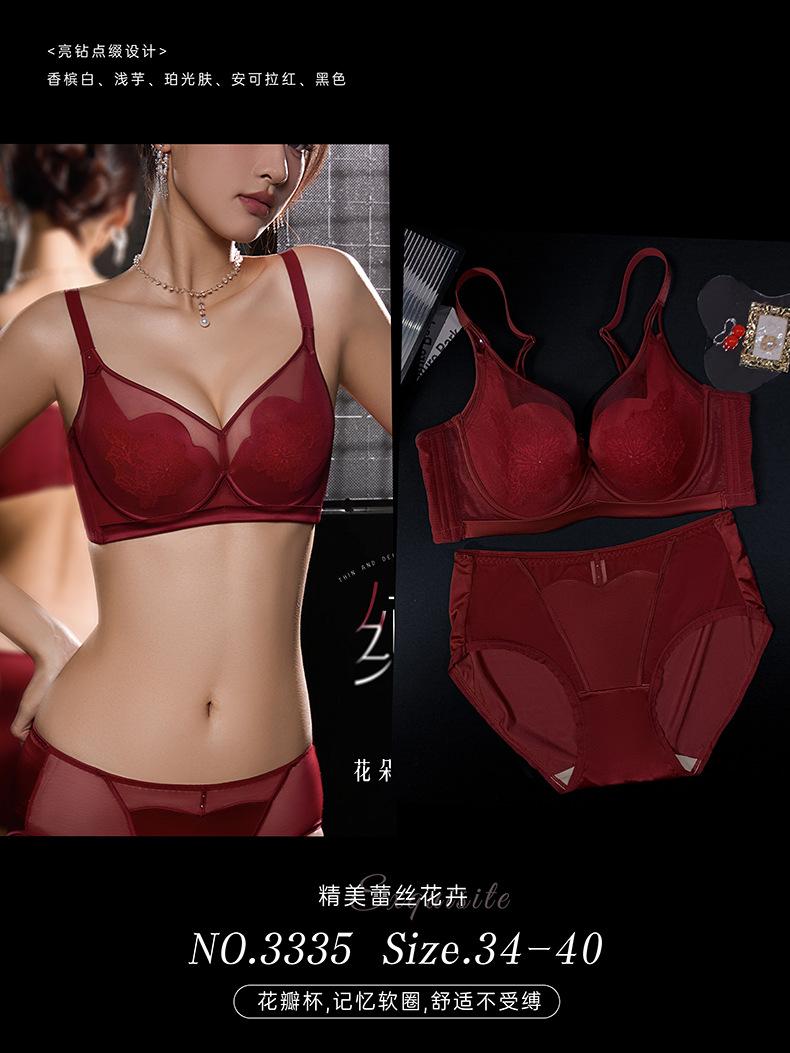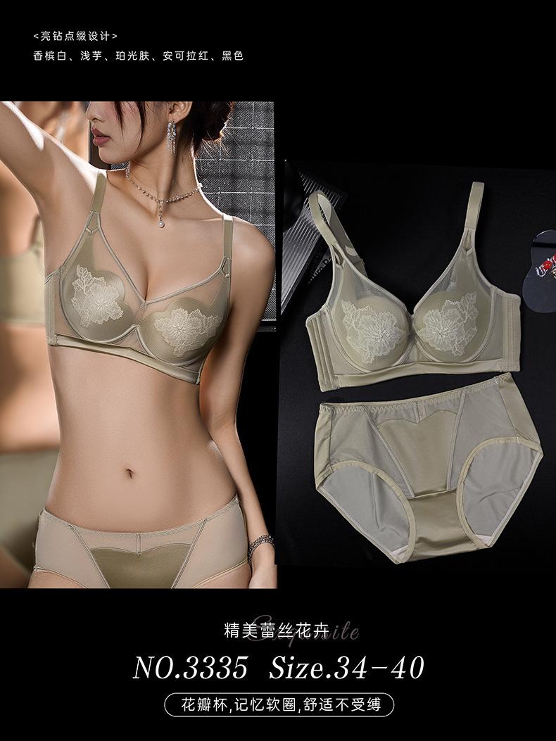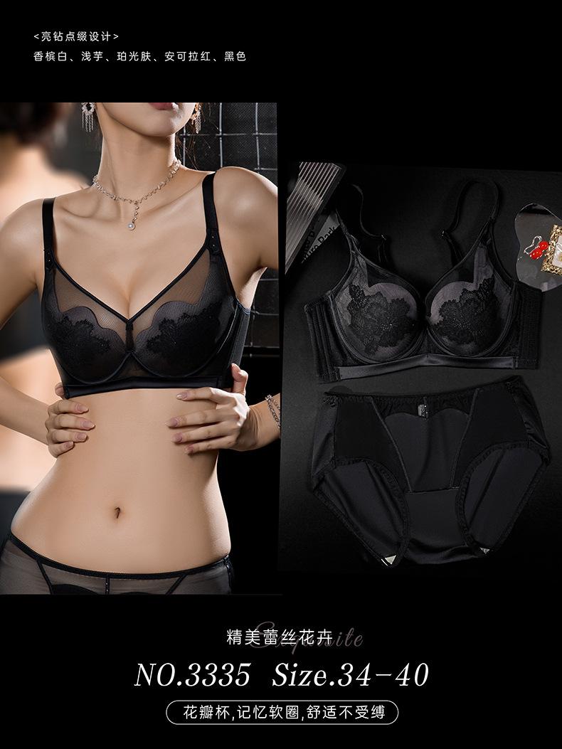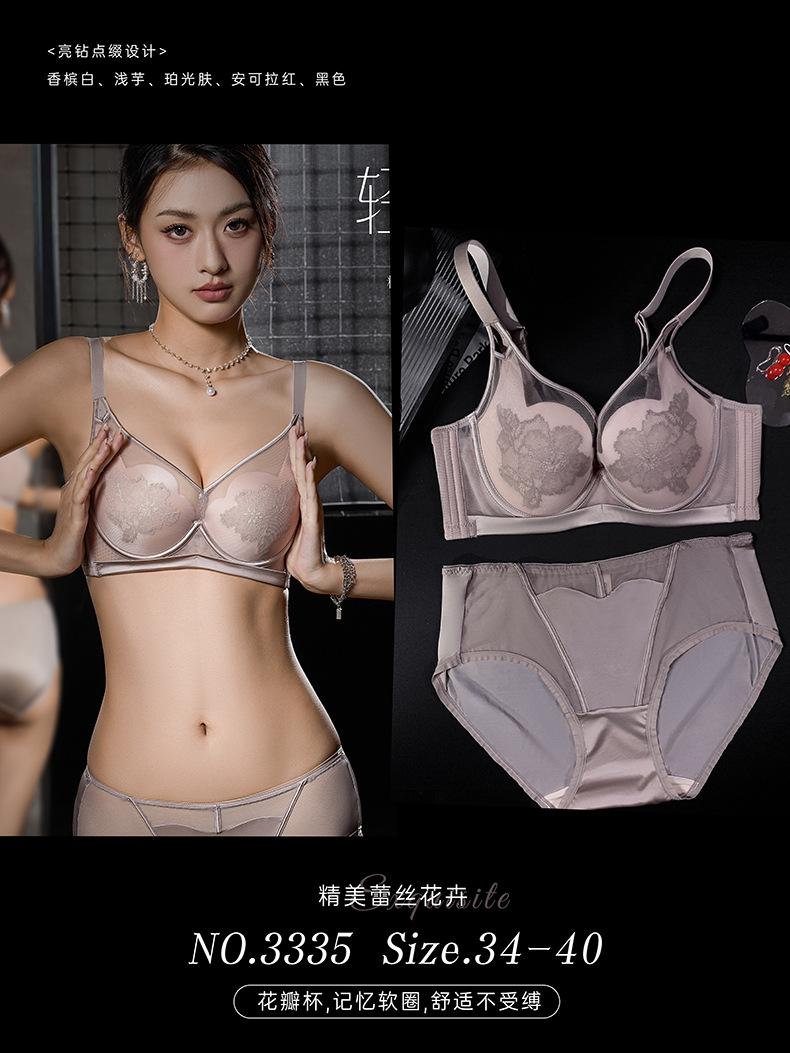 3335 Ropa interior de encaje francés para mujer de busto grande, delgada, sexy, push-up, sin copa vacía, conjunto de brasier personalizado de alta gama