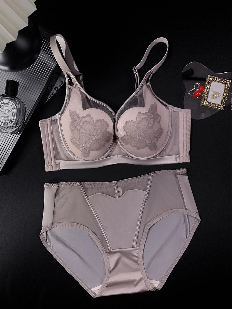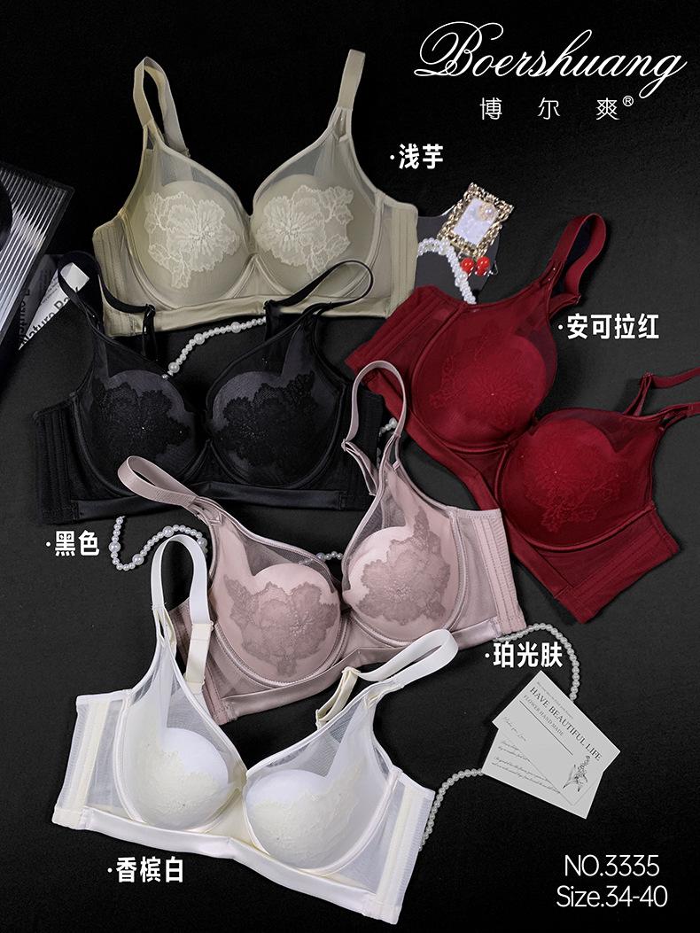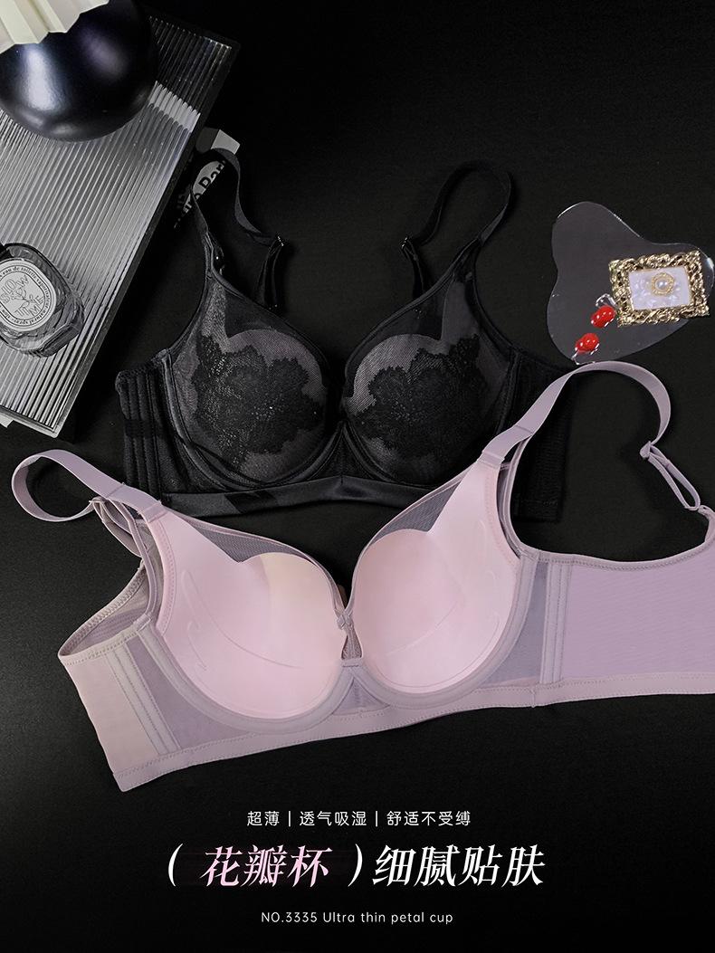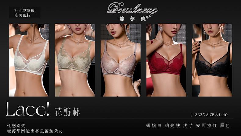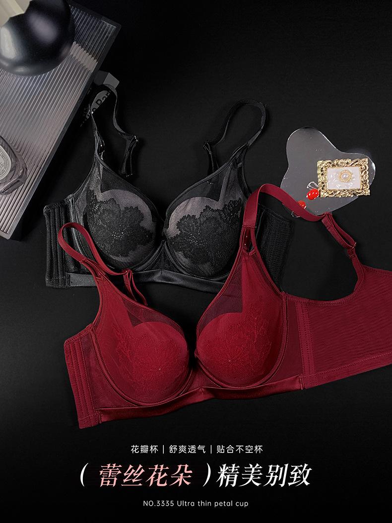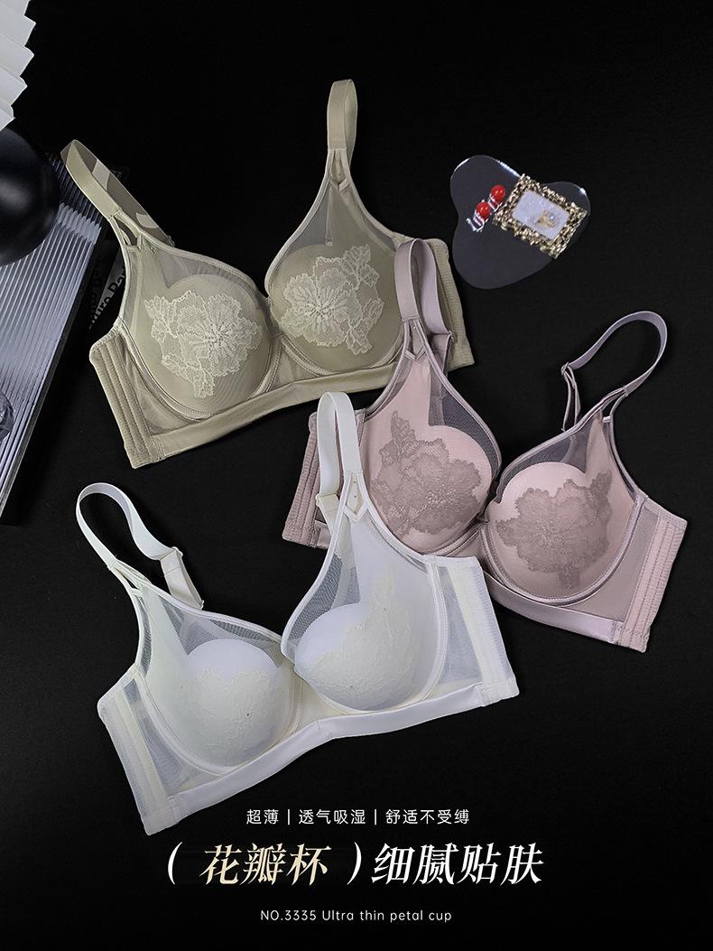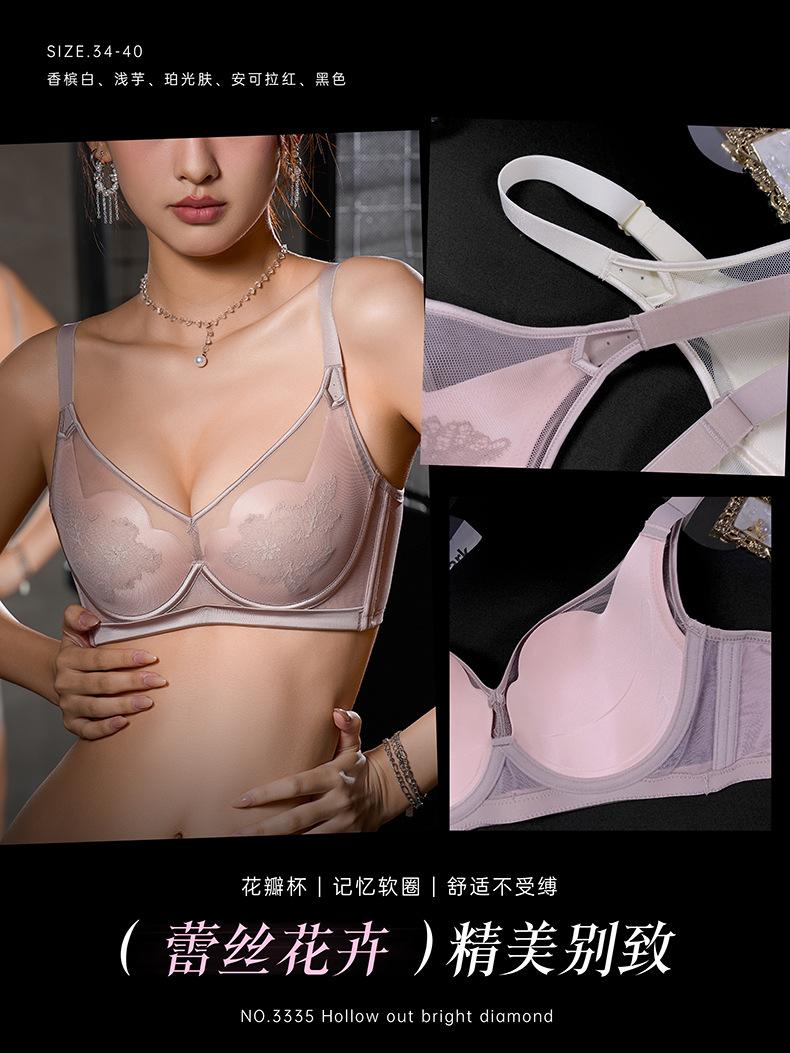3335 Ropa interior de encaje francés para mujer de busto grande, delgada, sexy, push-up, sin copa vacía, conjunto de brasier personalizado de alta gama