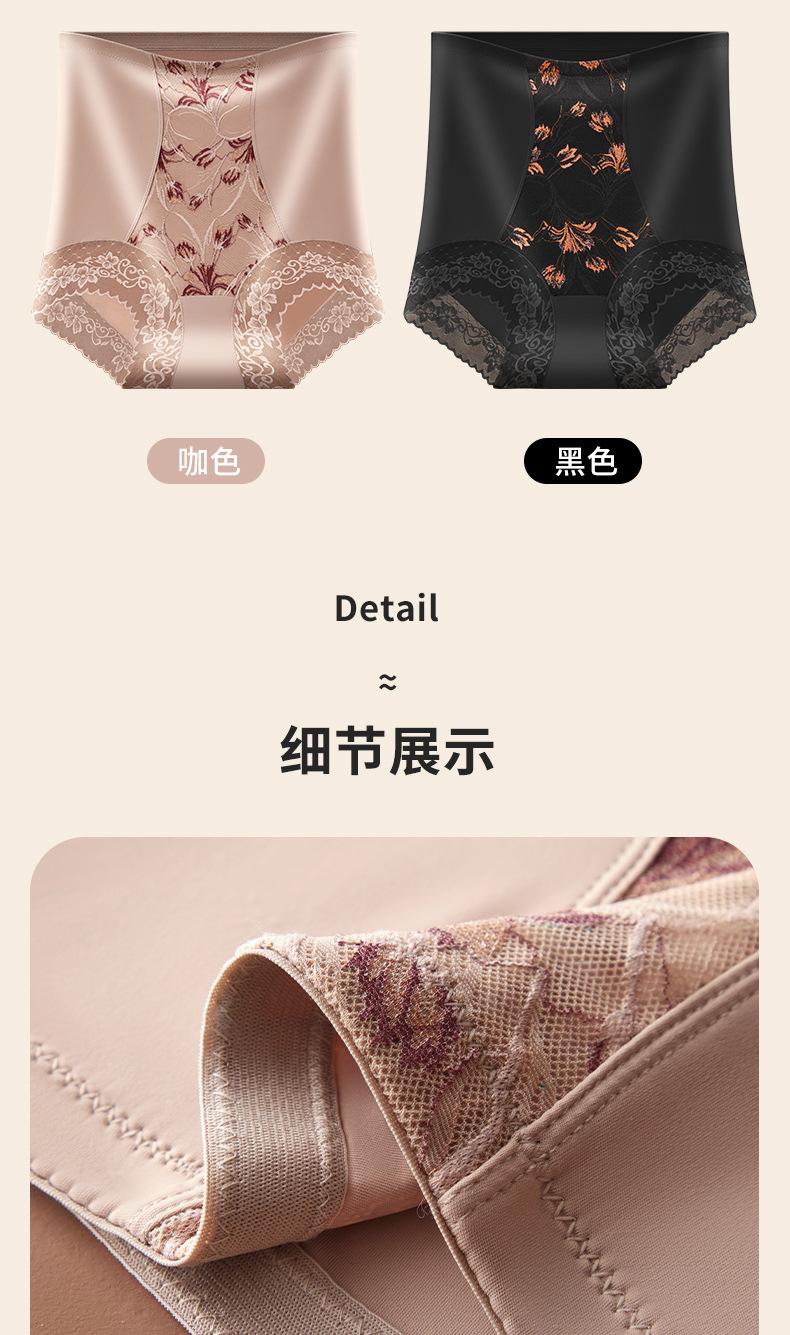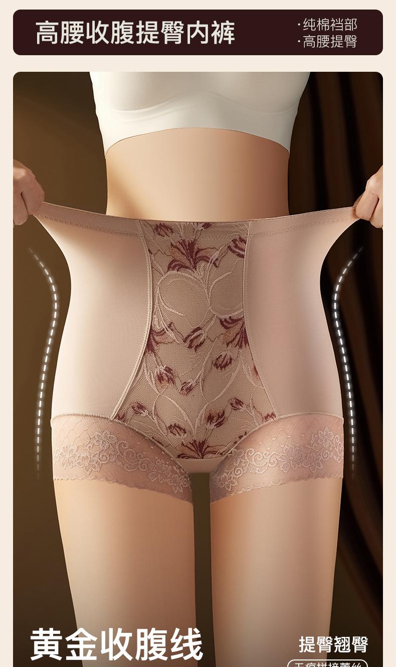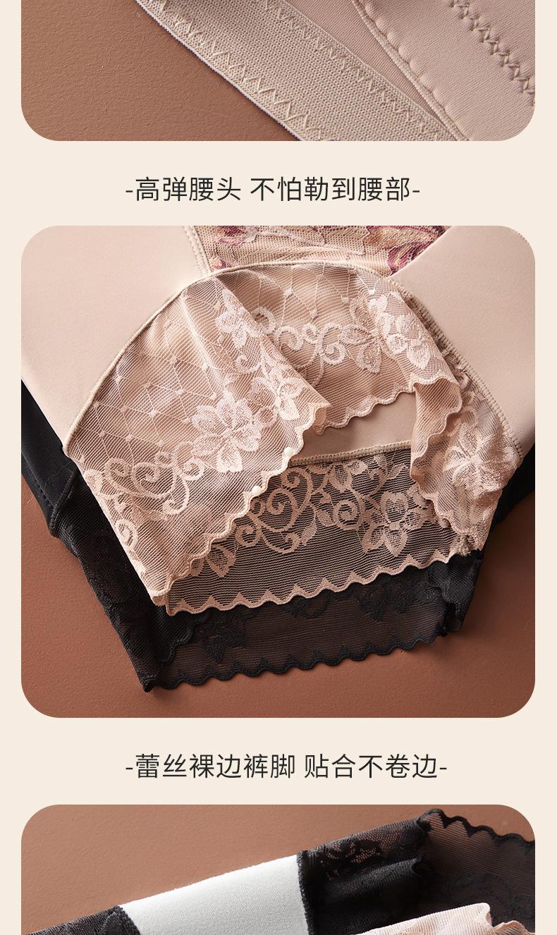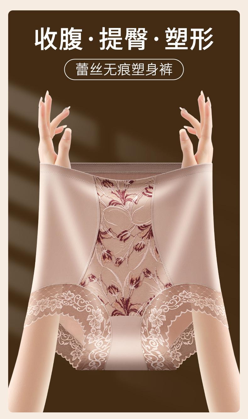 Calzones de Cintura Media-alta sin Costuras para Mujer Pantalones de Cintura Alta Pantalones Abdominales de Alta Elasticidad Encaje Satén Talla Grande Mujer
