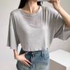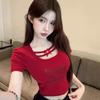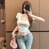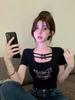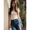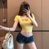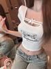 Verano Nuevo Estilo Sexy Camiseta de Manga Corta con Estampado de Mariposa Cintura Entallada Cuello Cuadrado Hermosa Blusa para Mujer