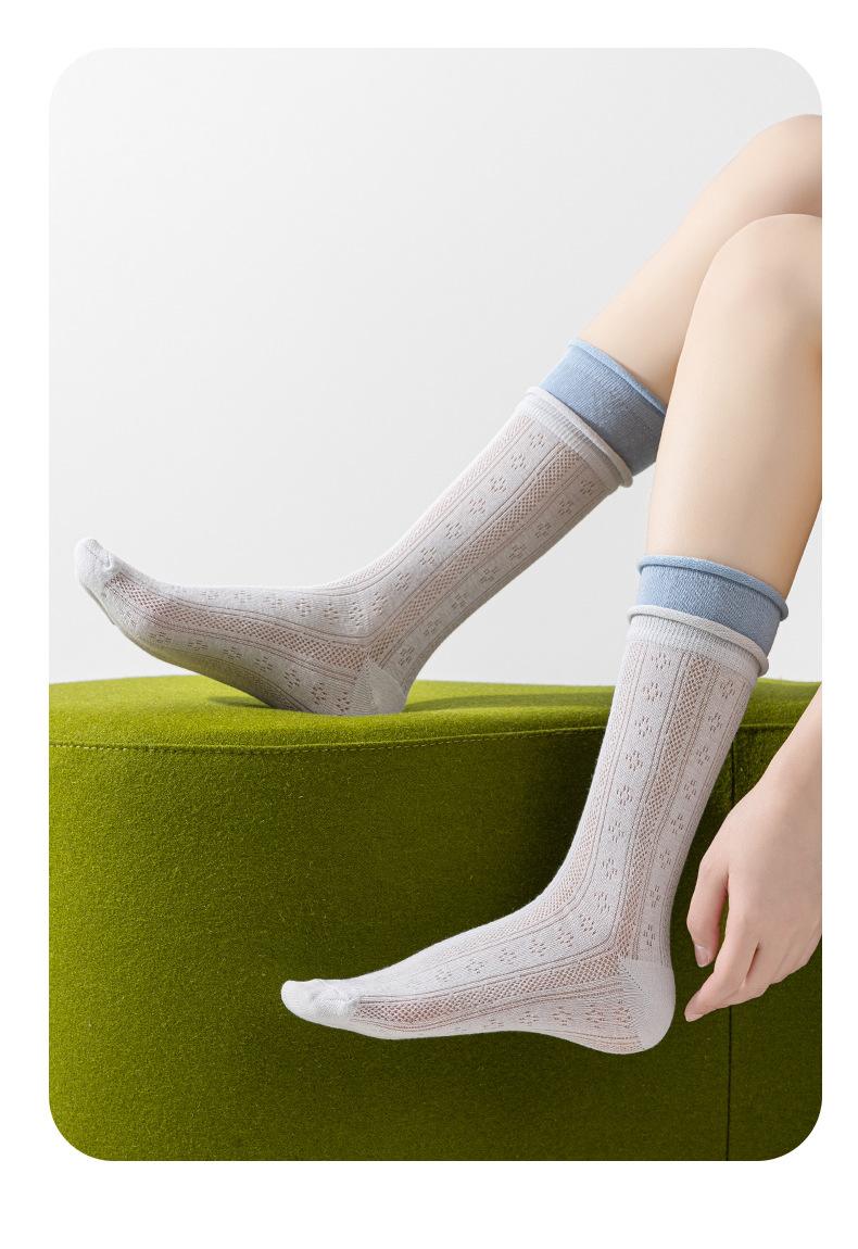 Calcetines Slouch para Mujer Verano Calcetines Finos de Algodón Absorbentes de Sudor Transpirables de Malla Calcetines de Tubo Puño Doble Calcetines Deportivos para Estudiante