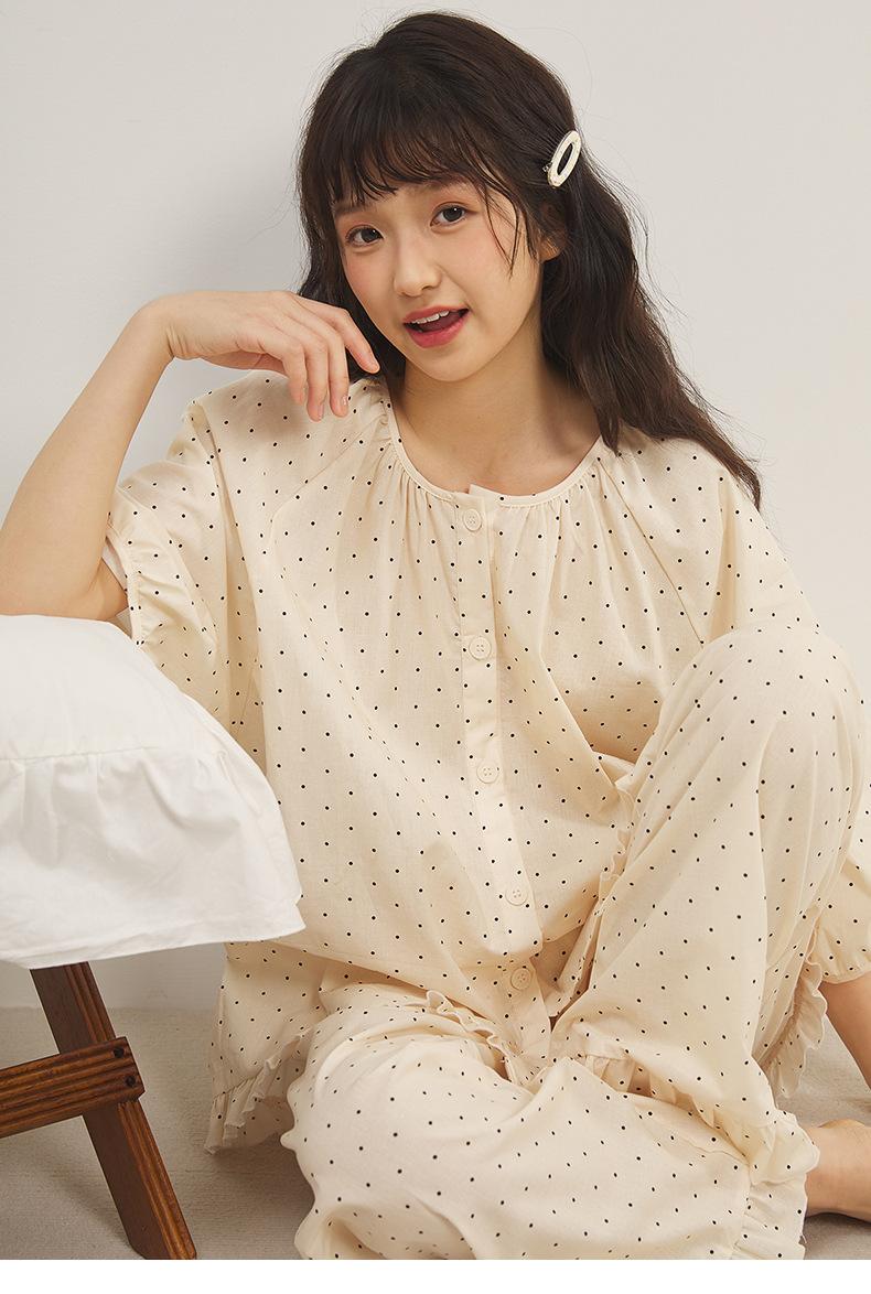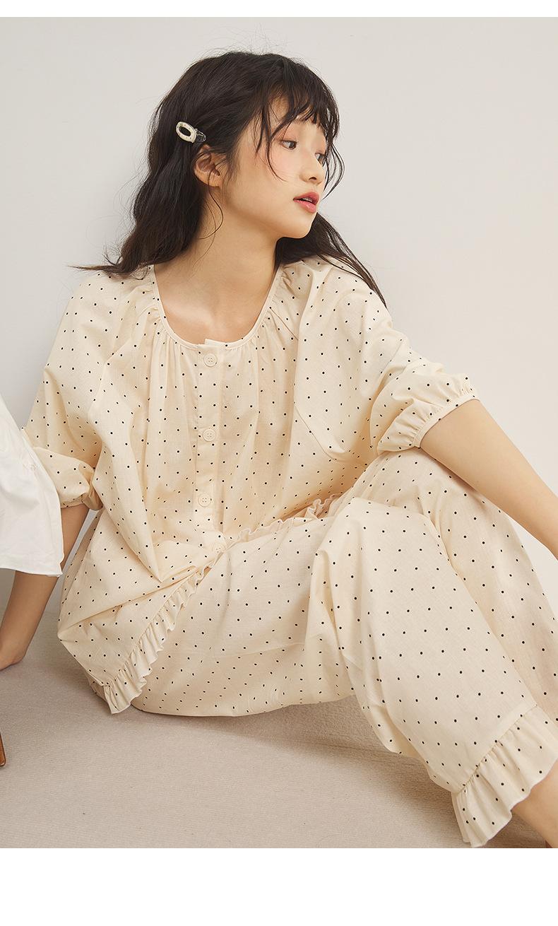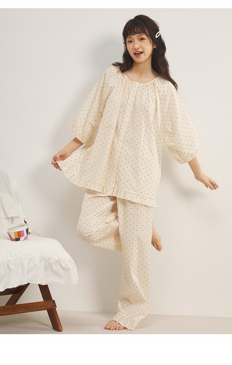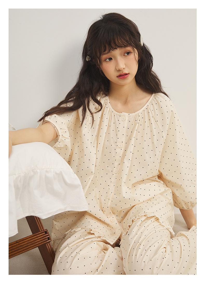 25 Pijamas de Primavera y Verano para Mujer Nuevos Algodón Encaje Seda Dulces Sueltos Pijamas Algodón Pantalones de Manga Corta Conjunto para Estar en Casa
