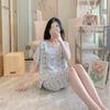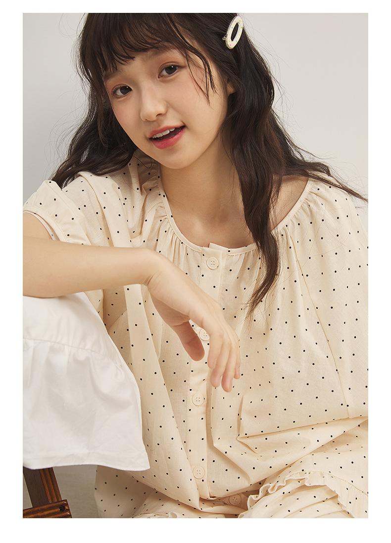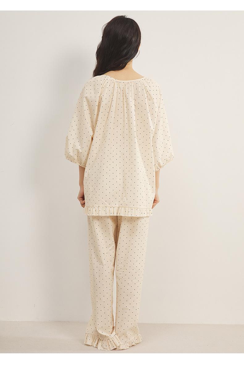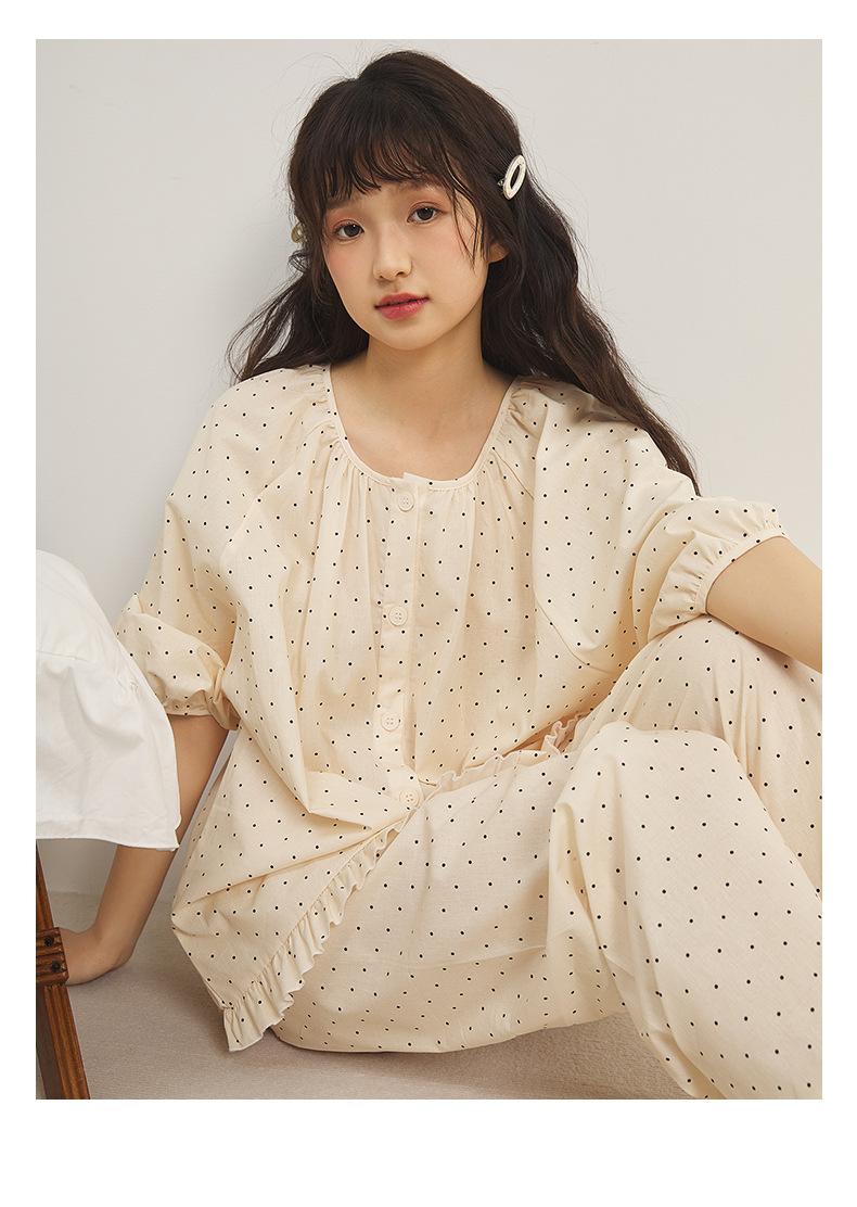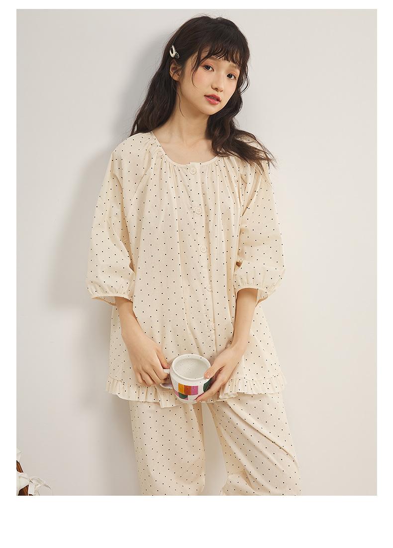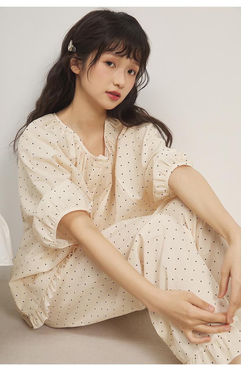 25 Pijamas de Primavera y Verano para Mujer Nuevos Algodón Encaje Seda Dulces Sueltos Pijamas Algodón Pantalones de Manga Corta Conjunto para Estar en Casa