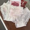 Ropa interior modal sin costuras para mujer de cintura media con encaje, bragas finas de seda de hielo transpirable de algodón con entrepierna antibacteriana para mujer