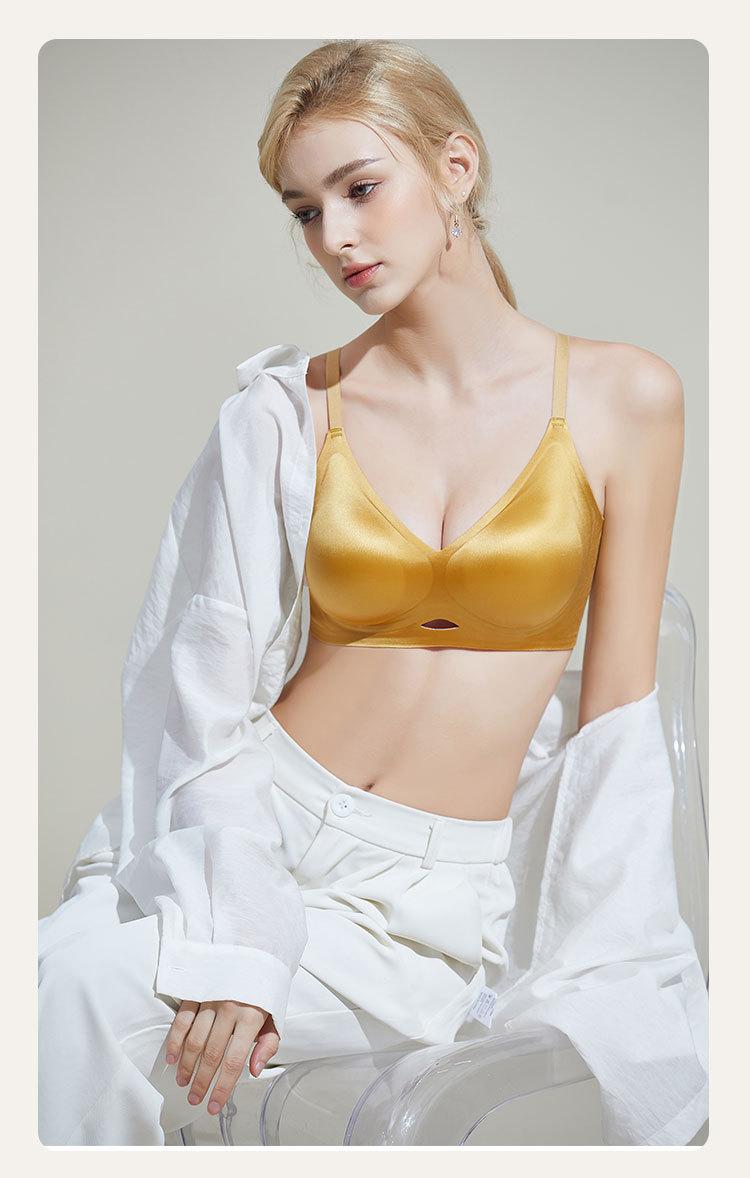 Popular Sujetador de Satén Perlado Dorado de Comercio Exterior Transfronterizo para Mujer, Push-Up, Retráctil de Busto, Delgado, Sin Costuras, Talla Grande, Ropa Interior con Espalda Hermosa