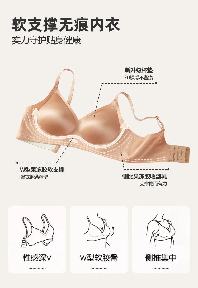 Gather, Traceless, Breathable, Support, Beautiful back, Comfortable, Side closing, Close accessory breasts