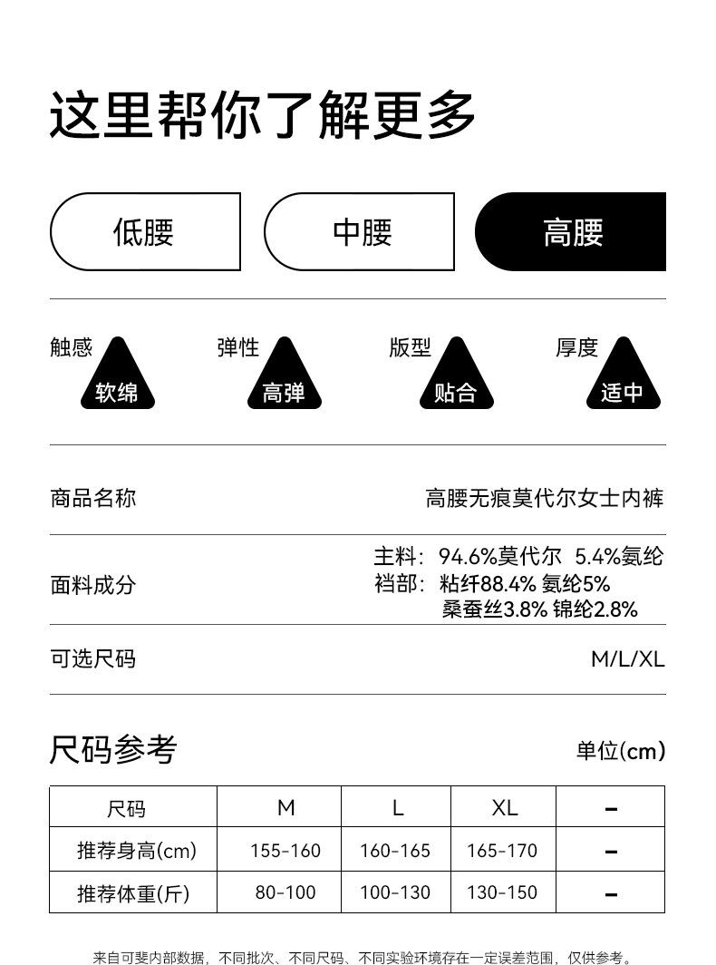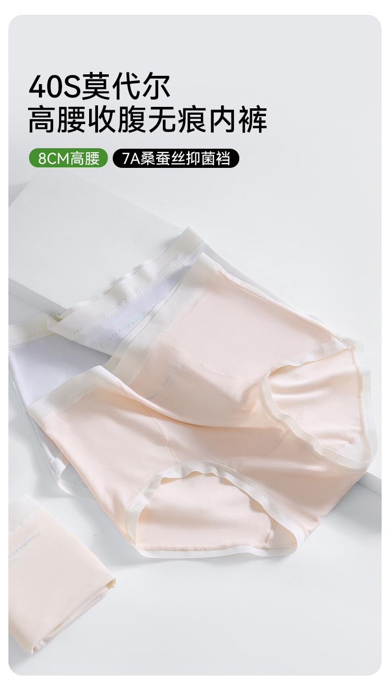 Ropa interior de modal de talle alto para mujer de talla grande Seda de morera 7A Entrepierna antibacteriana Calzones suaves para niña Ropa interior sin costuras para mujer