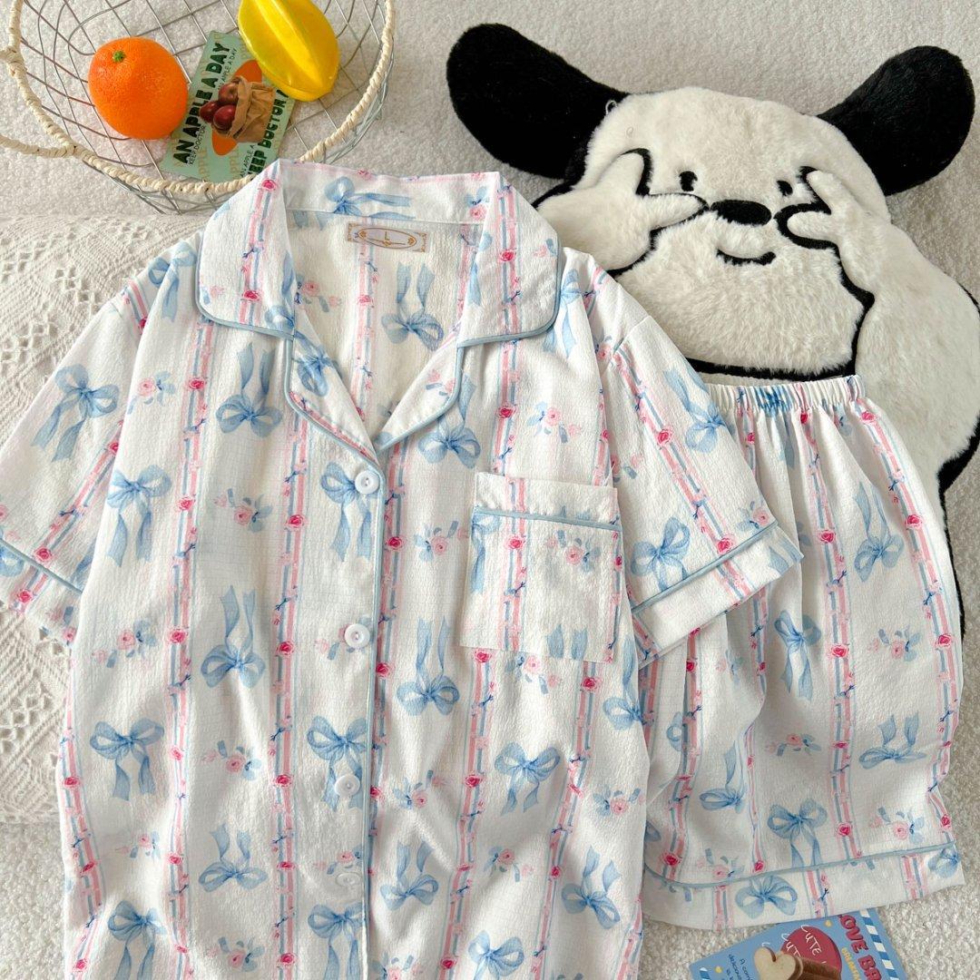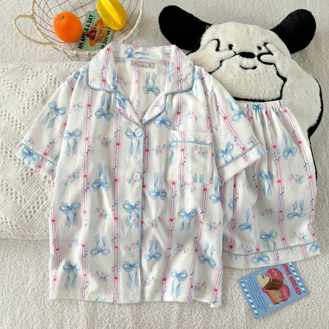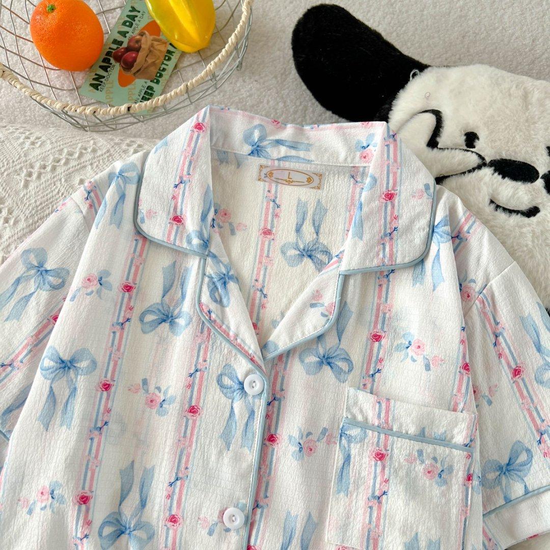 Pijama Nuevo Ins de Burbujas Arrugadas Traje de Verano para Mujer Chica Dulce Delgado Manga Corta Ropa de Casa para Estudiante Se Puede Usar Afuera