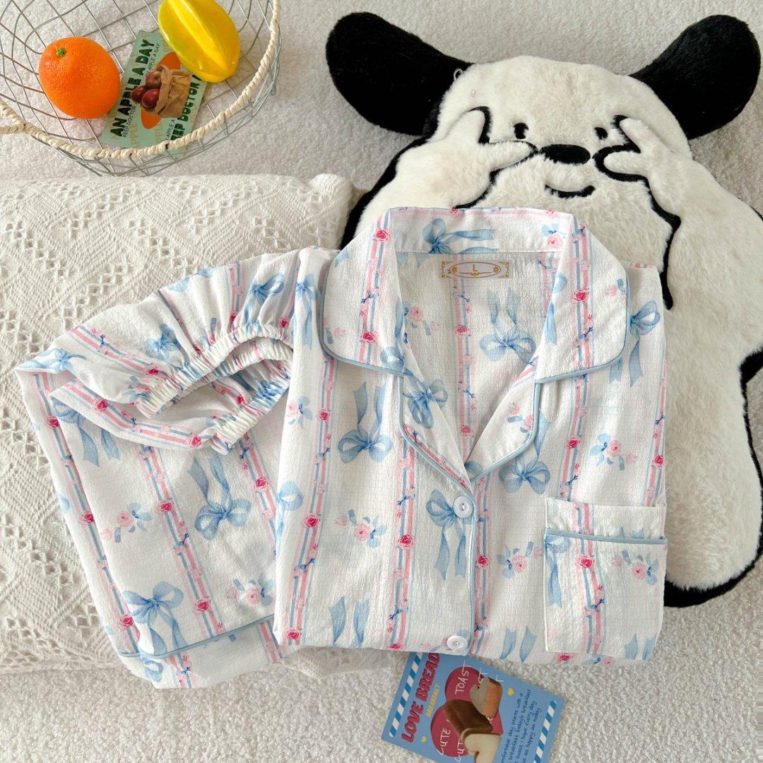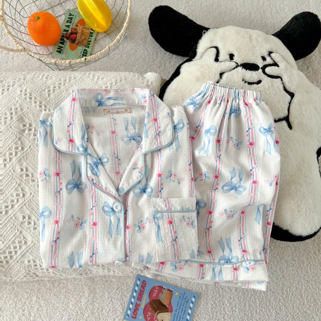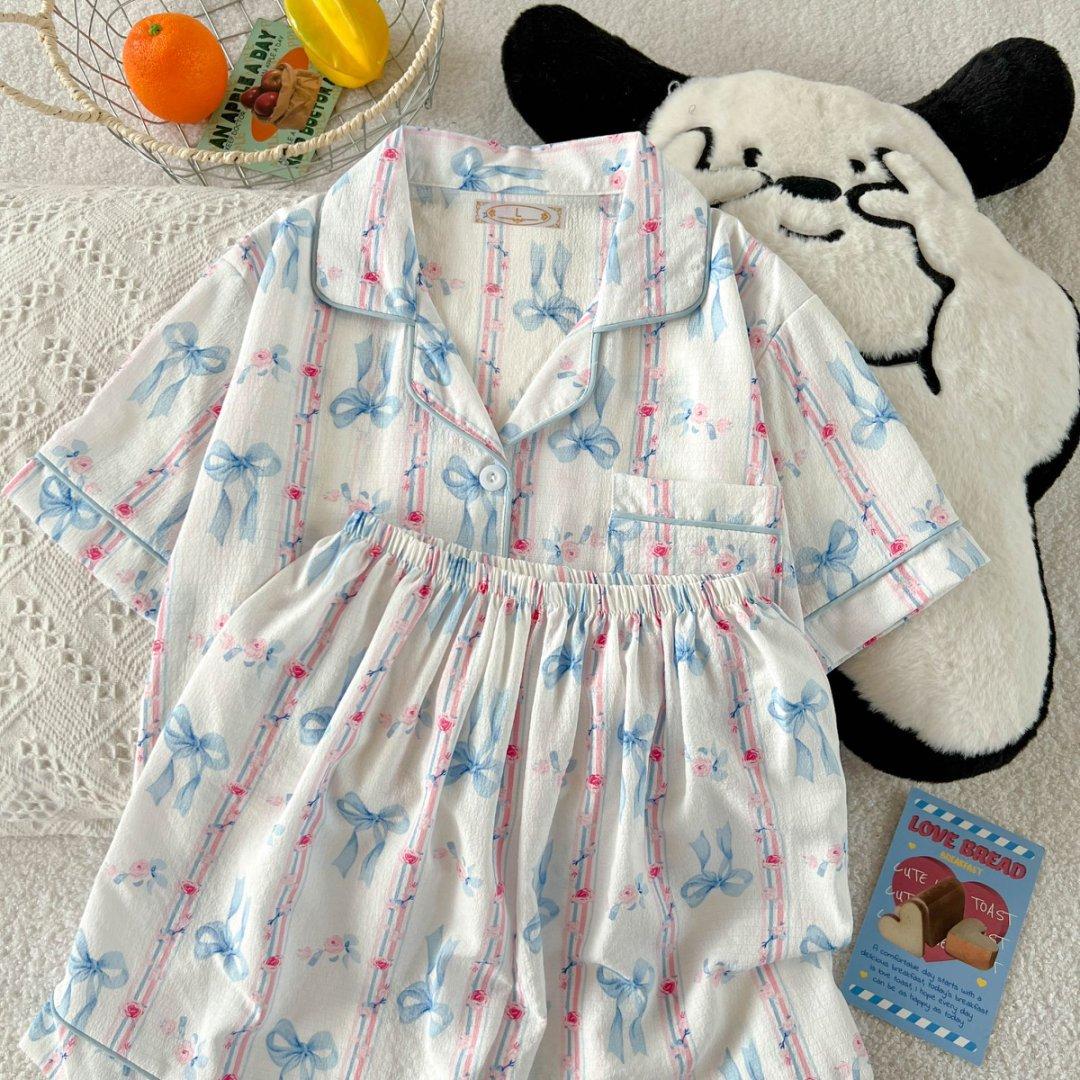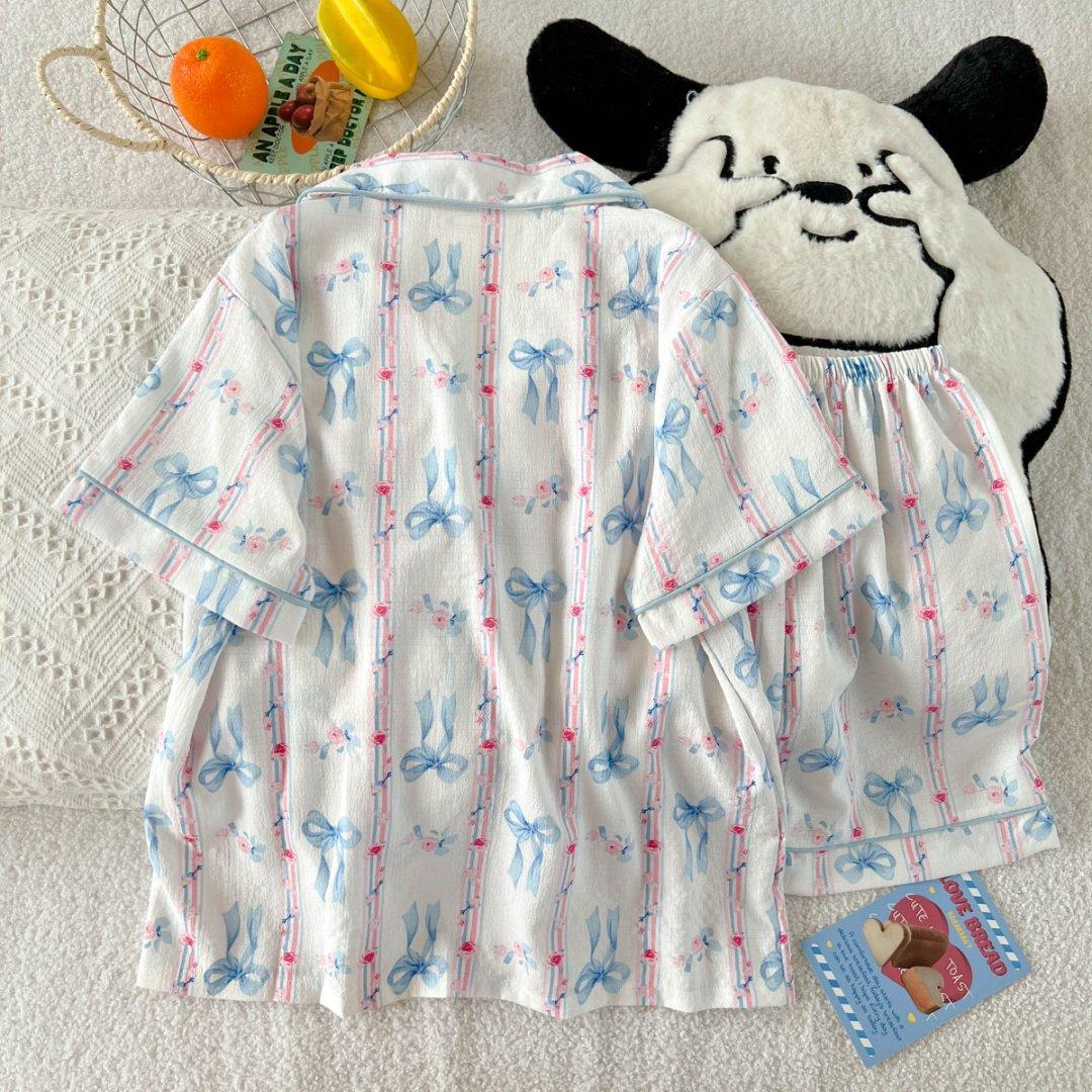 Pijama Nuevo Ins de Burbujas Arrugadas Traje de Verano para Mujer Chica Dulce Delgado Manga Corta Ropa de Casa para Estudiante Se Puede Usar Afuera