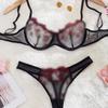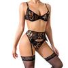 Comercio Exterior Lencería Sexy Nueva Europea y Americana Sexy Estampado de Leopardo Encaje Encaje Empalme Transparente Traje de Tres Piezas Al Por Mayor