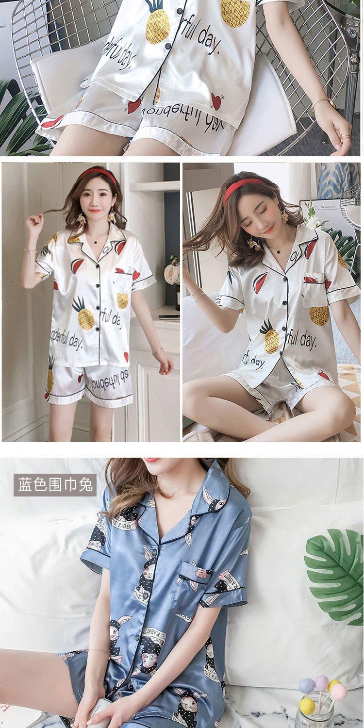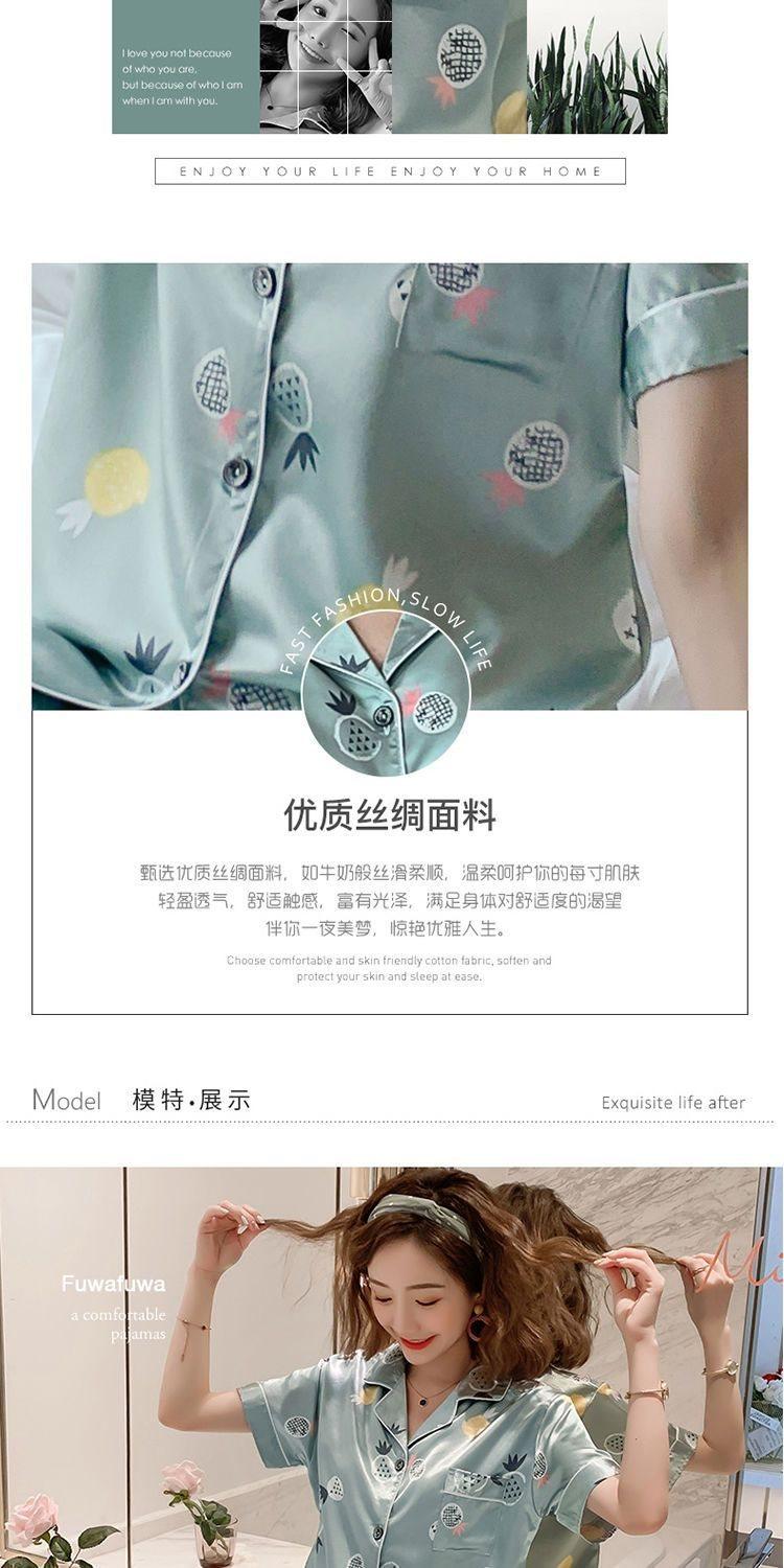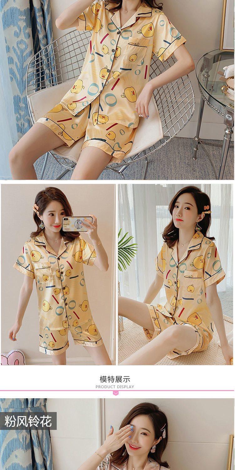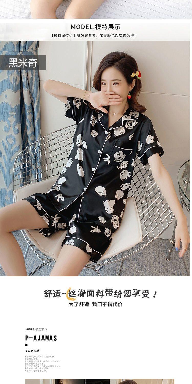 Pijama para Mujer Verano Seda de Hielo Manga Corta Conjunto de Dos Piezas Estilo Coreano Estudiante Sexy Delgada Seda Imitación Verano Ropa de Casa para Damas