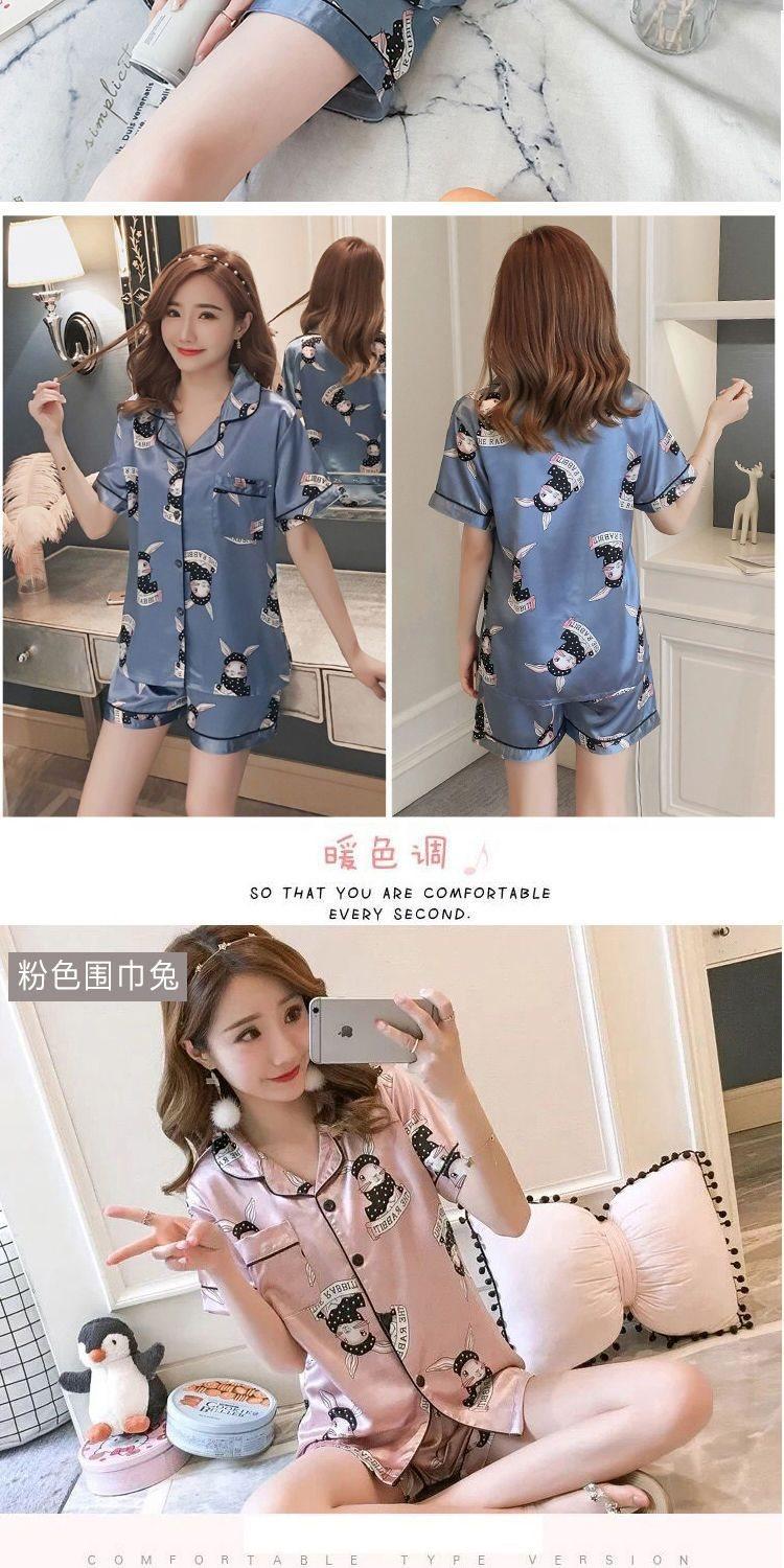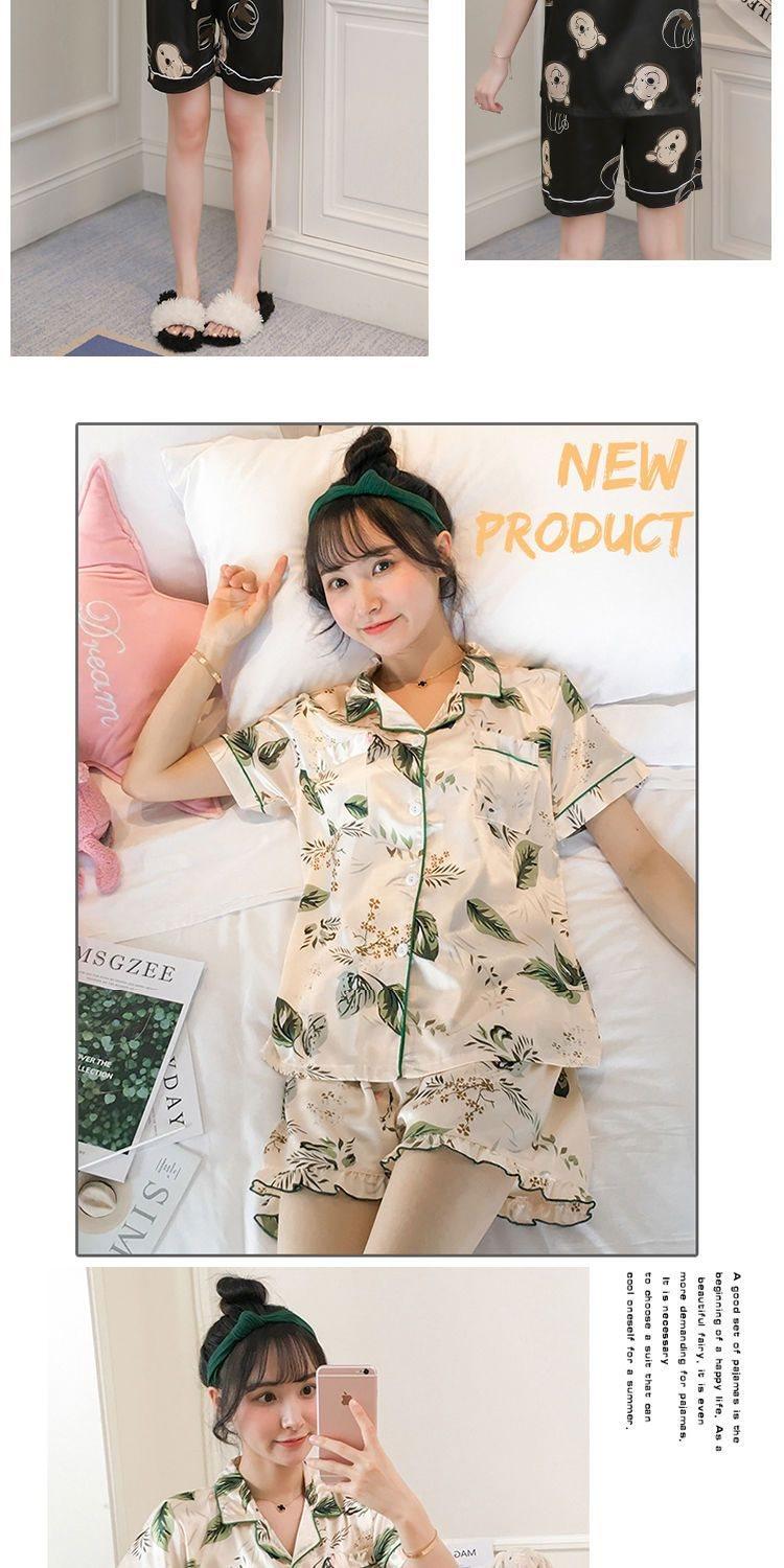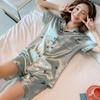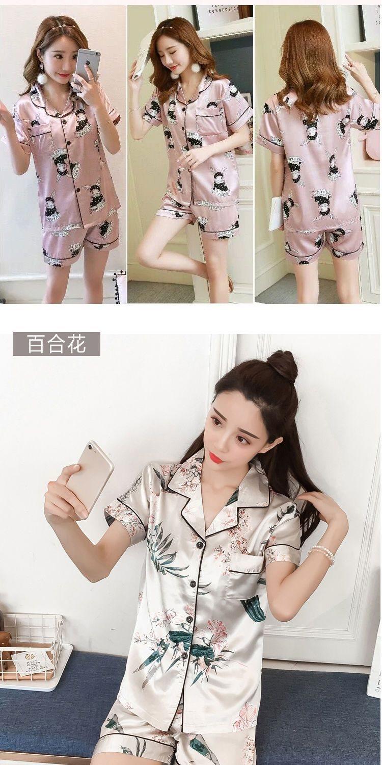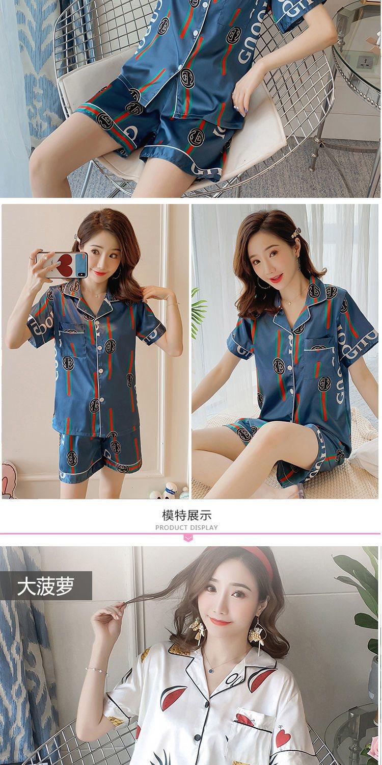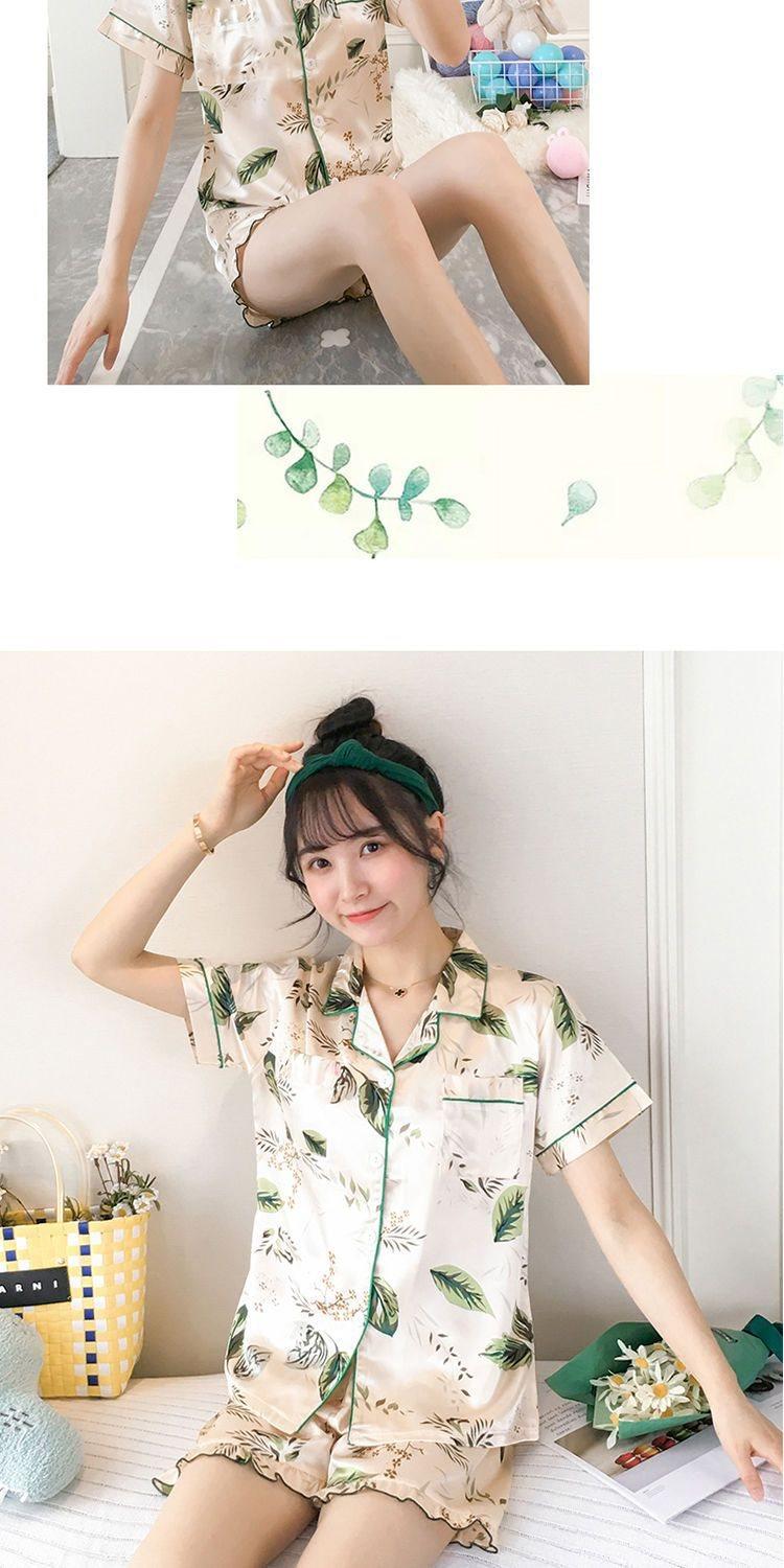 Pijama para Mujer Verano Seda de Hielo Manga Corta Conjunto de Dos Piezas Estilo Coreano Estudiante Sexy Delgada Seda Imitación Verano Ropa de Casa para Damas