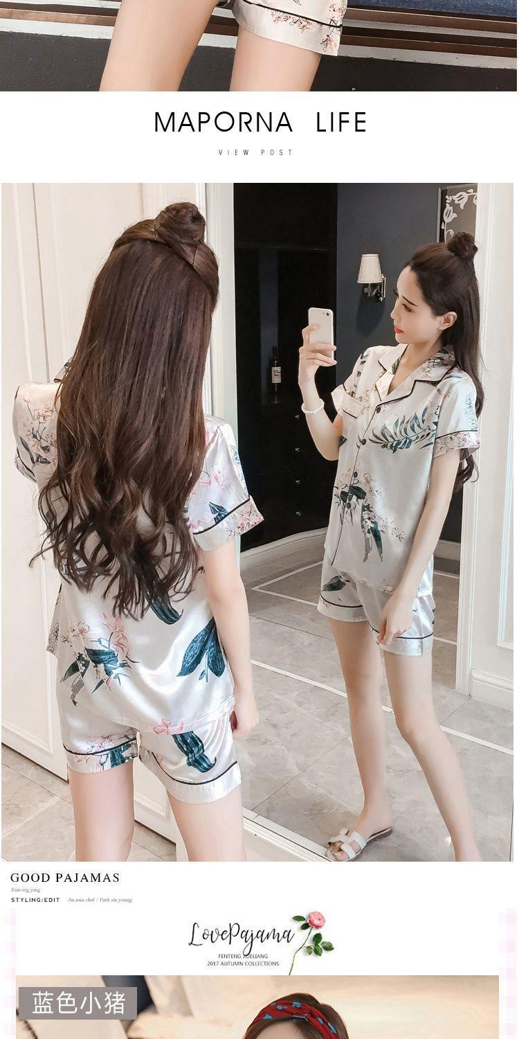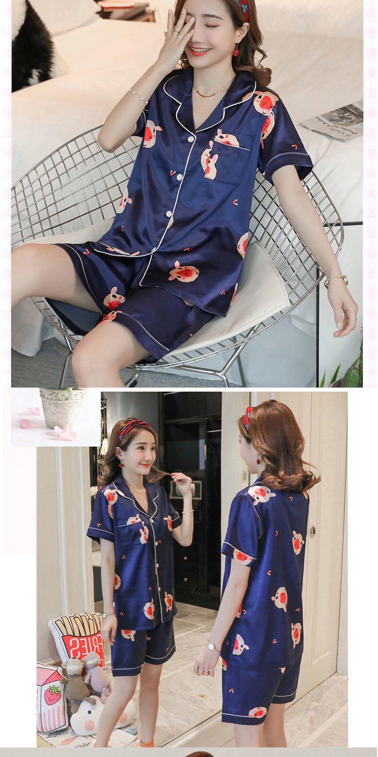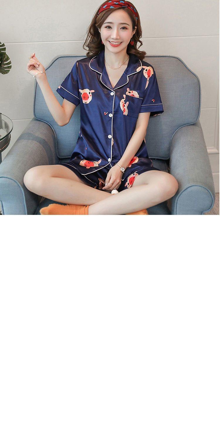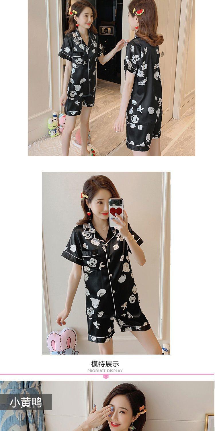 Pijama para Mujer Verano Seda de Hielo Manga Corta Conjunto de Dos Piezas Estilo Coreano Estudiante Sexy Delgada Seda Imitación Verano Ropa de Casa para Damas