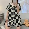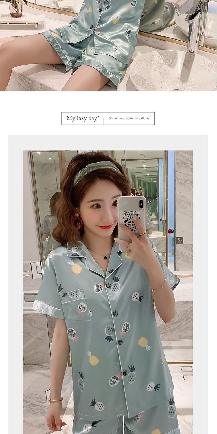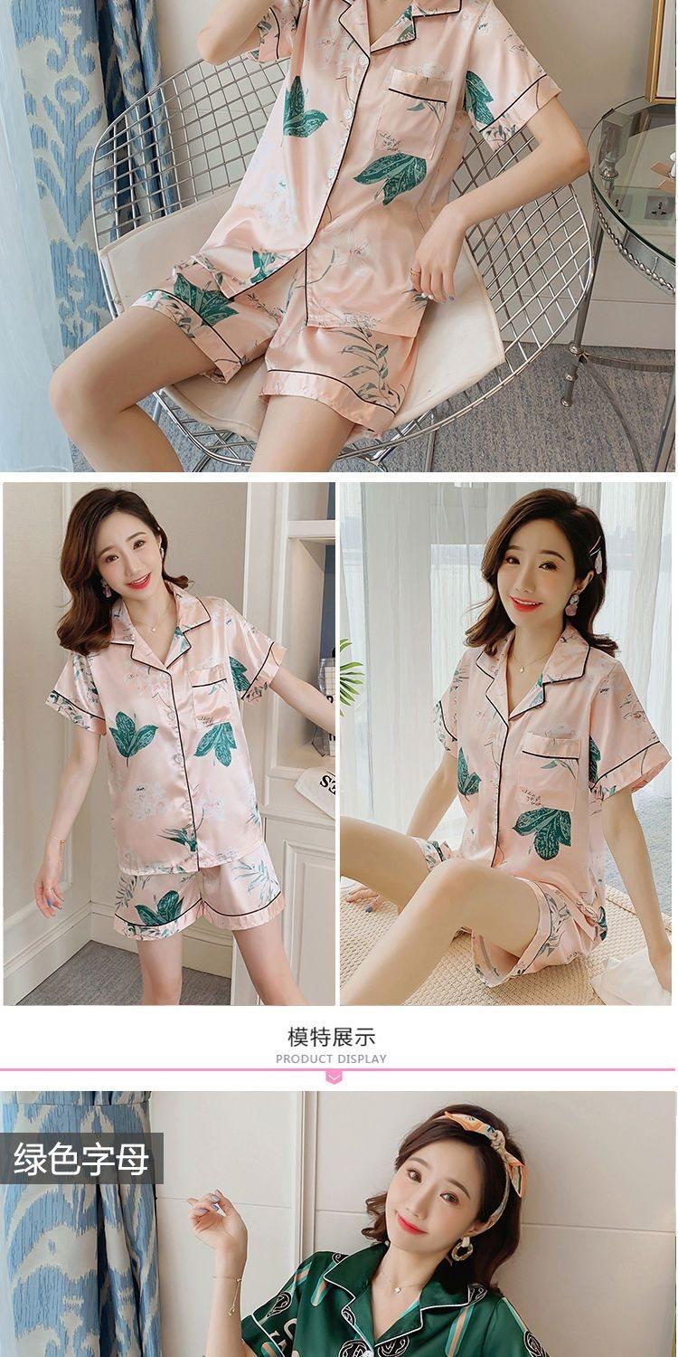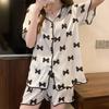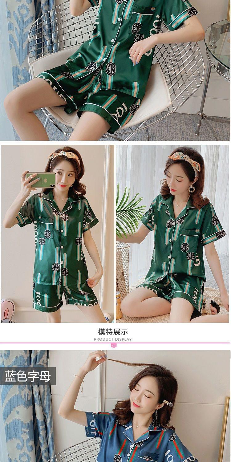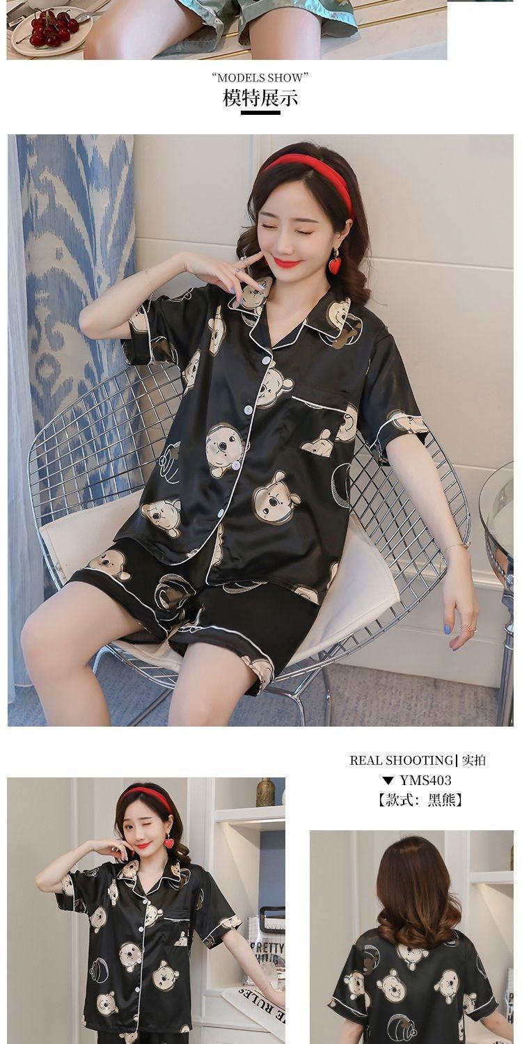 Pijama para Mujer Verano Seda de Hielo Manga Corta Conjunto de Dos Piezas Estilo Coreano Estudiante Sexy Delgada Seda Imitación Verano Ropa de Casa para Damas