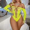 Lencería Bikini Sexy con Pedrería, Body Transparente de Manga Larga con Top de Tubo, Atractivo Body de Malla con Pedrería Tzk212